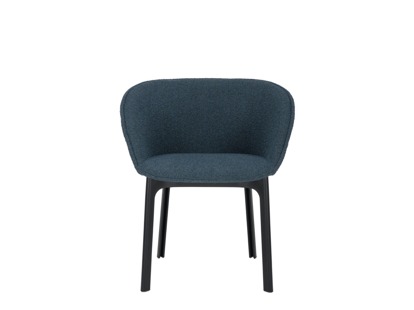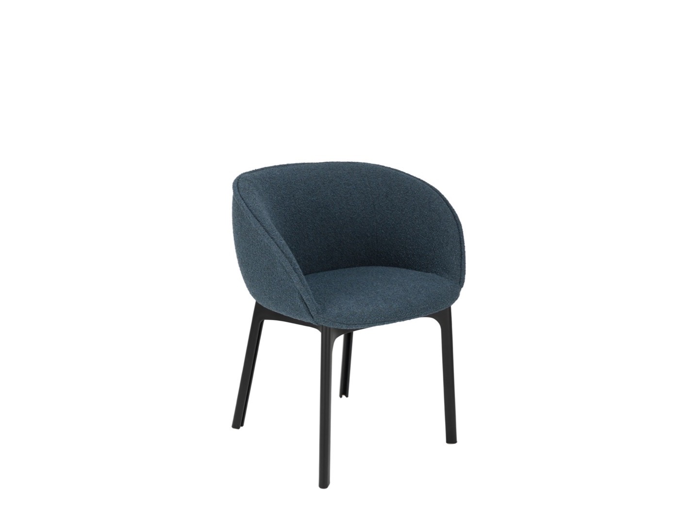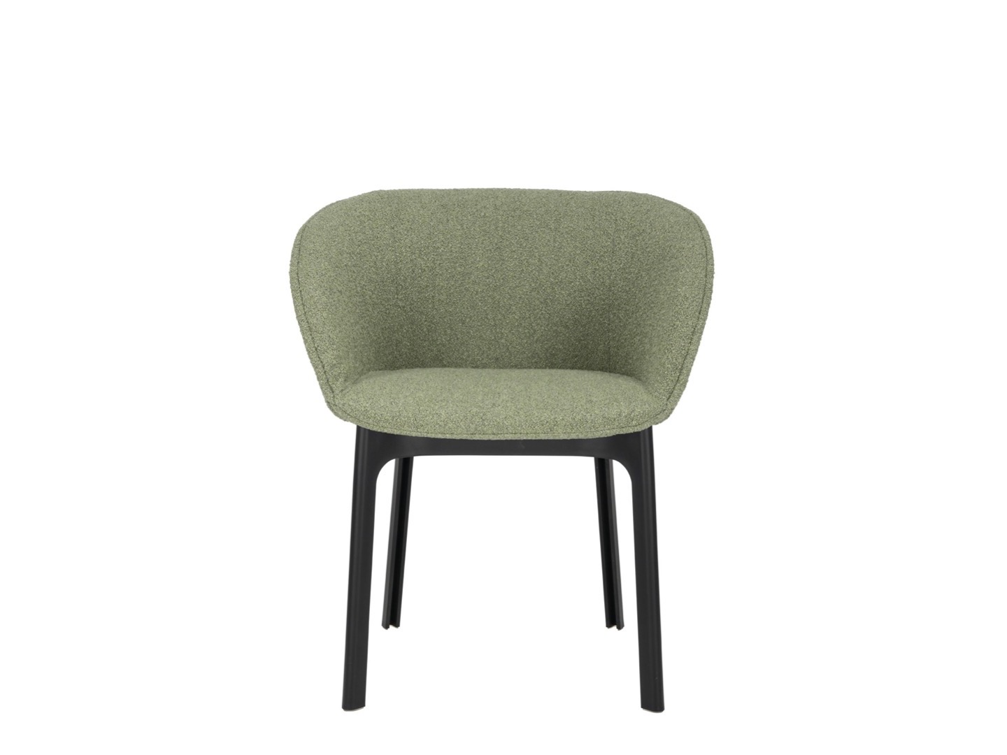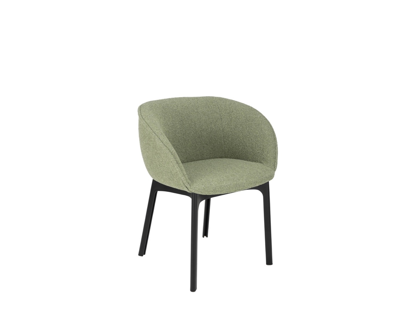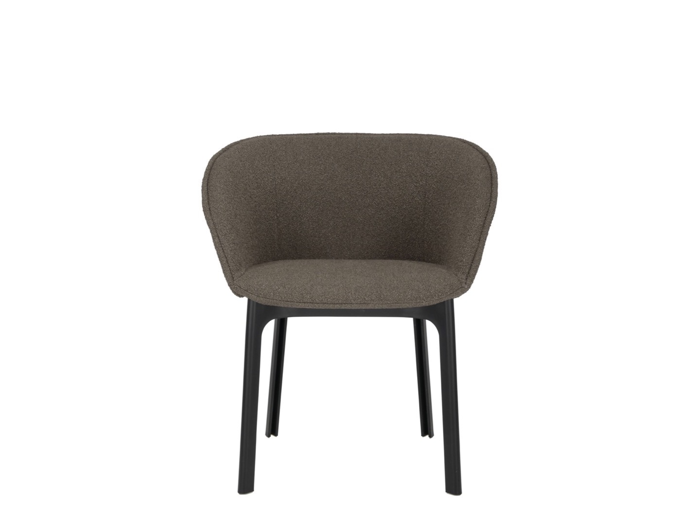 Charla łączy elegancję z trwałością dzięki nogom wykonanym z przetworzonego plastiku. Rama jest w kolorze czarnym, z tapicerką z tkaniny bouclé lub specjalnej tkaniny melanżowej.