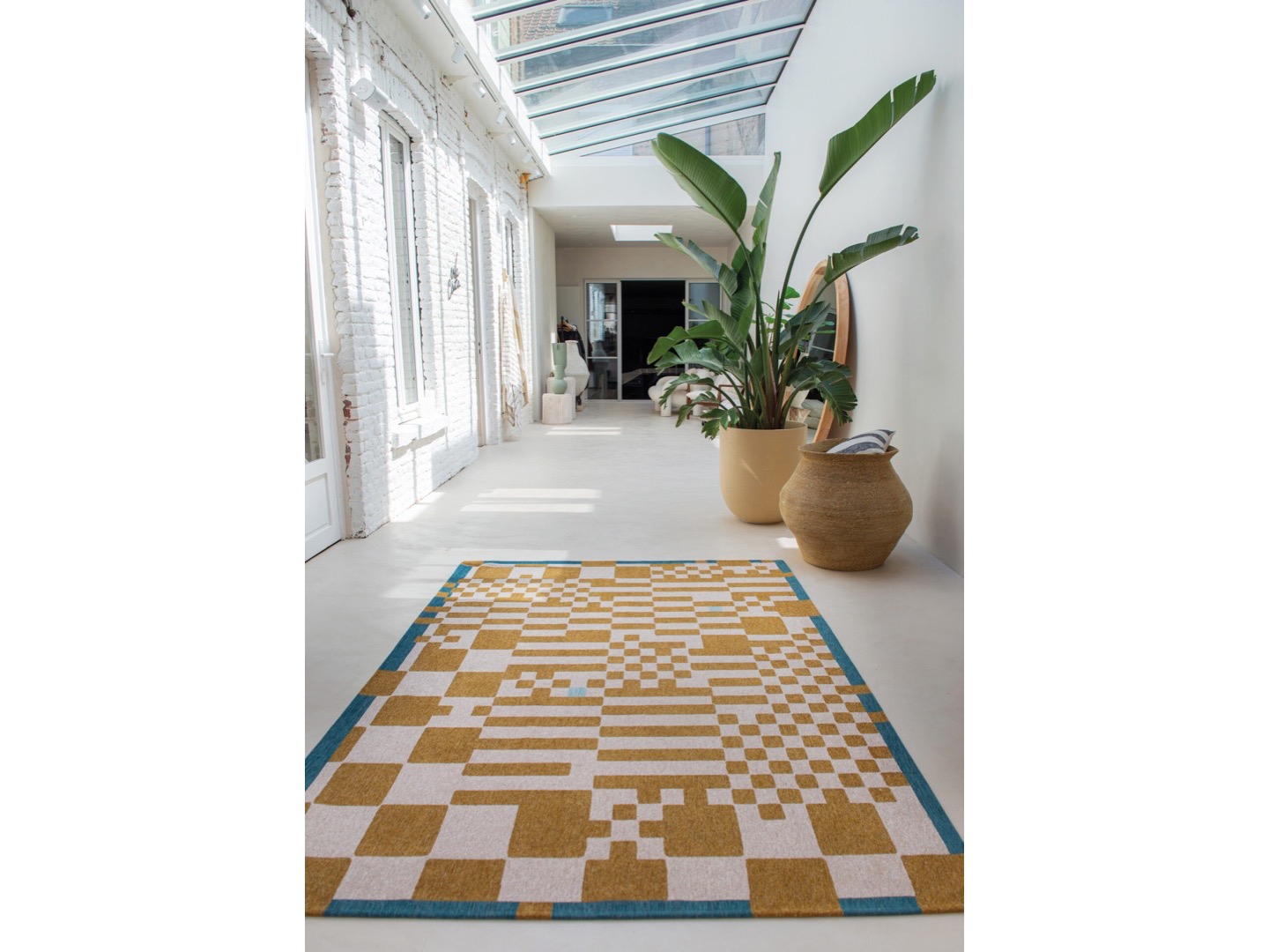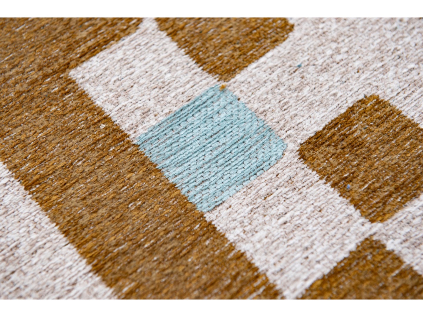 Dywan wykonany jest w 100% z poliestru, dzięki czemu dywan jest miły w dotyku. Tkany na płasko gęstym szwem metodą żakardowego splotu, która pozwala uzyskać bardzo szczegółowy i pełen detali wzór, jednocześnie zapewniając wytrzymałość oraz, większą niż w grubych dywanach, odporność na odkształcenia pod ciężarem mebli. Ponadto dywan łatwo utrzymać w czystości ze względu na niskie runo, które bez trudu da się odkurzać. Dzięki kauczukowej powłoce na spodzie dywanu, dywan jest stabilny i nie przesuwa się.