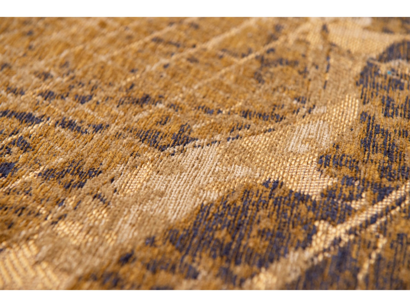 Dywan wykonany jest w 100% z poliestru, dzięki czemu dywan jest miły w dotyku. Tkany na płasko gęstym szwem metodą żakardowego splotu, która pozwala uzyskać bardzo szczegółowy i pełen detali wzór, jednocześnie zapewniając wytrzymałość oraz, większą niż w grubych dywanach, odporność na odkształcenia pod ciężarem mebli. Ponadto dywan łatwo utrzymać w czystości ze względu na niskie runo, które bez trudu da się odkurzać. Dzięki kauczukowej powłoce na spodzie dywanu, dywan jest stabilny i nie przesuwa się.