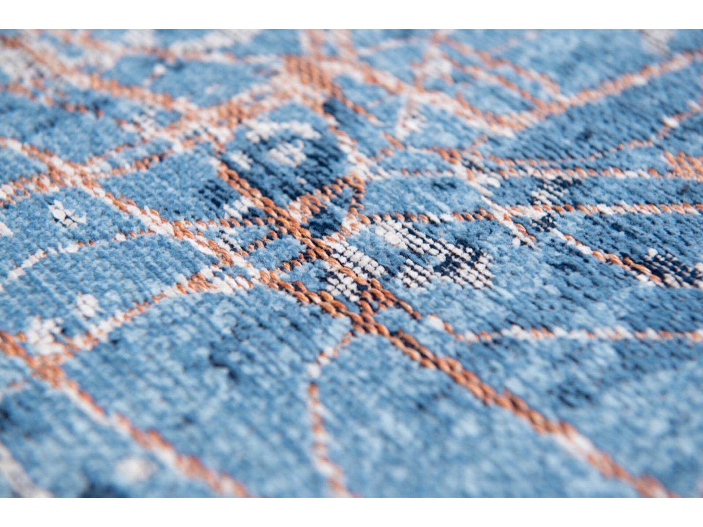 Dywan wykonany jest w 100% z poliestru, dzięki czemu dywan jest miły w dotyku. Tkany na płasko gęstym szwem metodą żakardowego splotu, która pozwala uzyskać bardzo szczegółowy i pełen detali wzór, jednocześnie zapewniając wytrzymałość oraz, większą niż w grubych dywanach, odporność na odkształcenia pod ciężarem mebli. Ponadto dywan łatwo utrzymać w czystości ze względu na niskie runo, które bez trudu da się odkurzać. Dzięki kauczukowej powłoce na spodzie dywanu, dywan jest stabilny i nie przesuwa się.