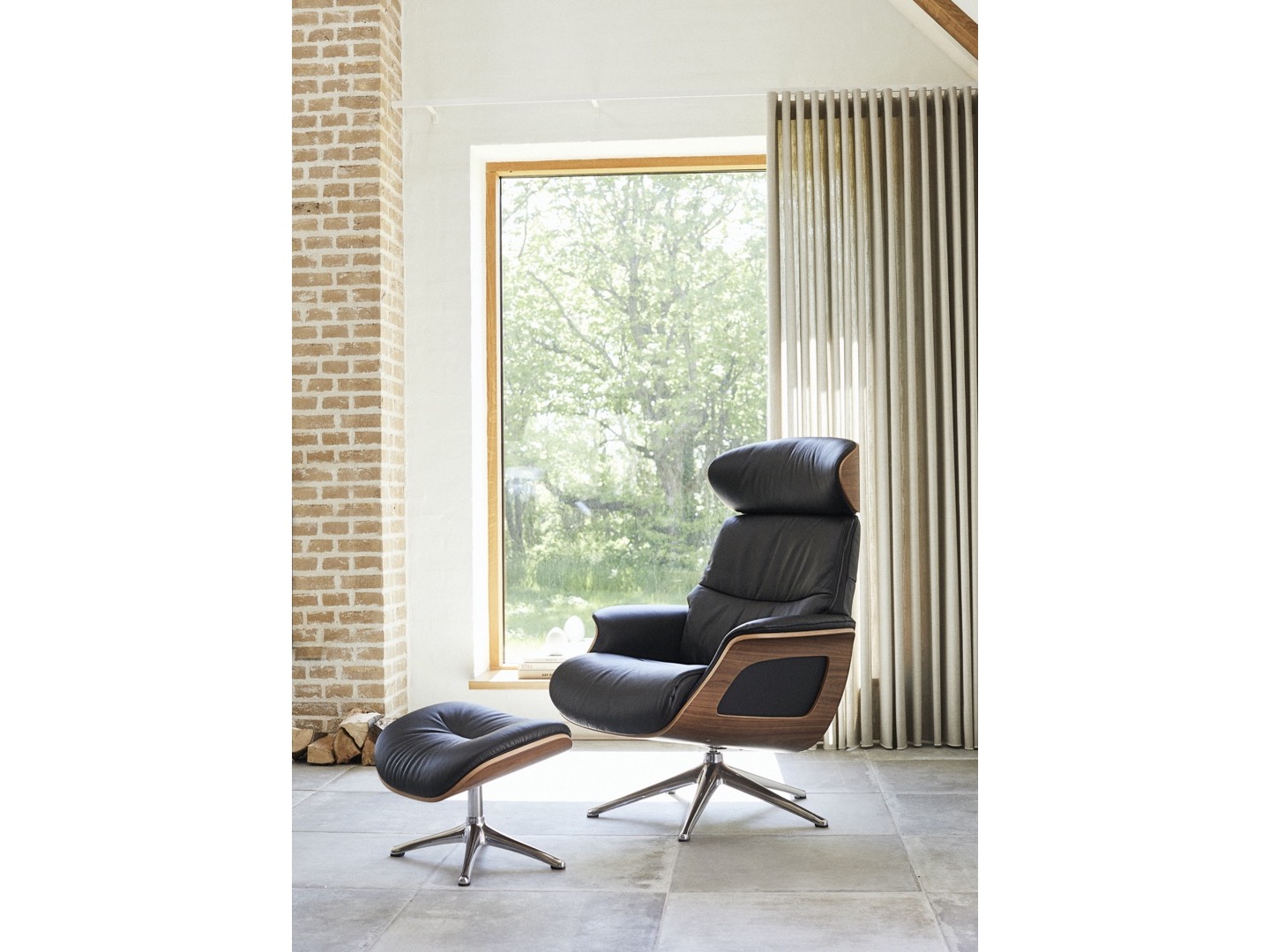 Clement jest wyposażony w mechanizm, który umożliwia płynną i bezwysiłkową zmianę pozycji. Podnóżek zapewni Ci spokojne miejsce na relaks i odpoczynek. Zagłówek ma regulowaną wysokość i kąt, aby uzyskać najlepszą pozycję do czytania, oglądania telewizji lub relaksu.