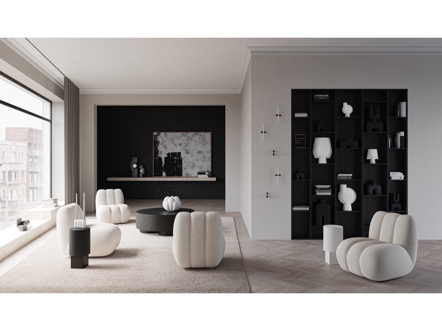 Cechą charakteryzującą kolekcję Cobra jest nietypowe zestawienie łagodnych kształtów ludzkich sylwetek z architektonicznymi elementami budynków.