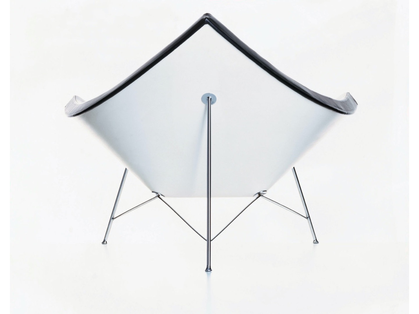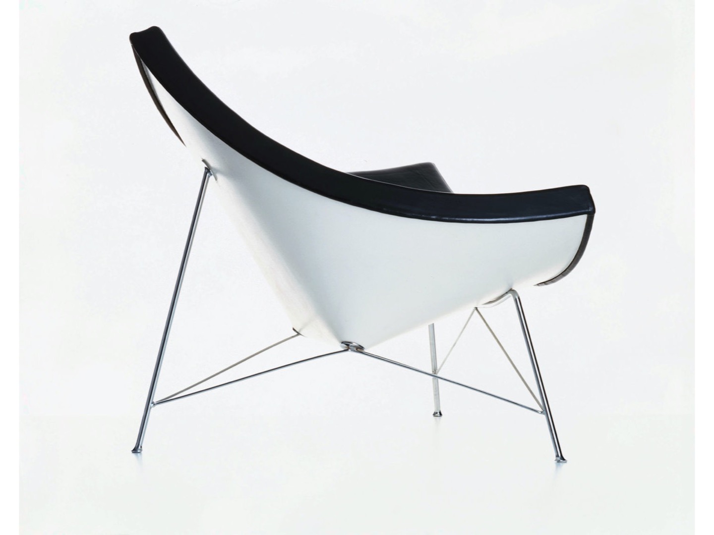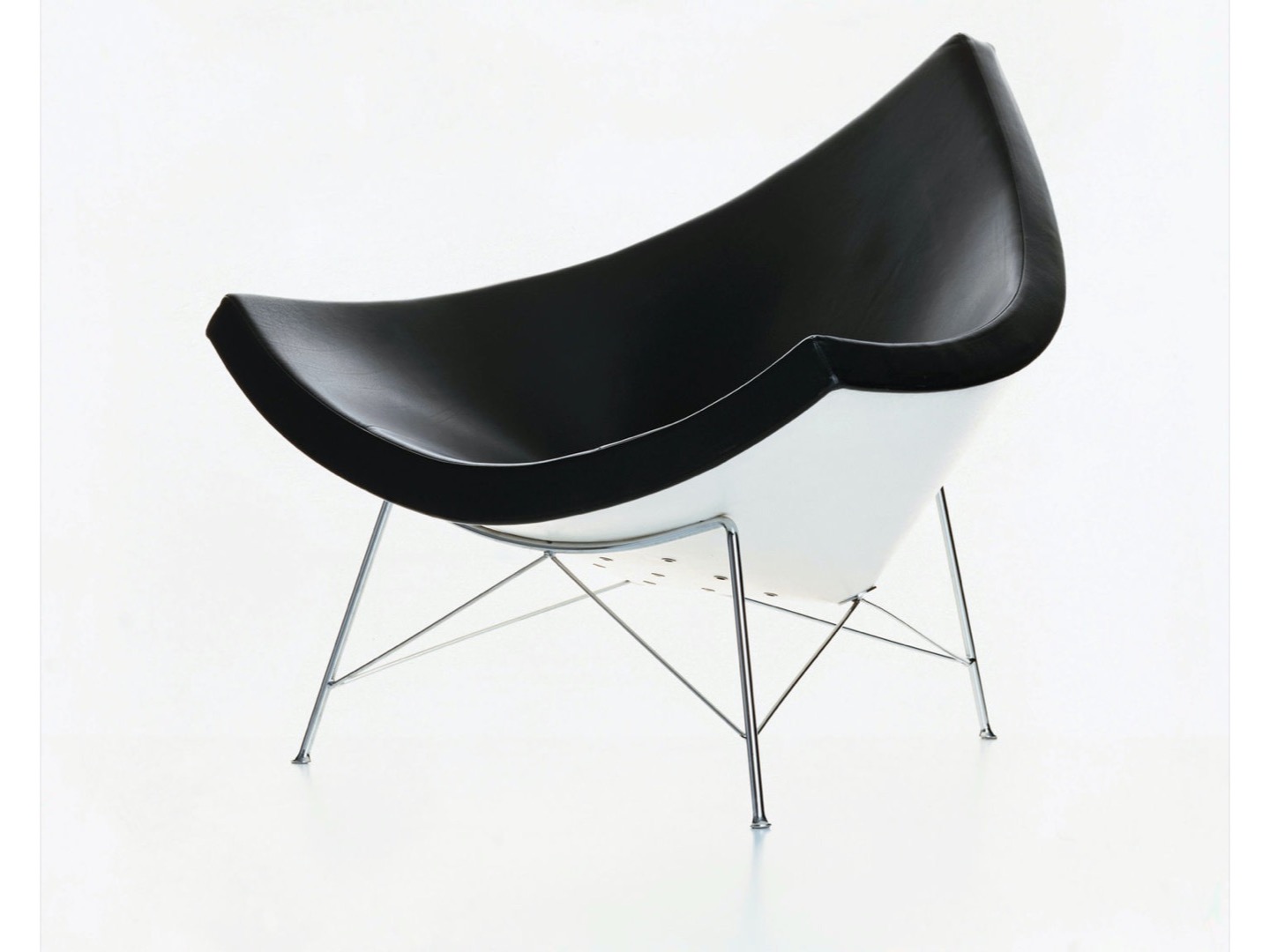 George Nelson, 1955. Fotel ten to typowy design z lat 50-tych. Odrobina humoru, czystość formy i minimum materiału - taka dewiza przyświecała projektom w tamtym czasie. Nelson zaprojektował fotel na wzór i podobieństwo orzecha kokosu. Biel miąższu stanowi tutaj spód siedziska, natomiast samo siedzisko pozwala na zupełną dowolność pozycji użytkownika.