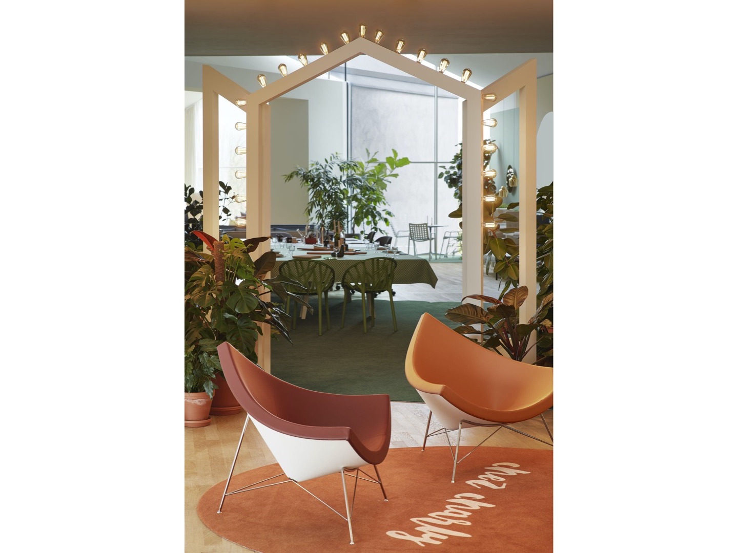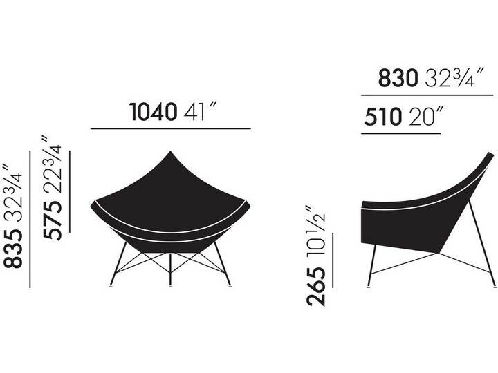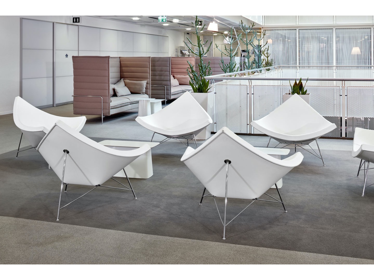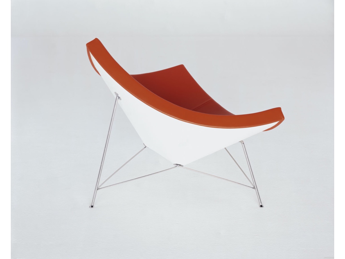 George Nelson, 1955. Fotel ten to typowy design z lat 50-tych. Odrobina humoru, czystość formy i minimum materiału - taka dewiza przyświecała projektom w tamtym czasie. Nelson zaprojektował fotel na wzór i podobieństwo orzecha kokosu. Biel miąższu stanowi tutaj spód siedziska, natomiast samo siedzisko pozwala na zupełną dowolność pozycji użytkownika.