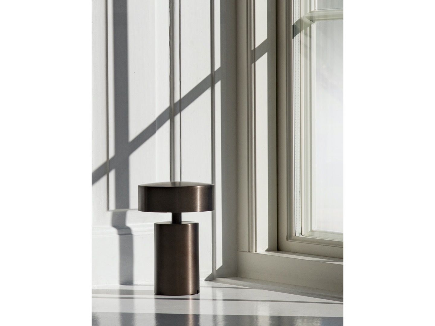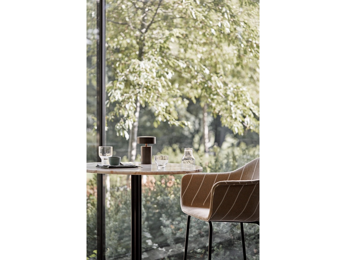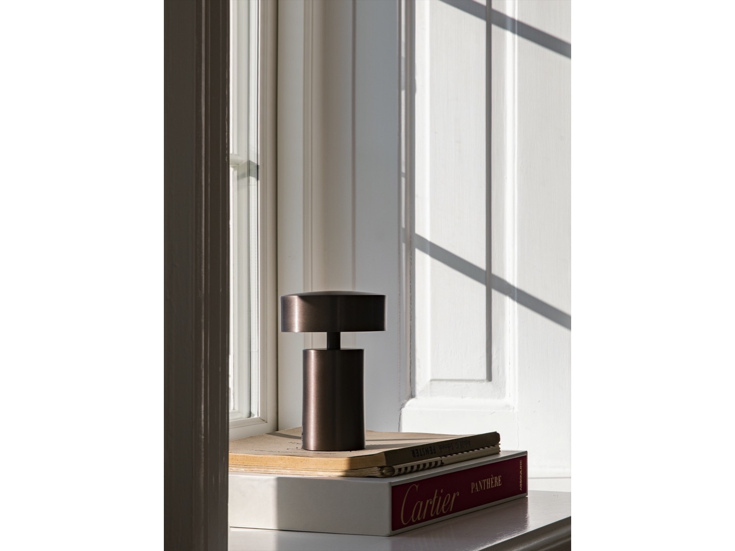 Lampa inspirowana jest kształtem słupków używanych do mocowania statków do nabrzeża. Przenośna kolumnowa lampa stołowa łączy w sobie technologię i styl tworzący nastrój. Zasilana baterią, zapewniająca najwyższą swobodę i elastyczność, ta niewielka lampa zapewnia zachęcający blask – regulowany w trzech ustawieniach – do przestrzeni wewnątrz i na zewnątrz. Bezprzewodowa konstrukcja ładuje się poprzez ukryte gniazdo USB w podstawie i jest również kompatybilna z płytką ładującą Audo.