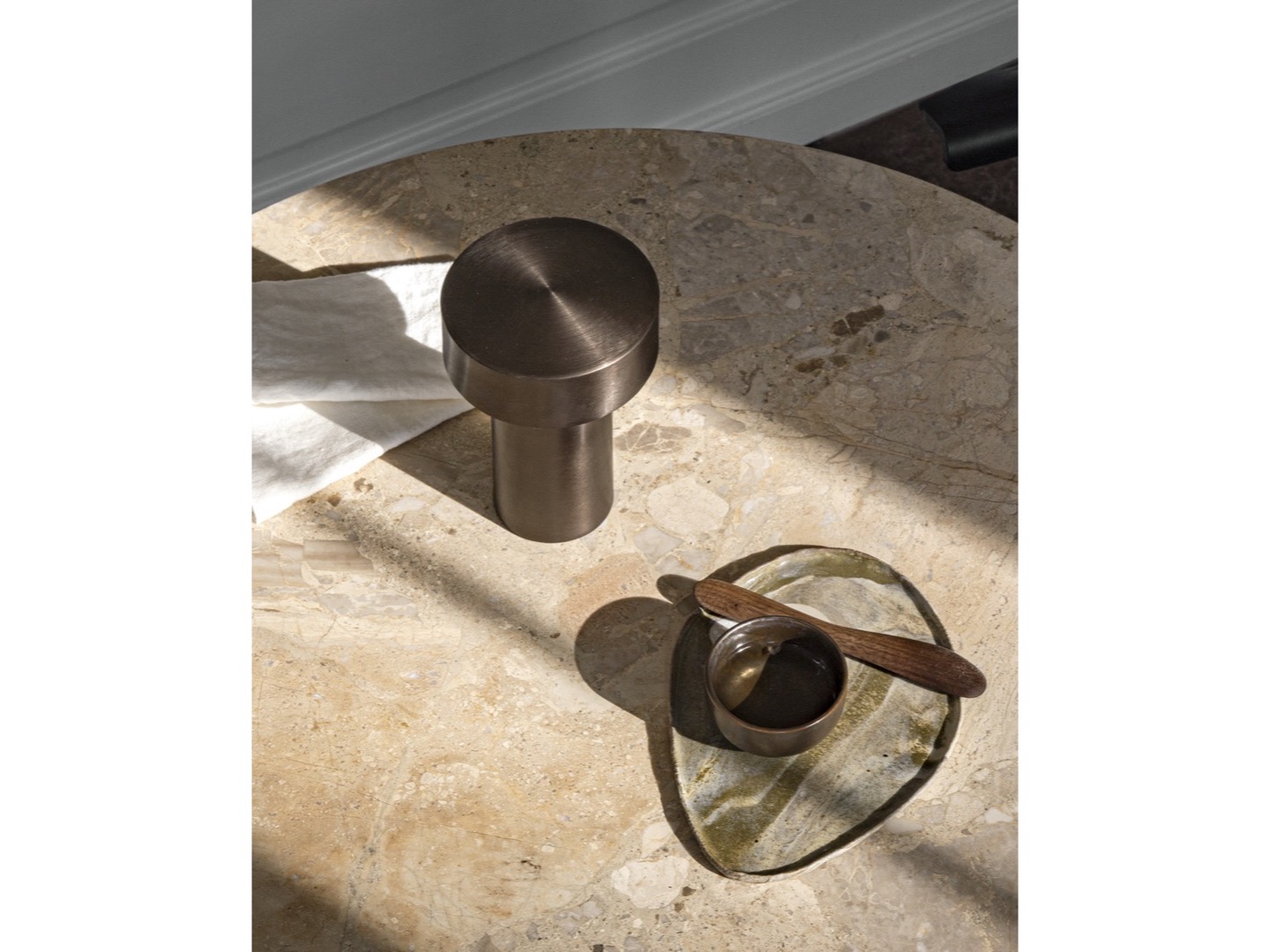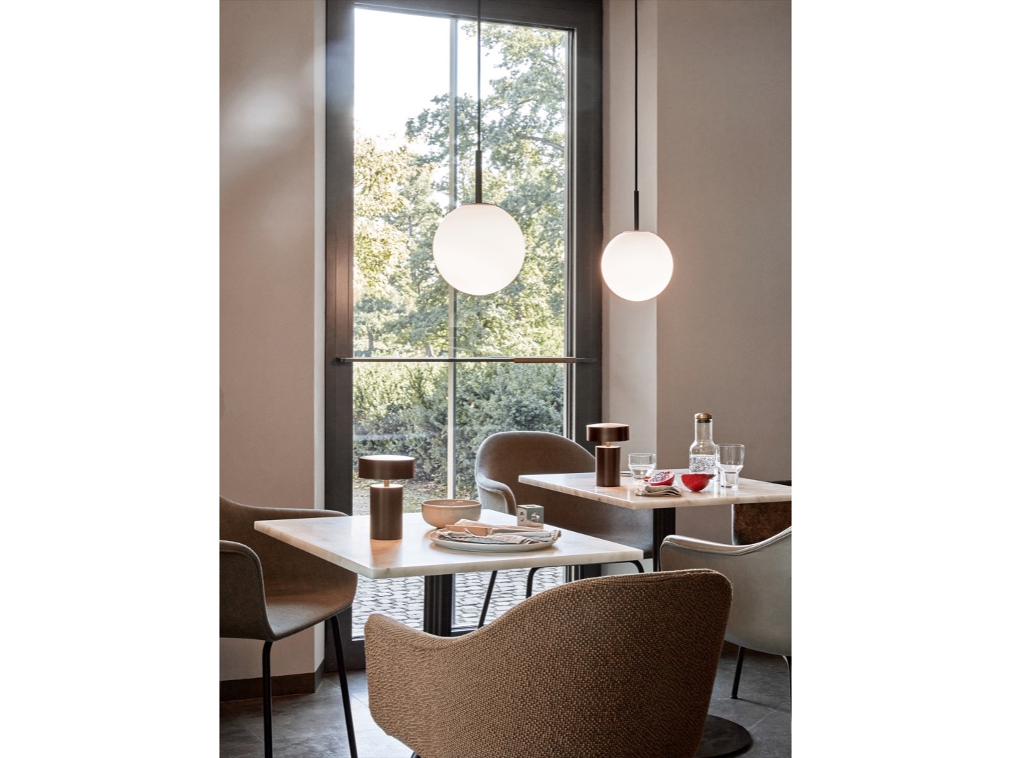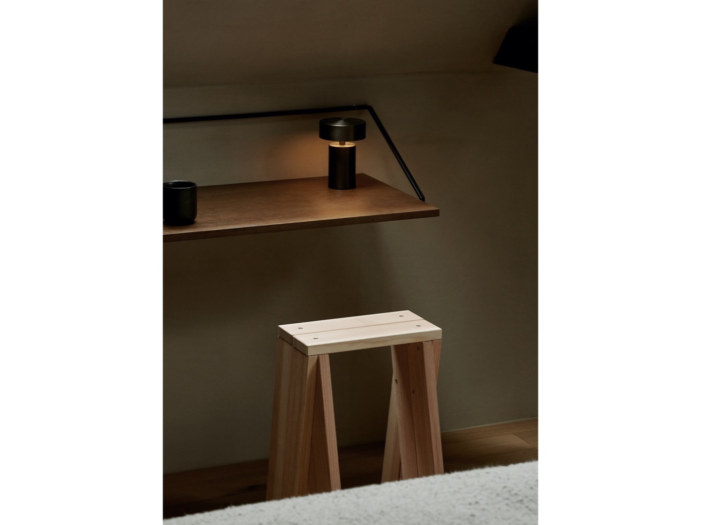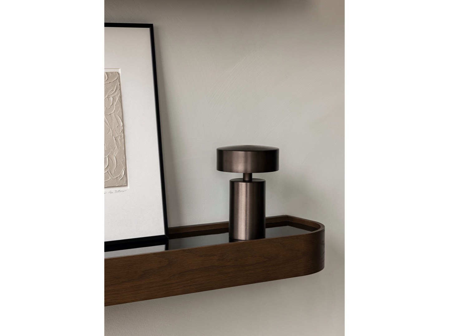 Lampa inspirowana jest kształtem słupków używanych do mocowania statków do nabrzeża. Przenośna kolumnowa lampa stołowa łączy w sobie technologię i styl tworzący nastrój. Zasilana baterią, zapewniająca najwyższą swobodę i elastyczność, ta niewielka lampa zapewnia zachęcający blask – regulowany w trzech ustawieniach – do przestrzeni wewnątrz i na zewnątrz. Bezprzewodowa konstrukcja ładuje się poprzez ukryte gniazdo USB w podstawie i jest również kompatybilna z płytką ładującą Audo.