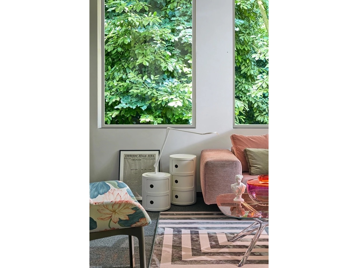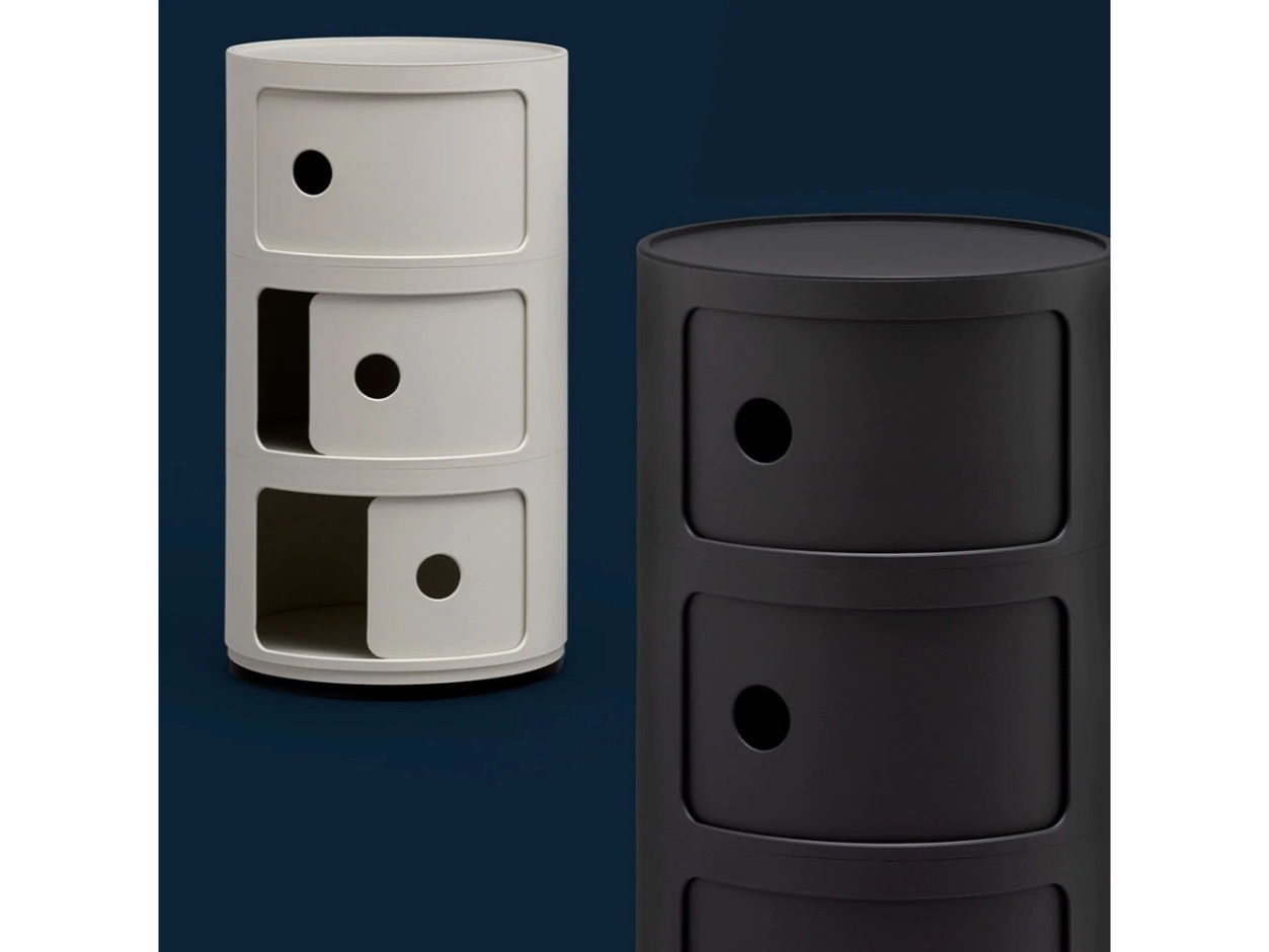 Componibili pomysłu Anny Castelli Ferrieri są funkcjonalne, praktyczne i produkowane już od ponad 30 lat. Pokazywane są w Muzeum Sztuki Współczesnej w Nowym Jorku i w centrum Pompidou w Paryżu. Nowe srebrne wykończenie sprawia, że są jeszcze bardziej nowoczesne i modne. Componibili zostały zaprojektowane, by funkcjonowały w każdym środowisku, świetnie czują się w łazienkach, sypialniach, kuchniach. Kontenery mogą występować samodzielnie lub nakładane na siebie. Proponowane są dwie wersje podstaw: okrągła i kwadratowa. Istnieje możliwość zamocowania kółek.