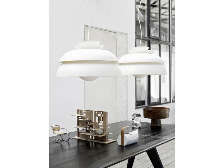 Fenomenem tel lampy jest ilość elementów klosza, które wspaniale rozpraszają światło. Dwie dolne części miękko rozprowadzają światło i identycznie dwie górne. Dwie wielkości klosza pozwolą na dopasowanie lampy Concert do każdego wnętrza. Sprawdzi się zarówno w miejscach użyteczności publicznej jak i domach.