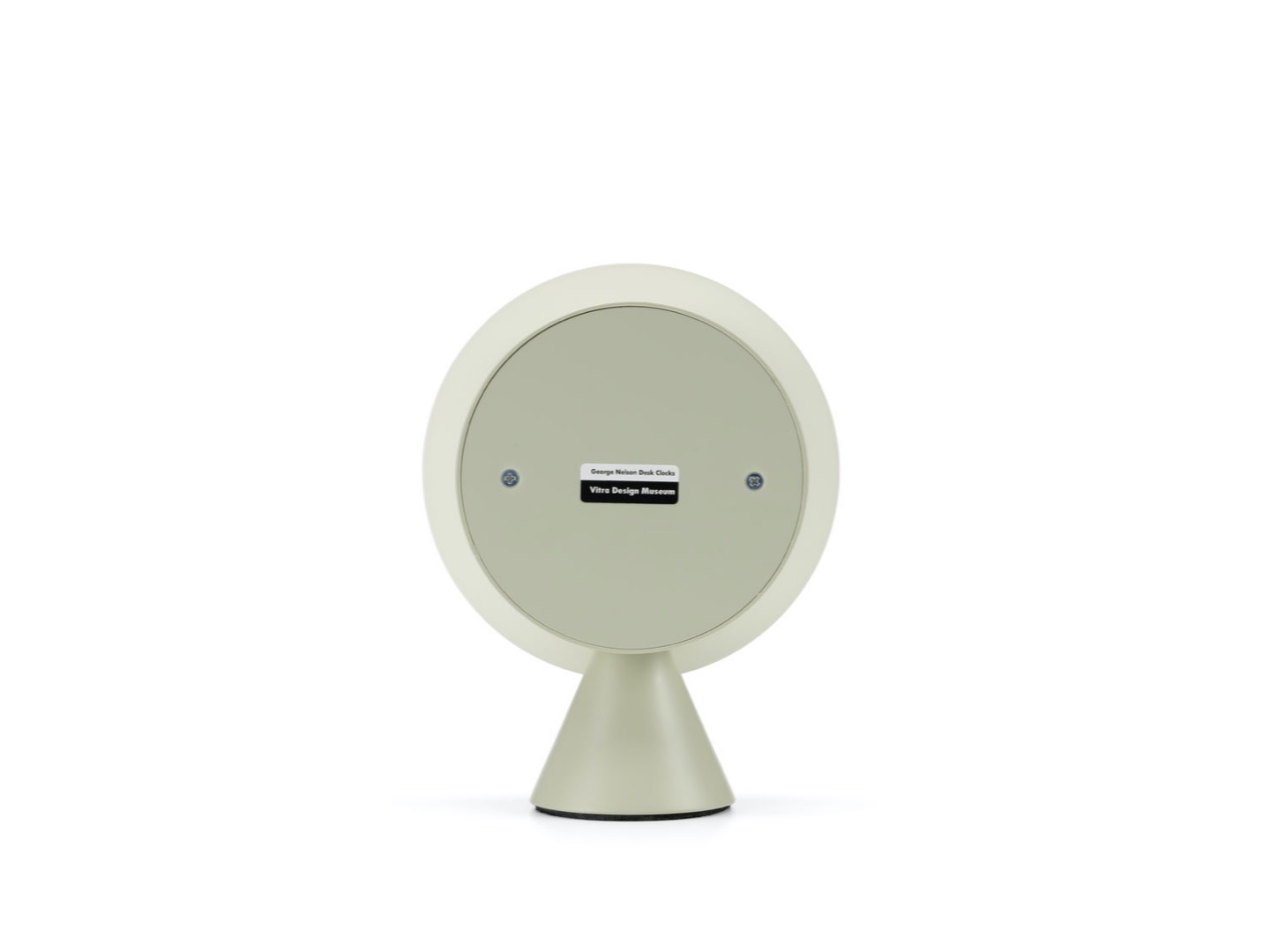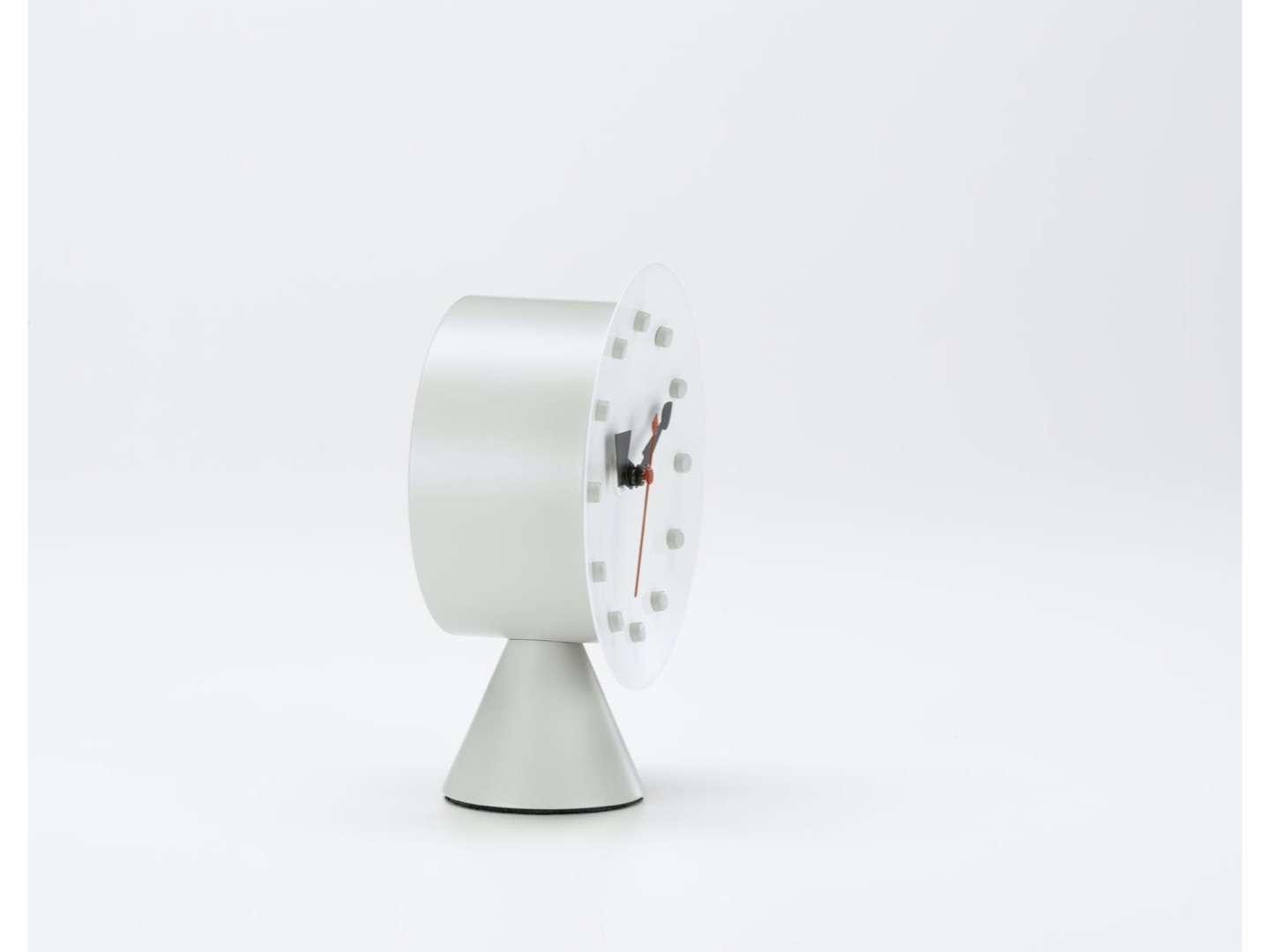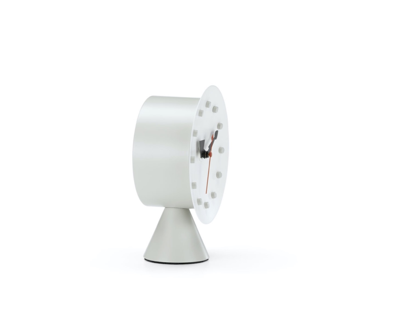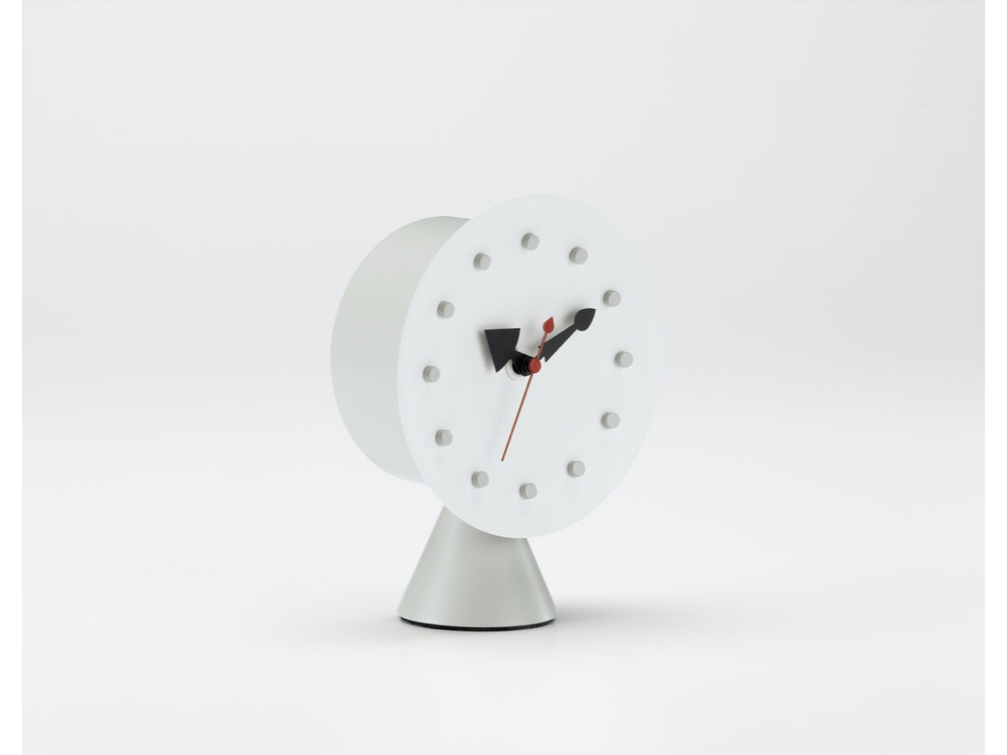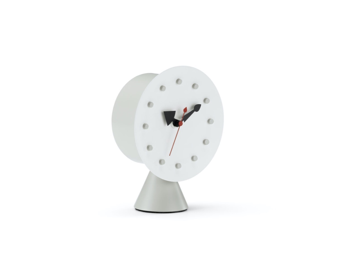 Seria Desk Clocks, została zaprojektowana przez Georga Nelsona w latach 1947-1954. Zegary zachwycają różnorodnością kształtów i ich pięknem. W swoich projektach George Nelson odzwierciedla "joie de vivre" czyli radość życia lat 50-tych. Do dnia dzisiejszego, jego zegary wyróżniają się i pozostają miłą alternatywą dla zwykłych czasomierzy. Zegar Cone Base Clock sprawdzi się jako dekoracyjny element twojej sypialni lub biura.