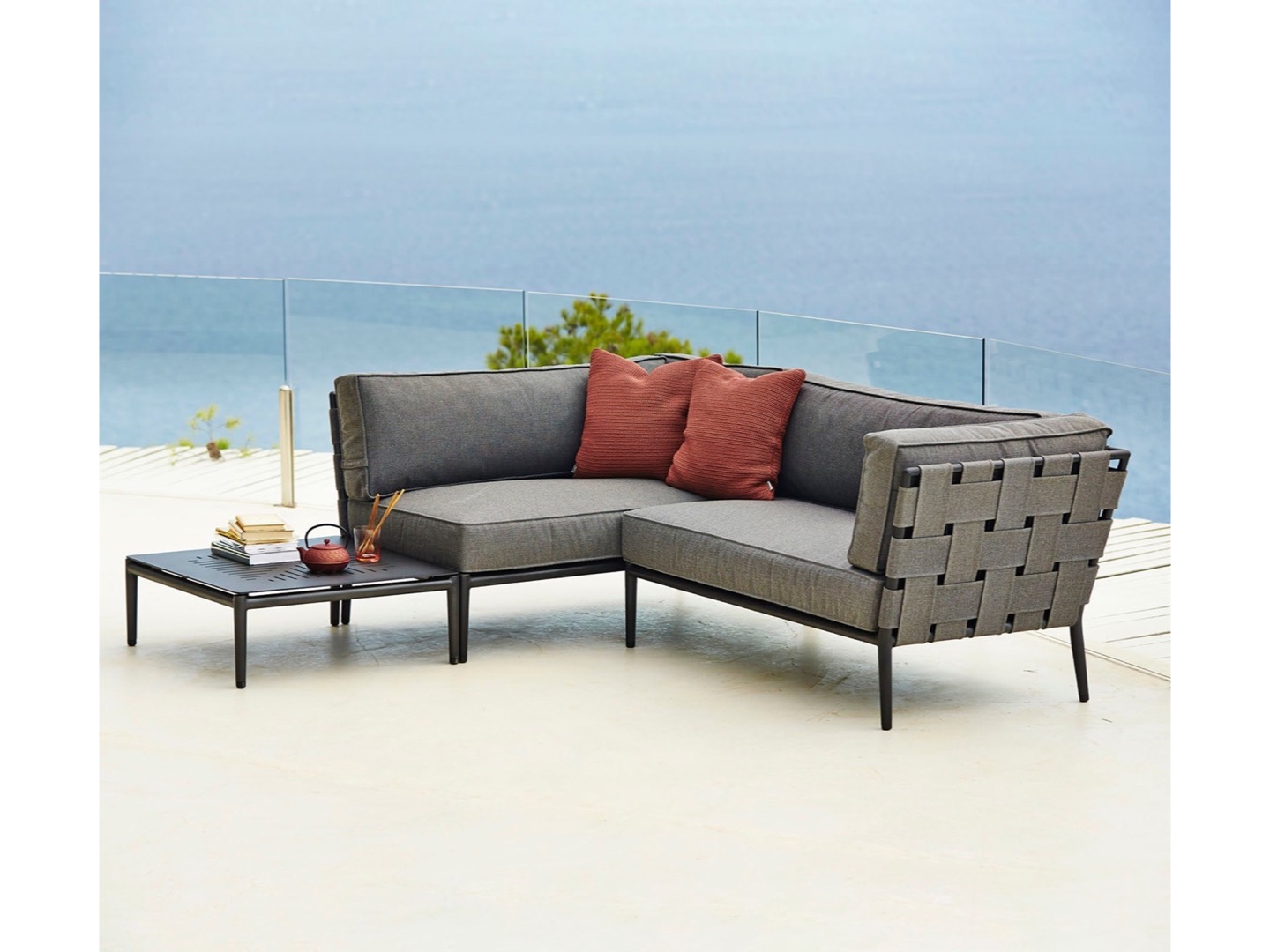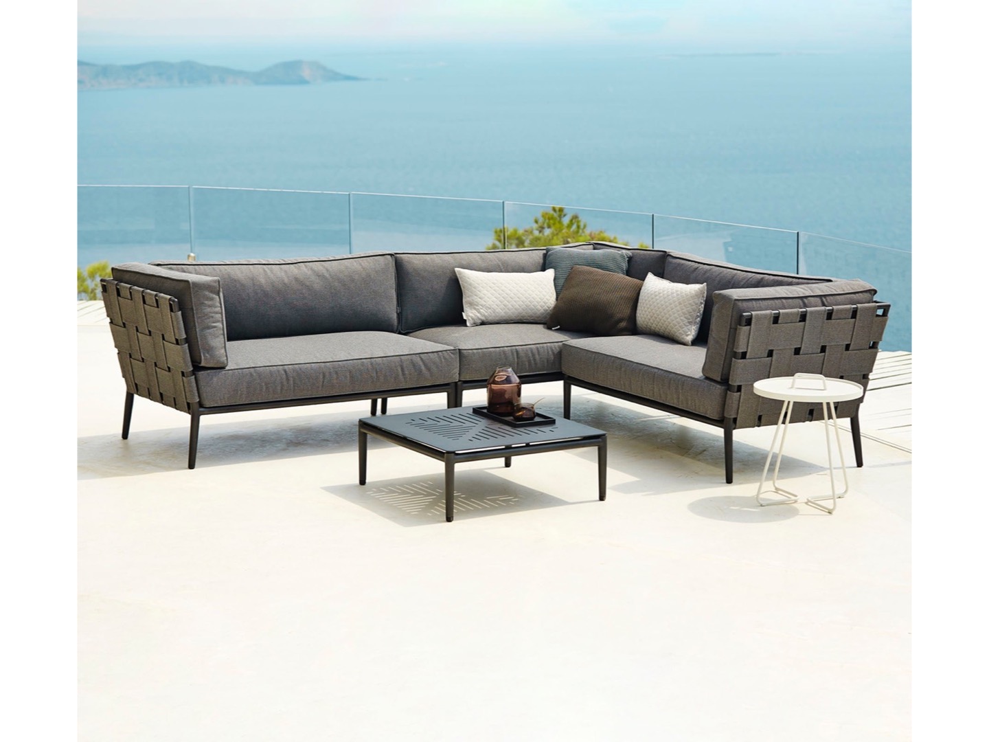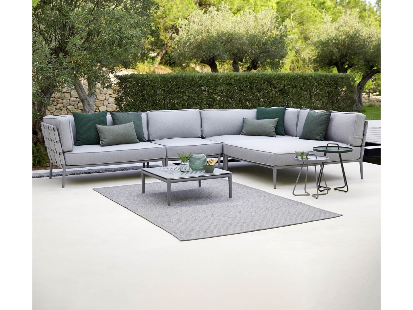 Stolik kawowy Conic może być używany samodzielnie lub połączony z innymi modułami kolekcji Conic. Mebel jest wykonany z aluminium, dlatego można go łatwo przenosić. Stolik kawowy, podobnie jak reszta kolekcji Conic, może stać na zewnątrz przez cały rok, ponieważ wymaga minimalnej konserwacji i czyszczenia. Zalecamy jednak przykrywanie mebli ogrodowych pokrowcem na okres zimowy.