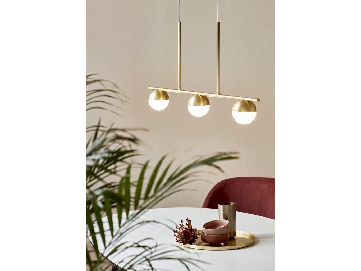 Contina to ekskluzywna lampa wisząca z trzema źródłami światła, która dodaje ciepła i przytulności pomieszczeniu. Dzięki smukłej konstrukcji lampa wisząca nie ogranicza widoczności ani nie zajmuje niepotrzebnej przestrzeni w pomieszczeniu, dzięki czemu idealnie nadaje się nad długi stół w jadalni lub kuchni.