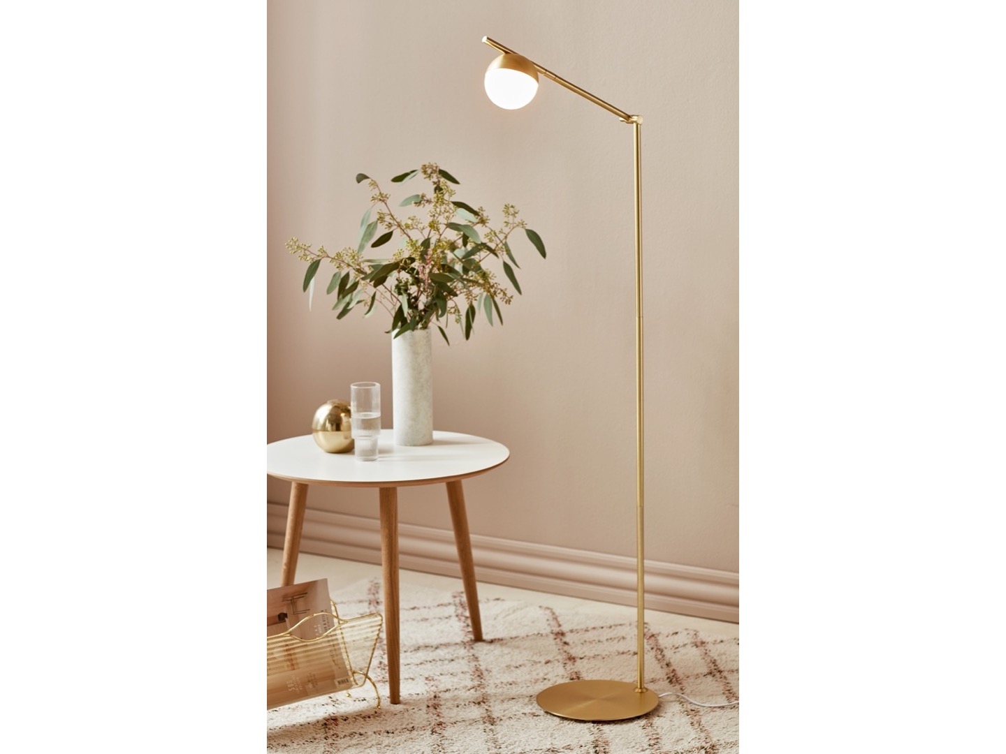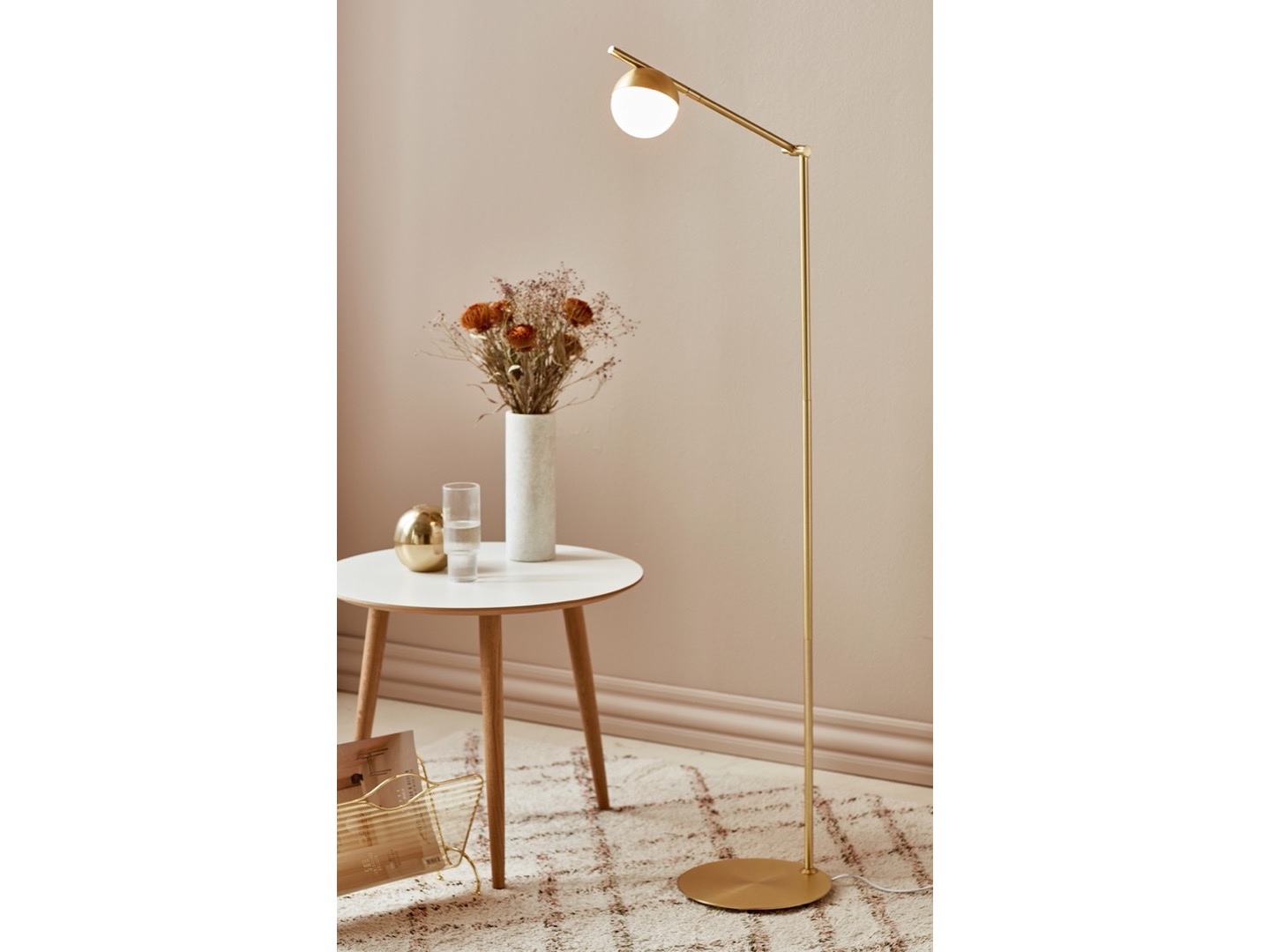 Contina łączy w sobie atrakcyjny design i funkcjonalność. To starannie dobrane detale sprawiają, że seria ta wyróżnia się i jest wyjątkowa. Ramę świetlną dopełnia kulista kopuła z opalowego białego szkła, która ukrywa źródło światła i rozprowadza w pomieszczeniu. Elegancka lampa podłogowa ma wiele funkcji i zastosowań, ponieważ głowicę lampy można obracać w obie strony, jednocześnie górną część oprawy można regulować w górę i w dół.