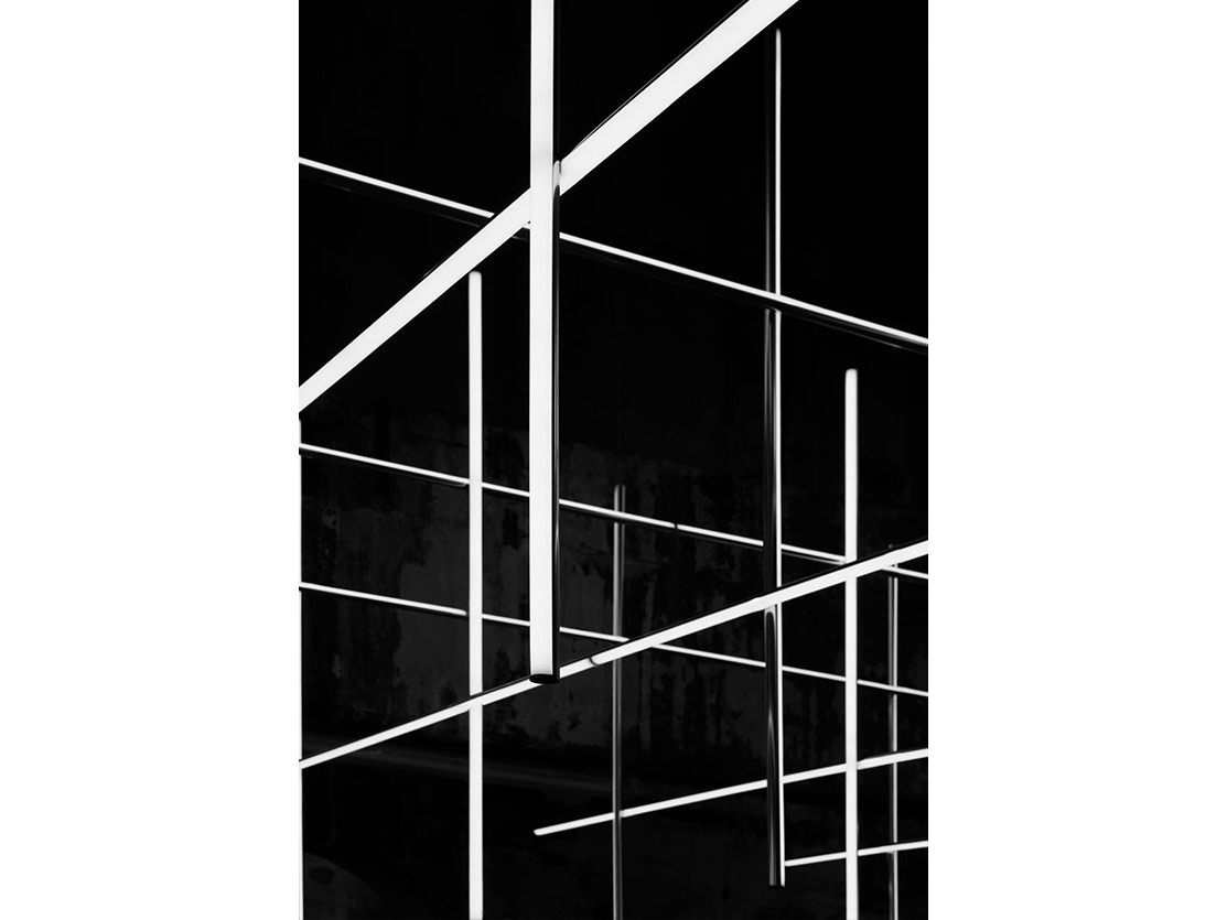 Coordinates Module Suspension to system oświetlenia składający się z poziomych i pionowych opraw rozmieszczonych w jasnej siatce o różnych kształtach i złożoności, dający rozproszone światło.