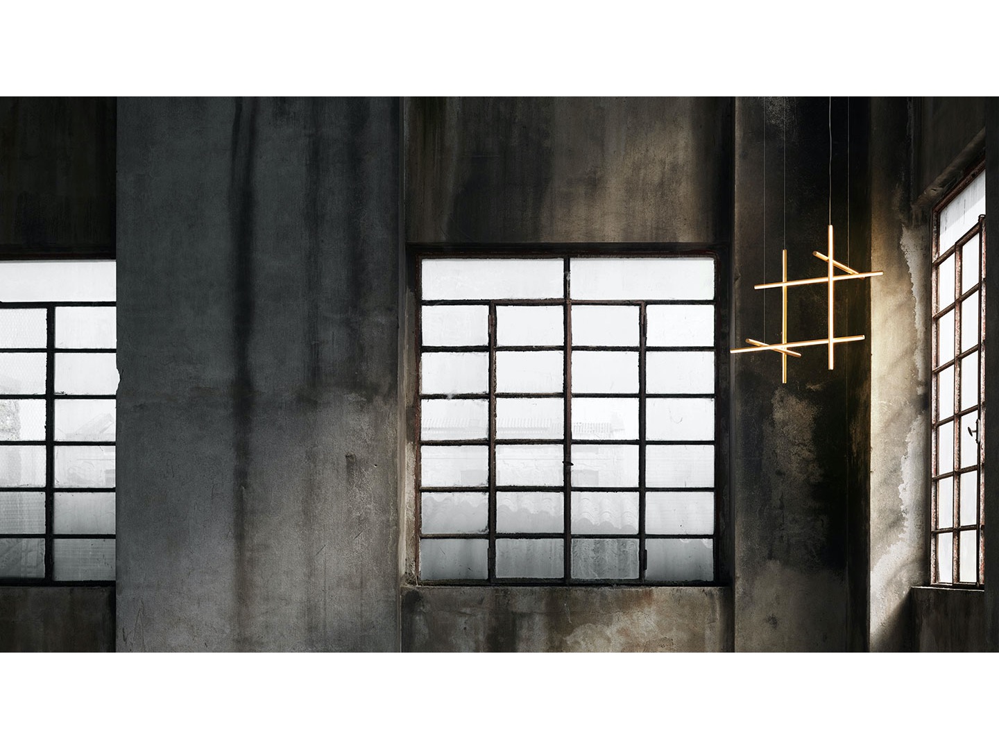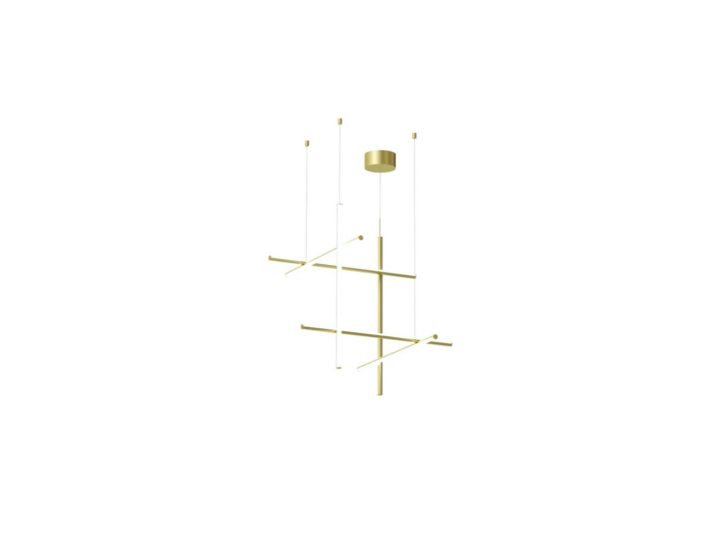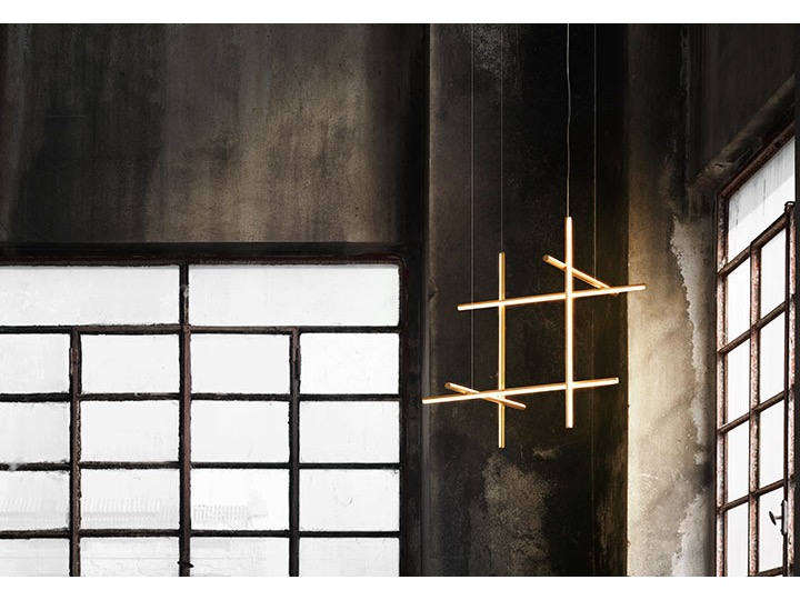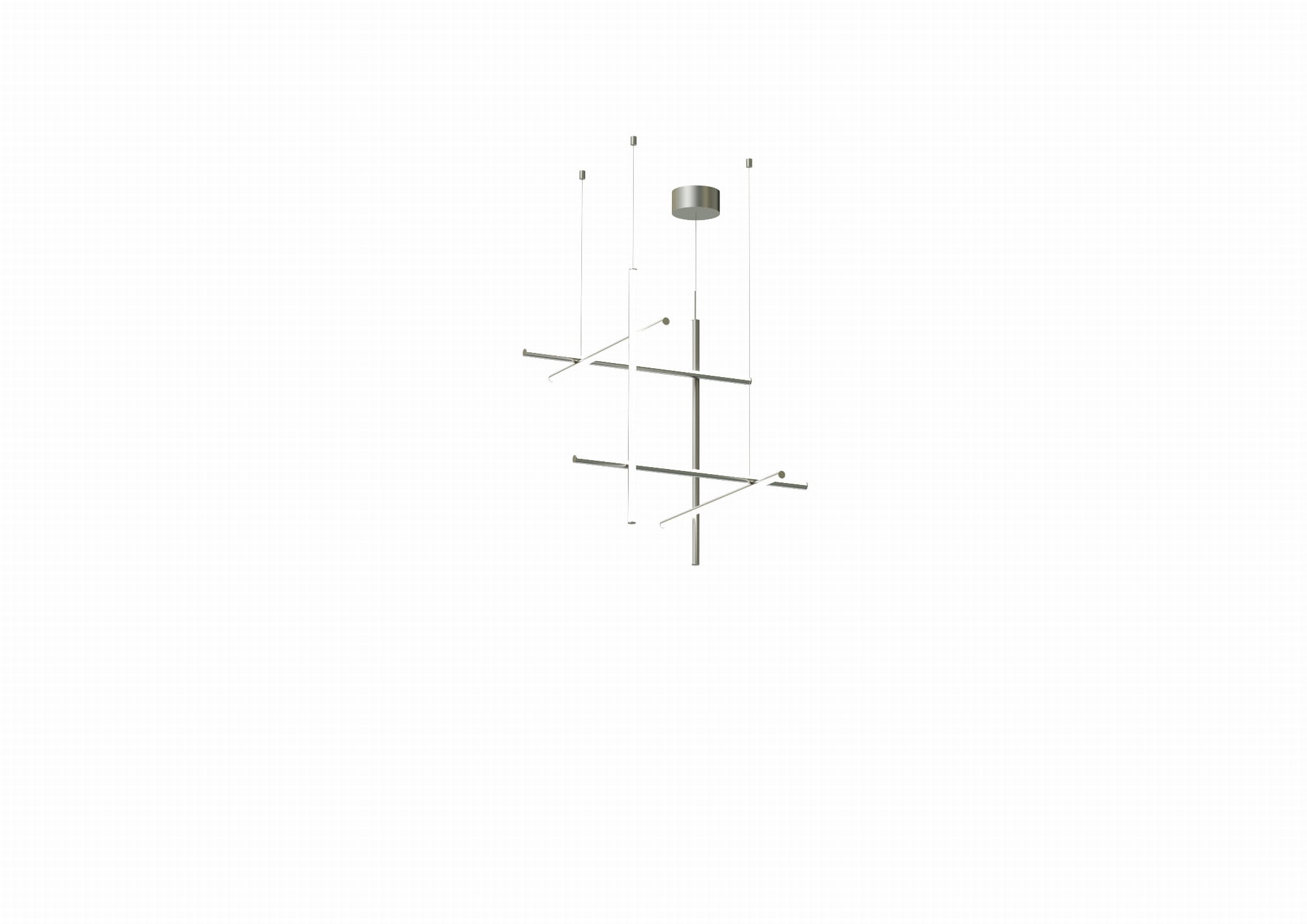 Coordinates Suspension 3 to system oświetlenia składający się z poziomych i pionowych opraw rozmieszczonych w jasnej siatce o różnych kształtach i złożoności, dający rozproszone światło.