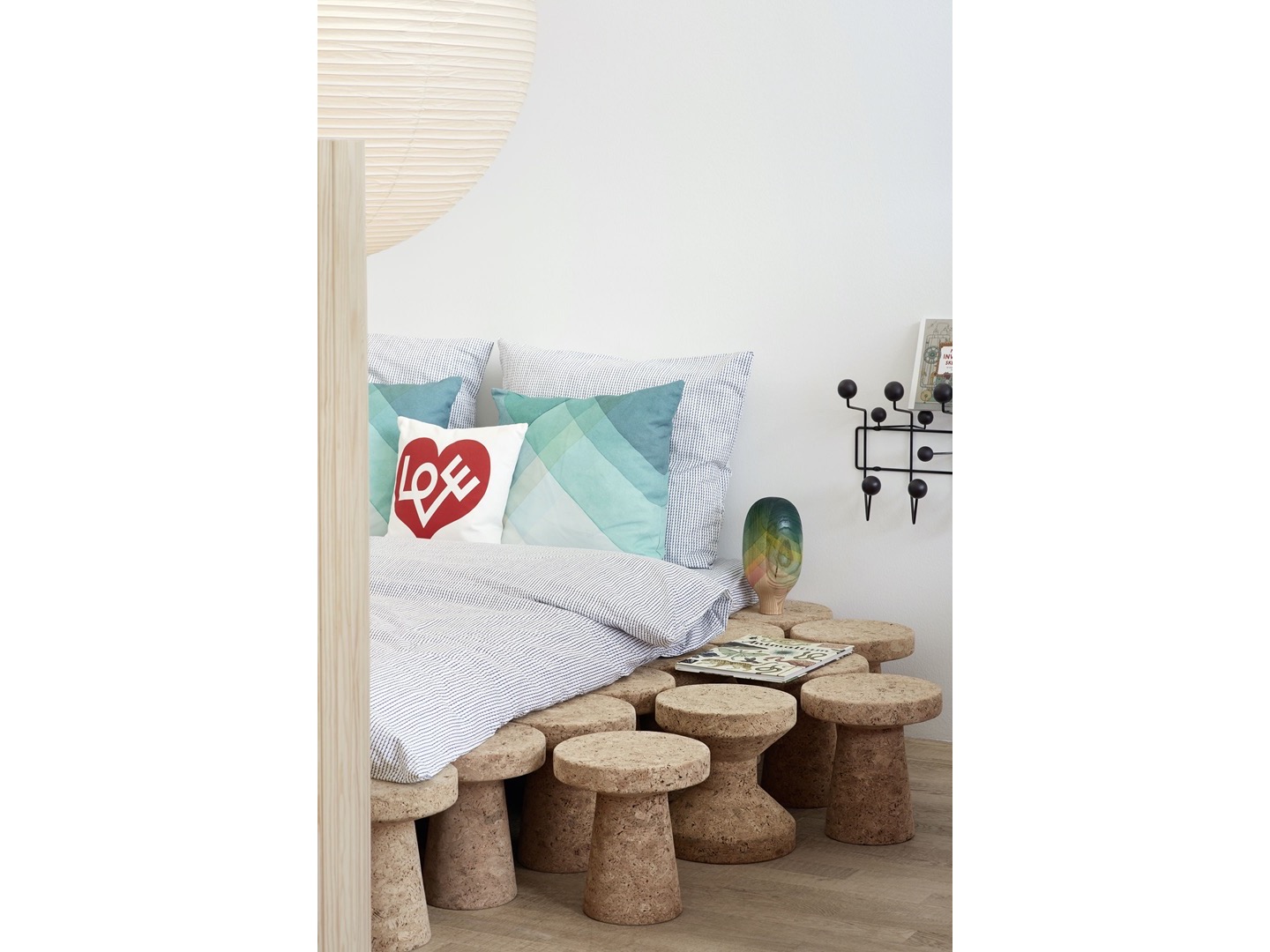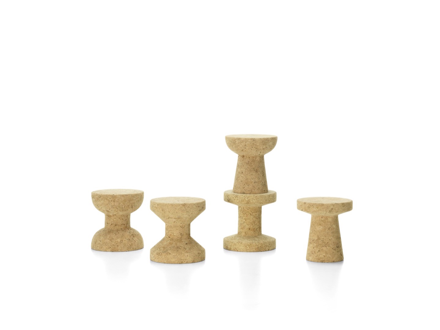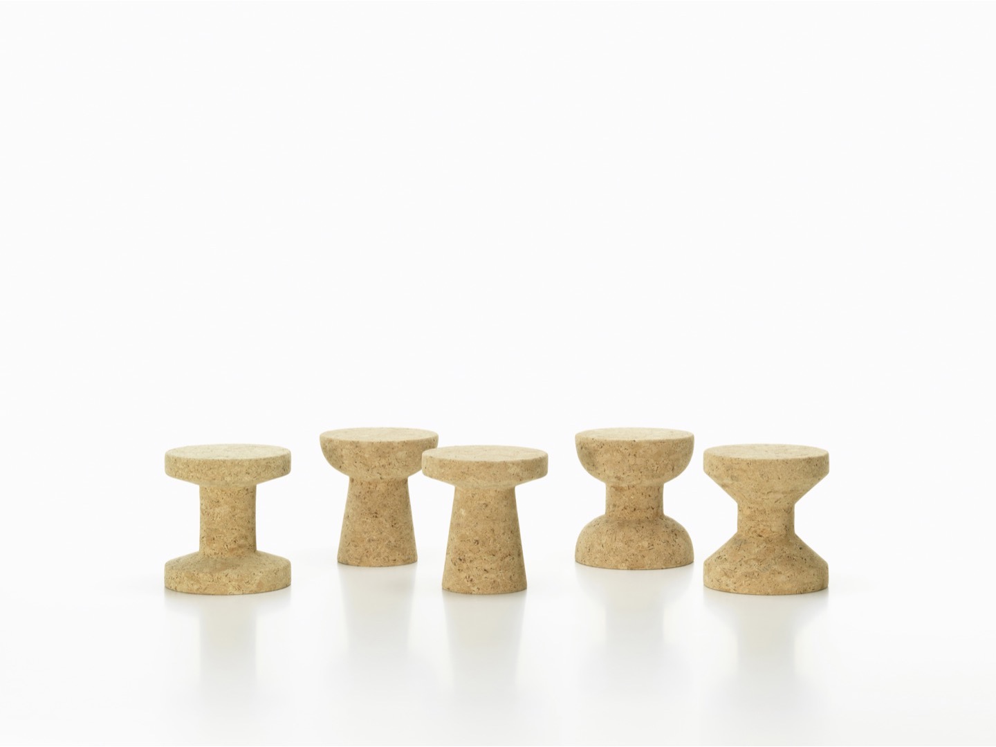 Jasper Morrison, 2004. Trzech małych przyjaciół o jakże indywidualnym charakterze. Lekkie, niezwykle miłe w dotyku, wykonane z naturalnego korka, mogą służyć jako mały stolik czy stołek.