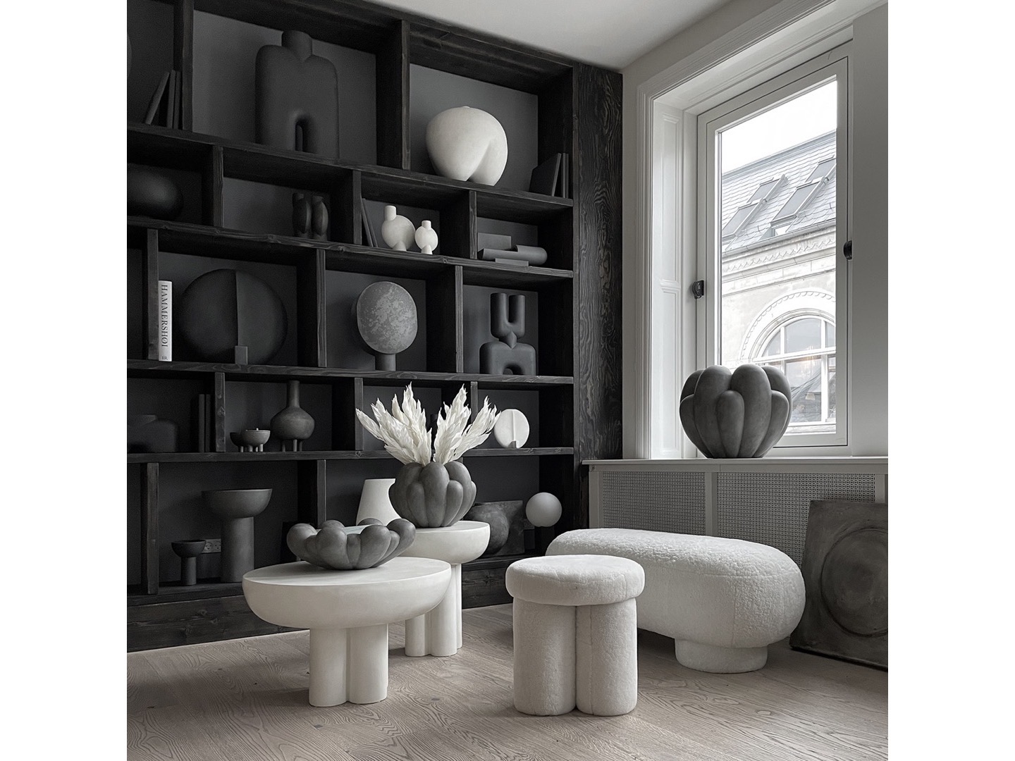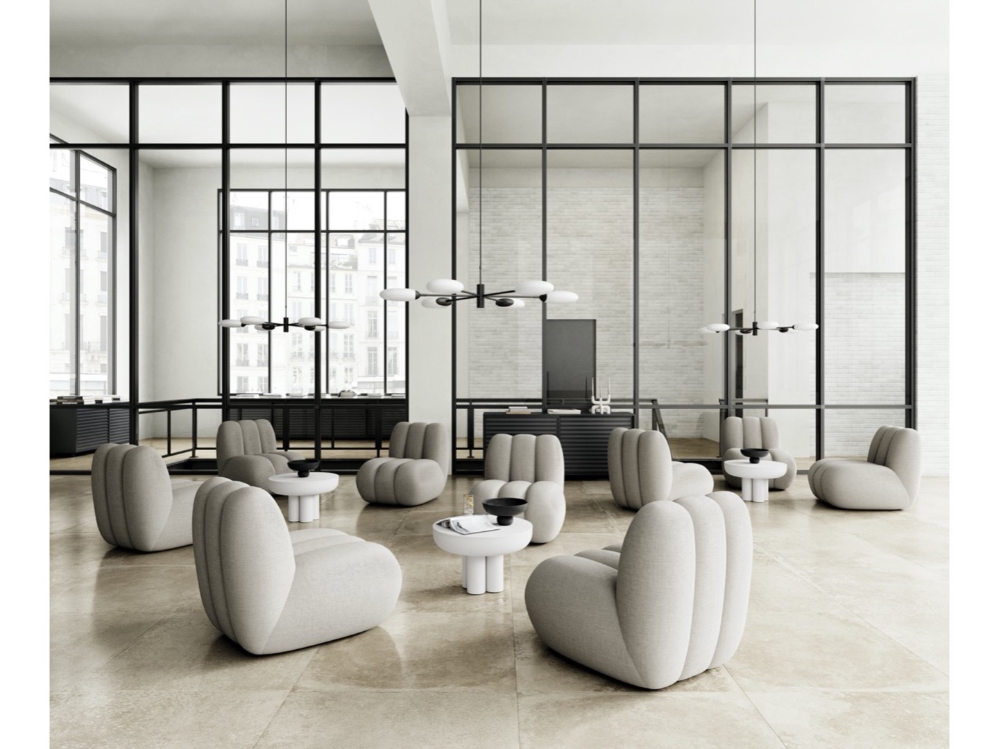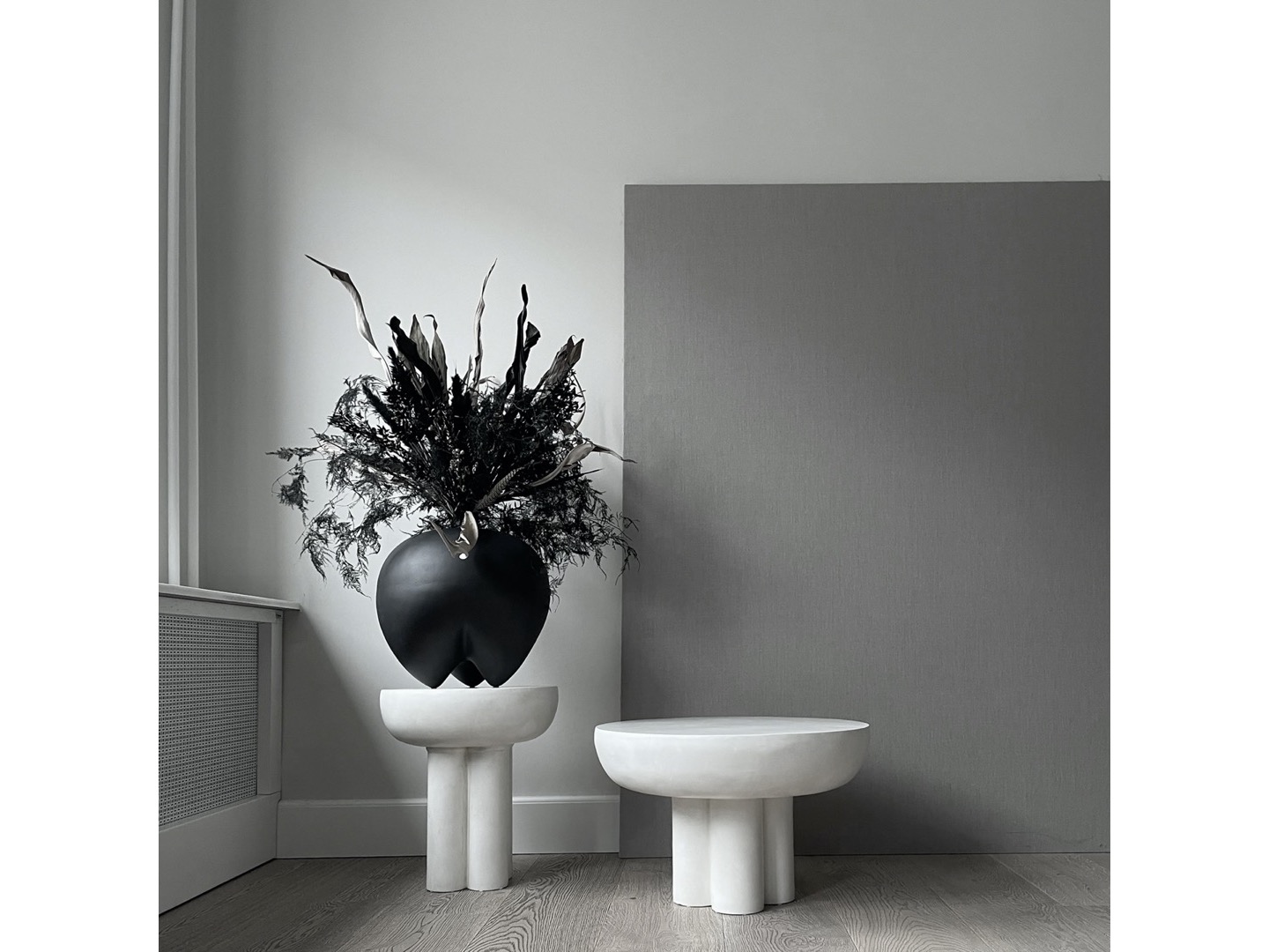 Zbiór stołów Crown jest uformowanym w formie okrągłego blatu podtrzymywanego przez cztery nogi w kształcie walca. Stojący mocno i dumnie stół inspirowany jest nagimi, strukturalnymi elementami architektury brutalistycznej, celebrując kolumny i unikając podejścia do zbyt wielu szczegółów. Masywne nogi z betonu włóknistego zapewniają dużą szczelinę między krawędzią stołu a nogami, aby podkreślić wrażenie masywnego pływającego blatu. Stół jest dostępny w dwóch rozmiarach i może być używany jako pojedynczy stolik stojący lub stać razem jako para stolików kawowych.