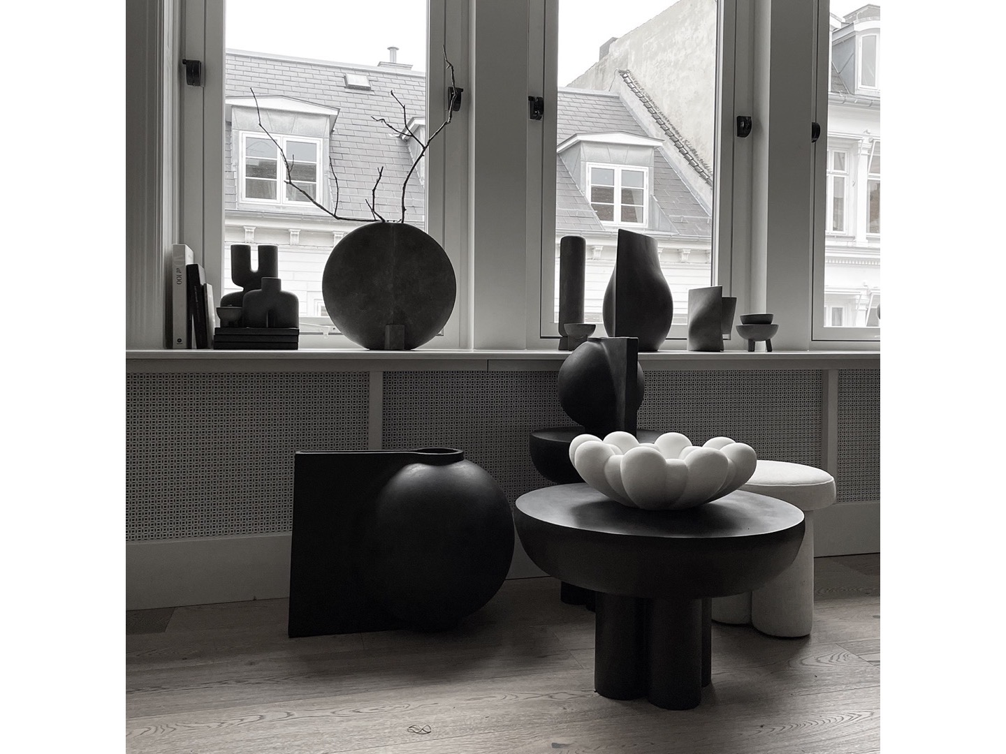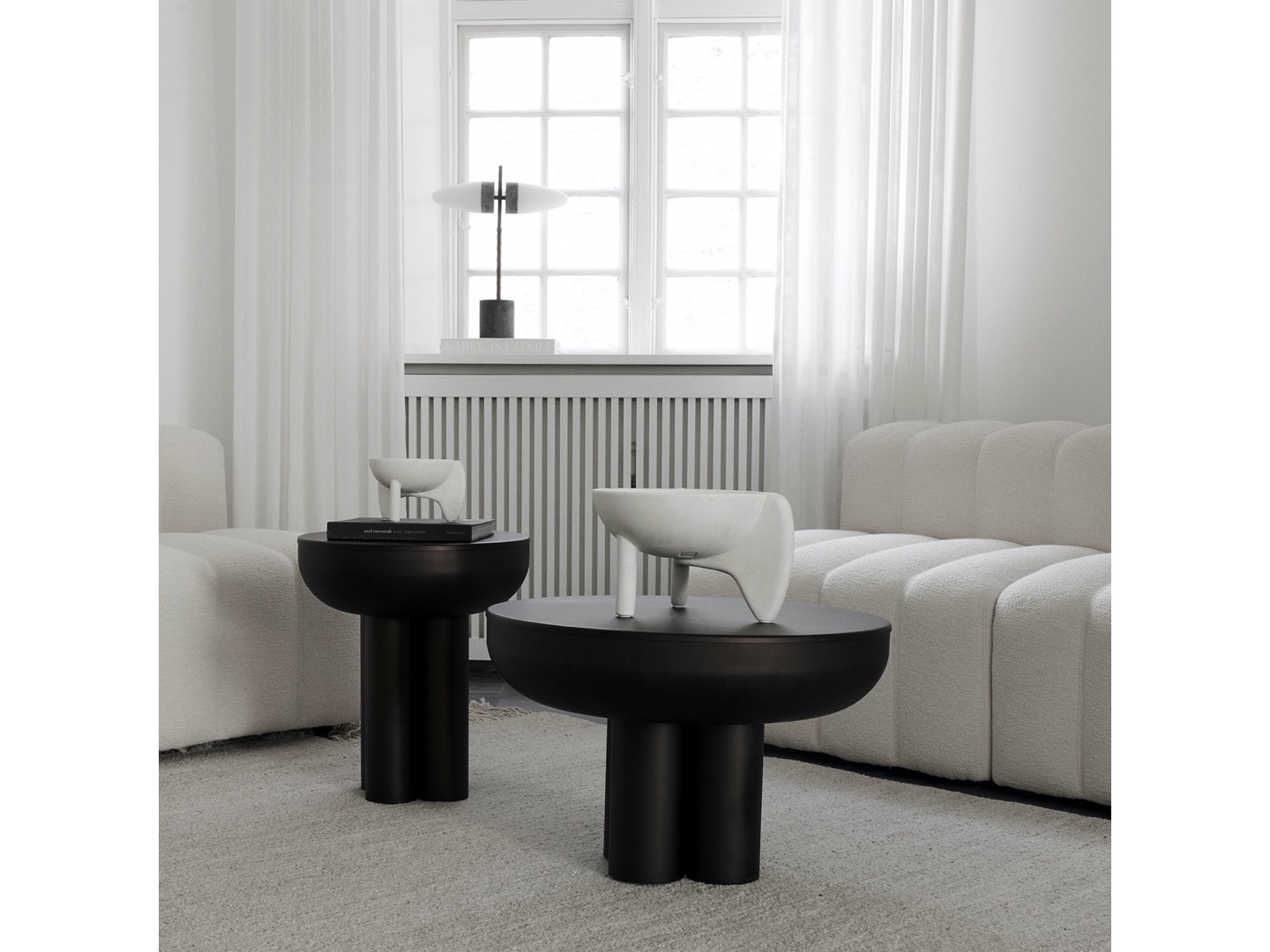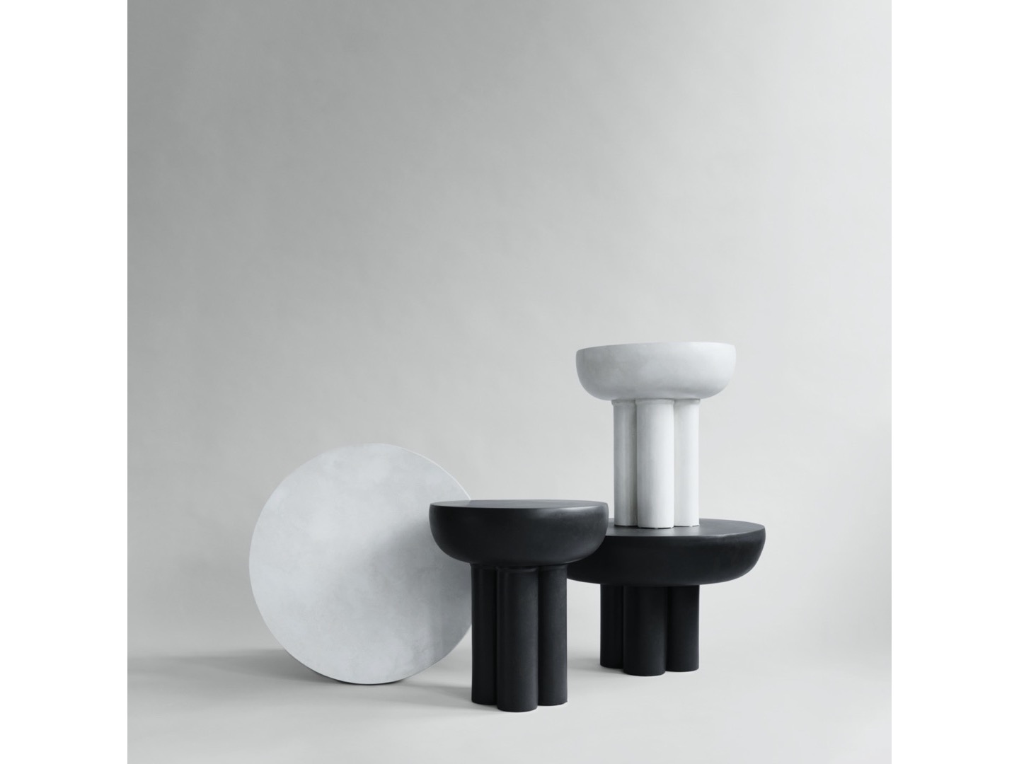 Zbiór stołów Crown jest uformowanym w formie okrągłego blatu podtrzymywanego przez cztery nogi w kształcie walca. Stojący mocno i dumnie stół inspirowany jest nagimi, strukturalnymi elementami architektury brutalistycznej, celebrując kolumny i unikając podejścia do zbyt wielu szczegółów. Masywne nogi z betonu włóknistego zapewniają dużą szczelinę między krawędzią stołu a nogami, aby podkreślić wrażenie masywnego pływającego blatu. Stół jest dostępny w dwóch rozmiarach i może być używany jako pojedynczy stolik stojący lub stać razem jako para stolików kawowych.