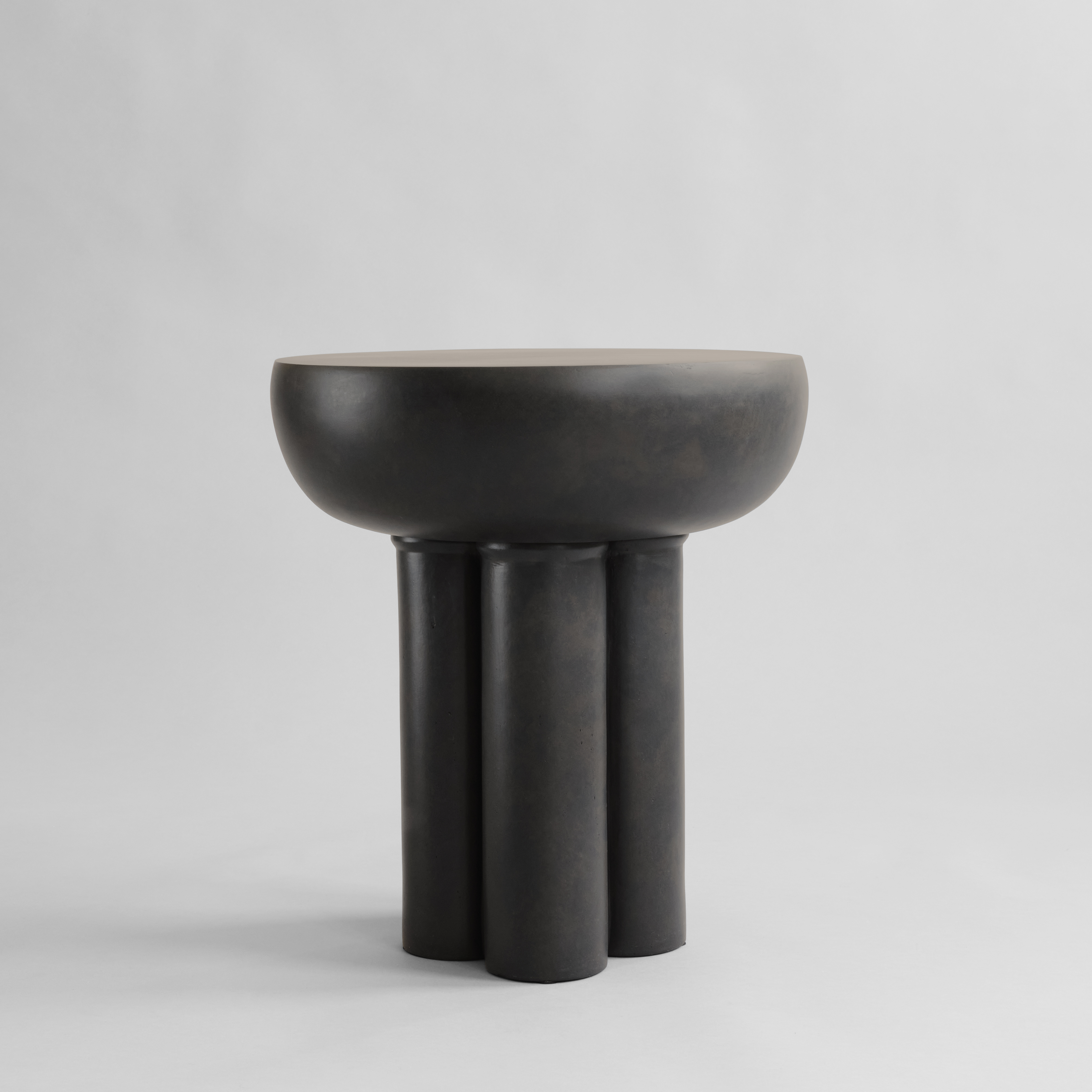 Zbiór stołów Crown jest uformowanym w formie okrągłego blatu podtrzymywanego przez cztery nogi w kształcie walca. Stojący mocno i dumnie stół inspirowany jest nagimi, strukturalnymi elementami architektury brutalistycznej, celebrując kolumny i unikając podejścia do zbyt wielu szczegółów. Masywne nogi z betonu włóknistego zapewniają dużą szczelinę między krawędzią stołu a nogami, aby podkreślić wrażenie masywnego pływającego blatu. Stół jest dostępny w dwóch rozmiarach i może być używany jako pojedynczy stolik stojący lub stać razem jako para stolików kawowych.