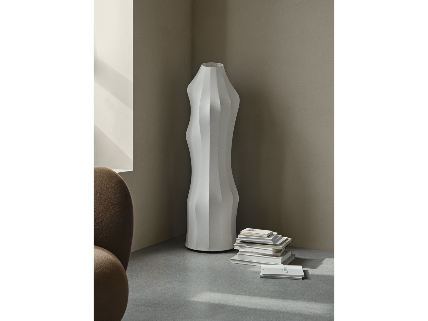 Lampa Dae czerpie inspirację z eterycznego piękna poczwarki motyla Pieridae. Dzięki połączeniu delikatnej włókniny polimerowej i unikalnego, organicznego kształtu lampa służy nie tylko jako źródło światła, ale także jako dzieło sztuki. Półprzezroczysty klosz rozprasza światło w wyjątkowy i urzekający sposób, rzucając ciepły i delikatny blask, który tworzy przytulną atmosferę w każdym pomieszczeniu. Podnieś swoją przestrzeń dzięki współczesnej estetyce lampy Dae – gdzie forma spotyka się z funkcją w doskonałej harmonii. Klosz z włókniny polimerowej z biegiem czasu będzie pięknie patynował, nadając mu niepowtarzalny wygląd.