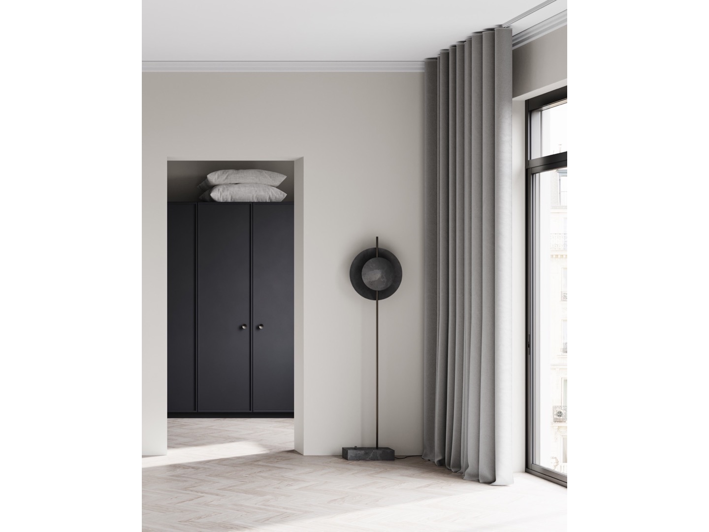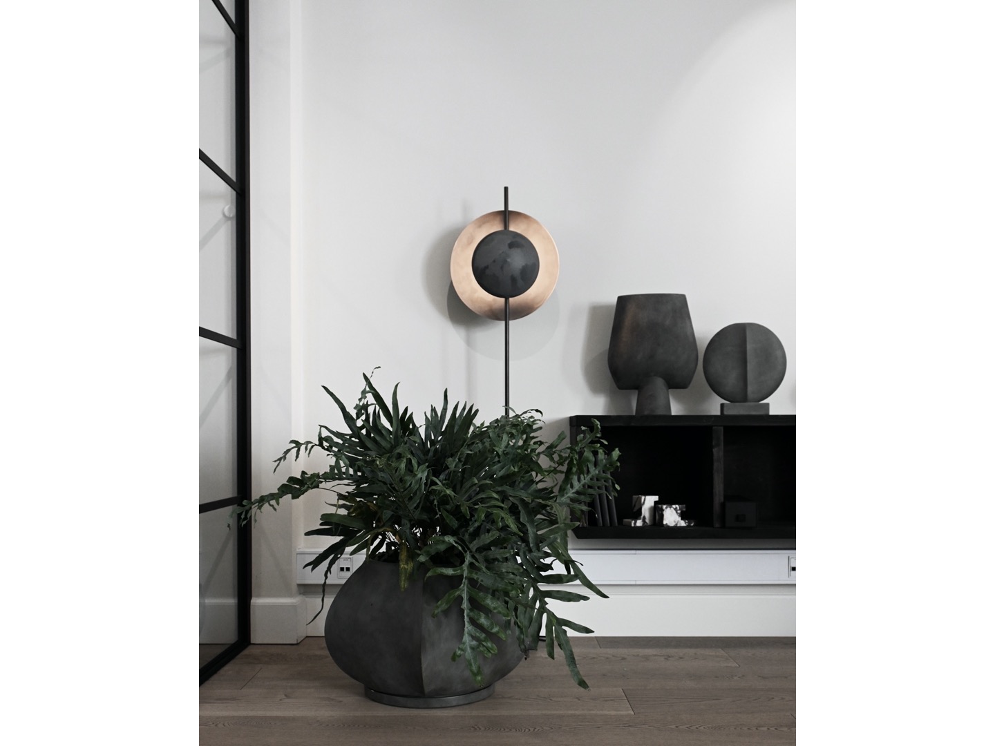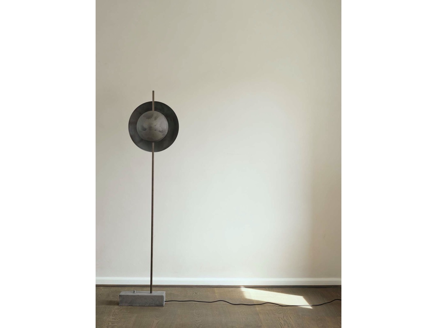 Dzięki warstwowym odcieniom seria lamp Dusk and Dawn figlarnie dzieli światło, nadając rytm. Uczucie niemal zaćmienia przyczynia się do intymnej i przytulnej atmosfery, tworząc dzieło sztuki. Rzucając wyzwanie materiałowi i formie podstawy, lampy Dusk and Dawn stały się nowym sposobem prezentacji i integracji oświetlenia w projektach wnętrz. Surowa, ręcznie robiona podstawa z oksydowanego aluminium zapewnia lampie stabilność, podczas gdy dwa klosze z oksydowanego aluminium tworzą geometryczny i czysty wygląd, który nadaje głębi gładkiemu światłu. Zaprojektowany przez Nicolaja Nøddesbo i Tommy'ego Hyldahla. Specyfikacje materiałowe: abażur i podstawa lampy: oksydowane aluminium, rury: szczotkowane aluminium.