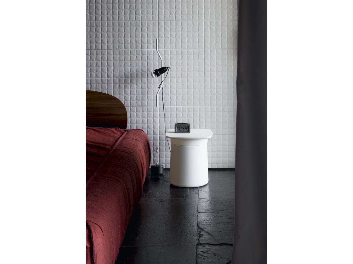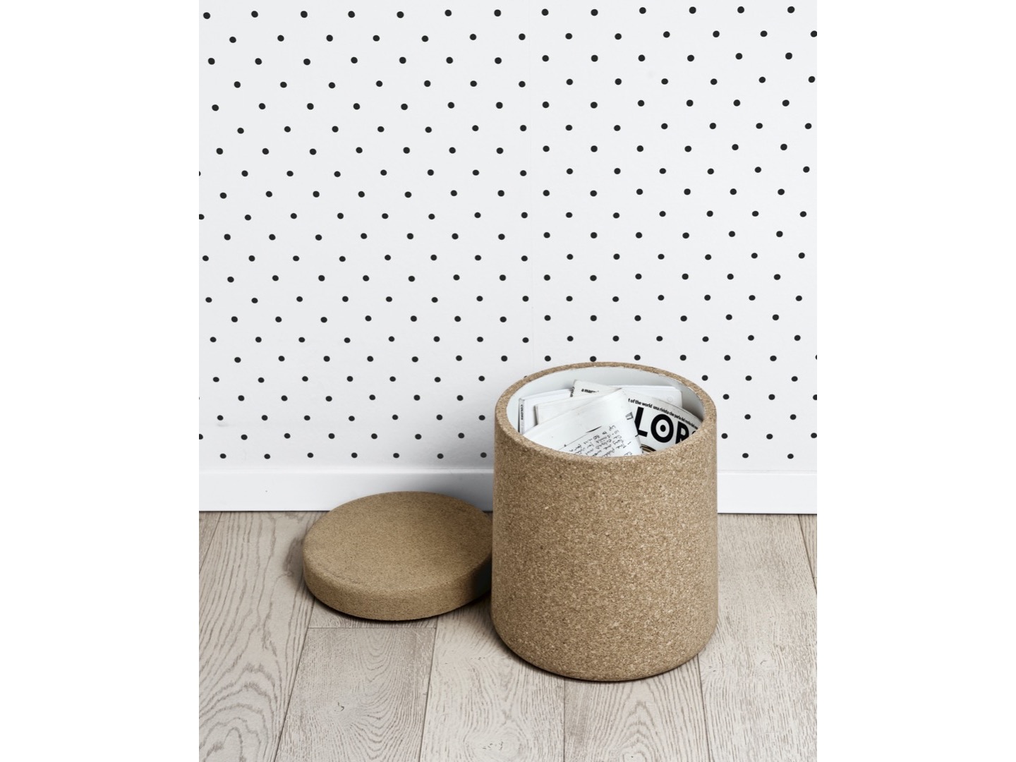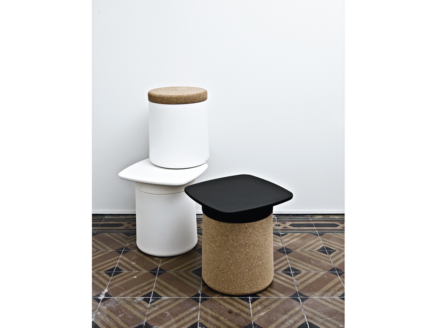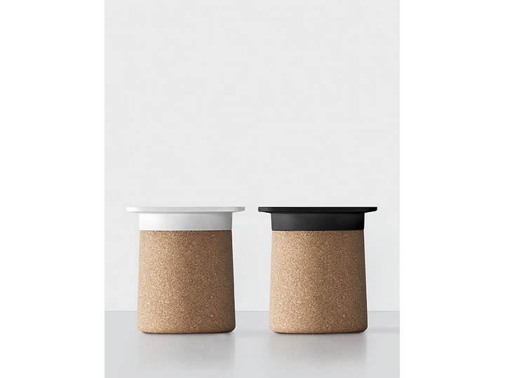 Wszechstronny i zabawny element. Miejsce do przechowywania lub poręczny stolik. Dostępny w kolorze białym, czarnym lub pokryty naturalnym korkiem. Dostępny od marca 2012.
