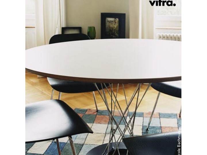 Baza wykonana z prętów stalowych nadaje projektowi lekkości i gracji. Można go oglądać w stałej kolekcji Vitra Design Museum.