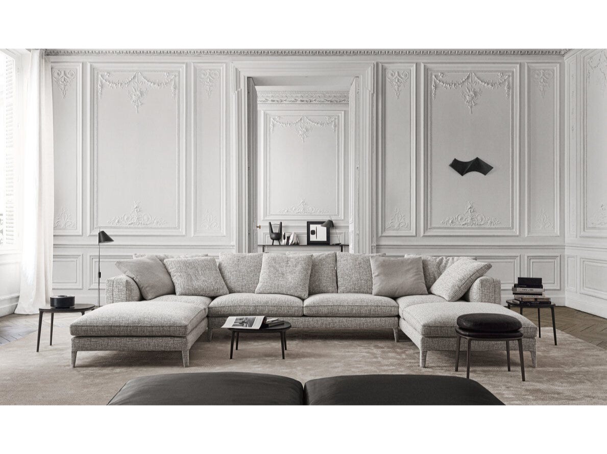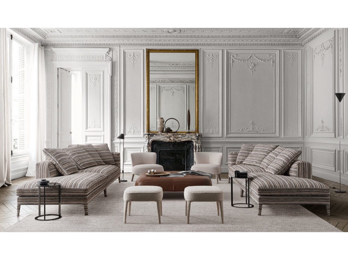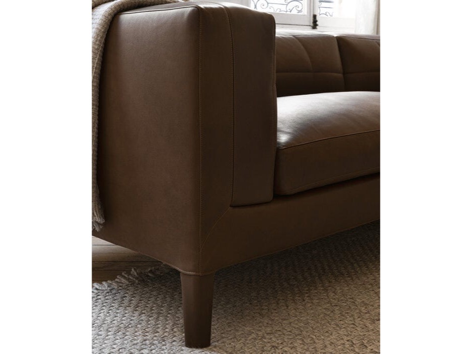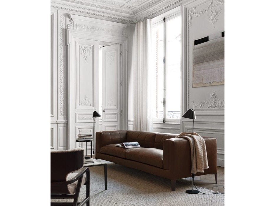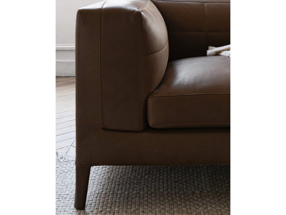 Sofy z bardziej zabudowanym siedziskiem wyróżniają się podłokietnikiem i oparciem, które wyglądają inaczej na części zewnętrznej, gdzie tapicerka jest napięta i na wewnętrznej, gdzie znajduje się pikowanie nawiązujące do klasycznych Chesterfieldów. Z kolei warianty o większej głębi mają rozciągniętą tapicerkę i są wzbogacone miękkimi poduszkami z pierza, które czynią ją jeszcze bardziej wygodną.