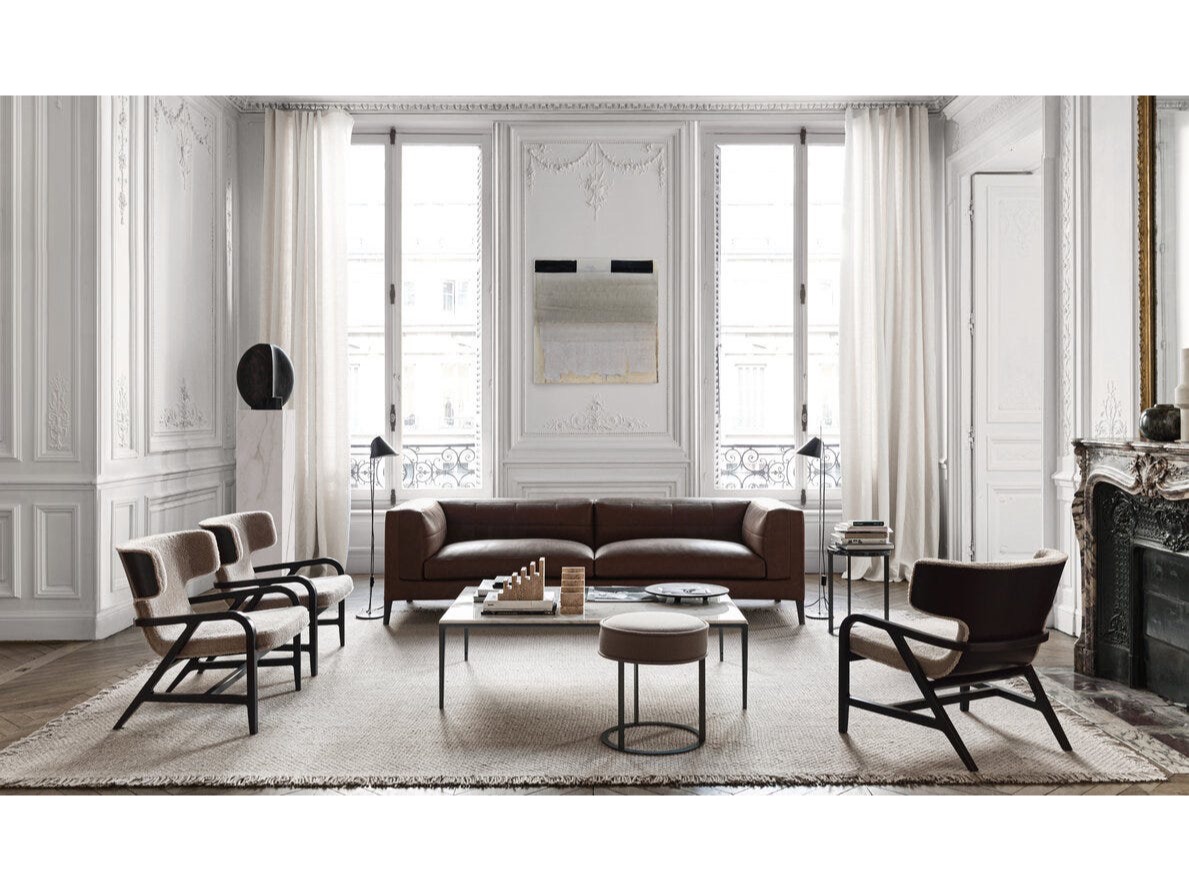 Obie wersje mają miękką i obszerną wyściółkę dla optymalnego komfortu. Tapicerka dostępna jest w szerokiej gamie tkanin i skór. Nóżki pokryte są tkaniną, skórą lub malowanym szelakiem.