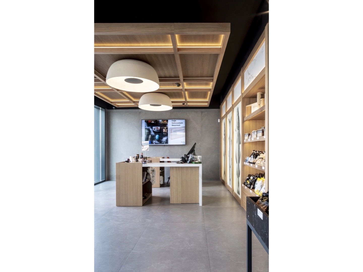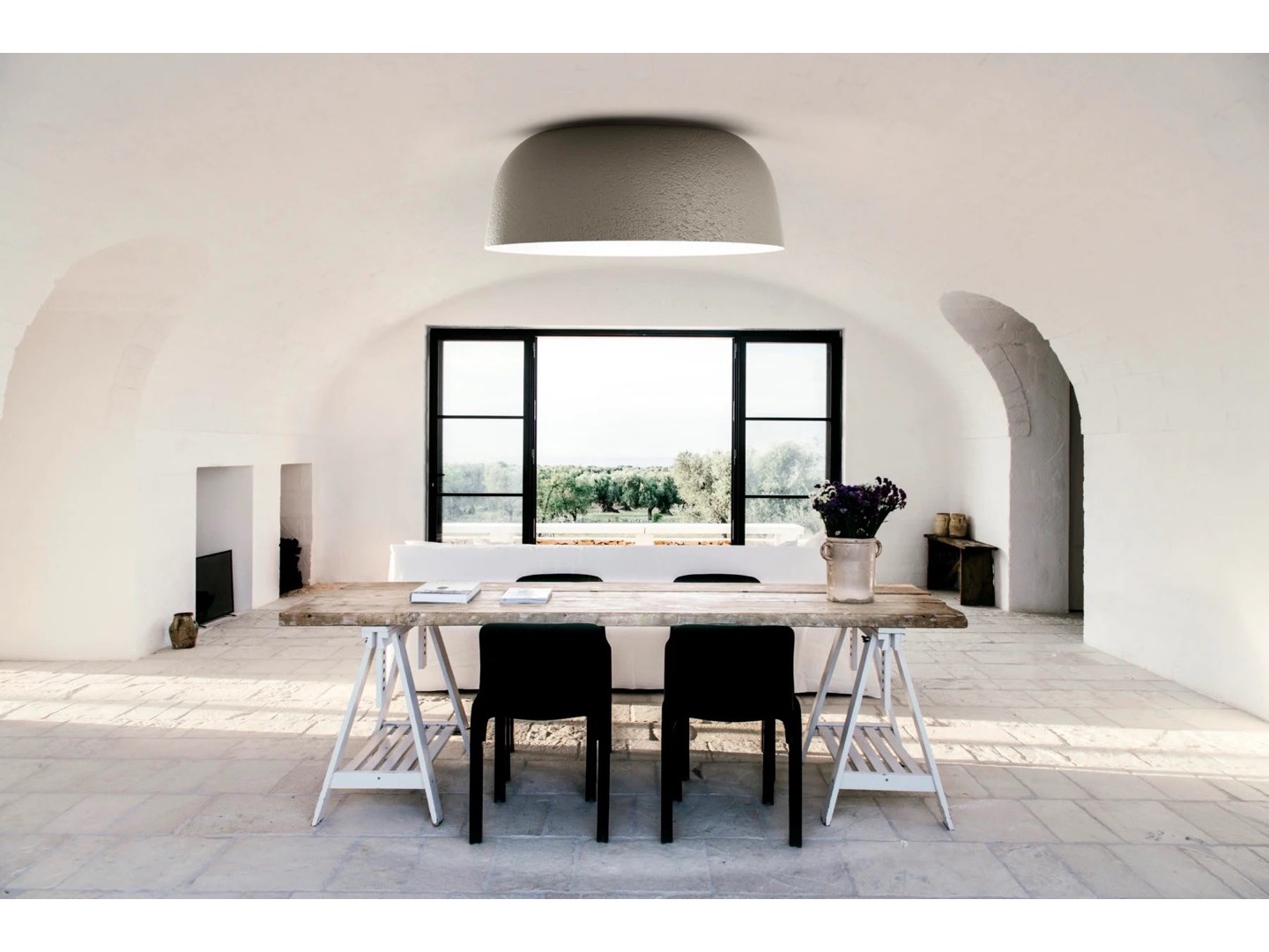 Wykorzystanie techniki rotomouldingu umożliwiło projektantowi Joanowi Gasparowi zaprojektowanie oprawy o różnych teksturach- wewnątrz i na zewnątrz. Zewnętrza strona lampy przypomina teksturę kamienia- dając wrażenie wielkiej wagi, natomiast przestronne wnętrze lampy to gładka, biała przestrzeń idealnie odbijająca światło.