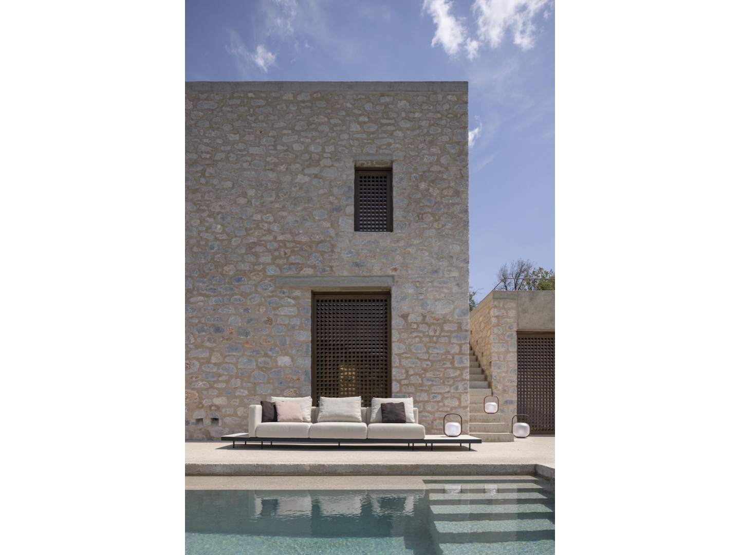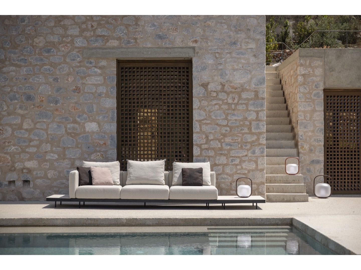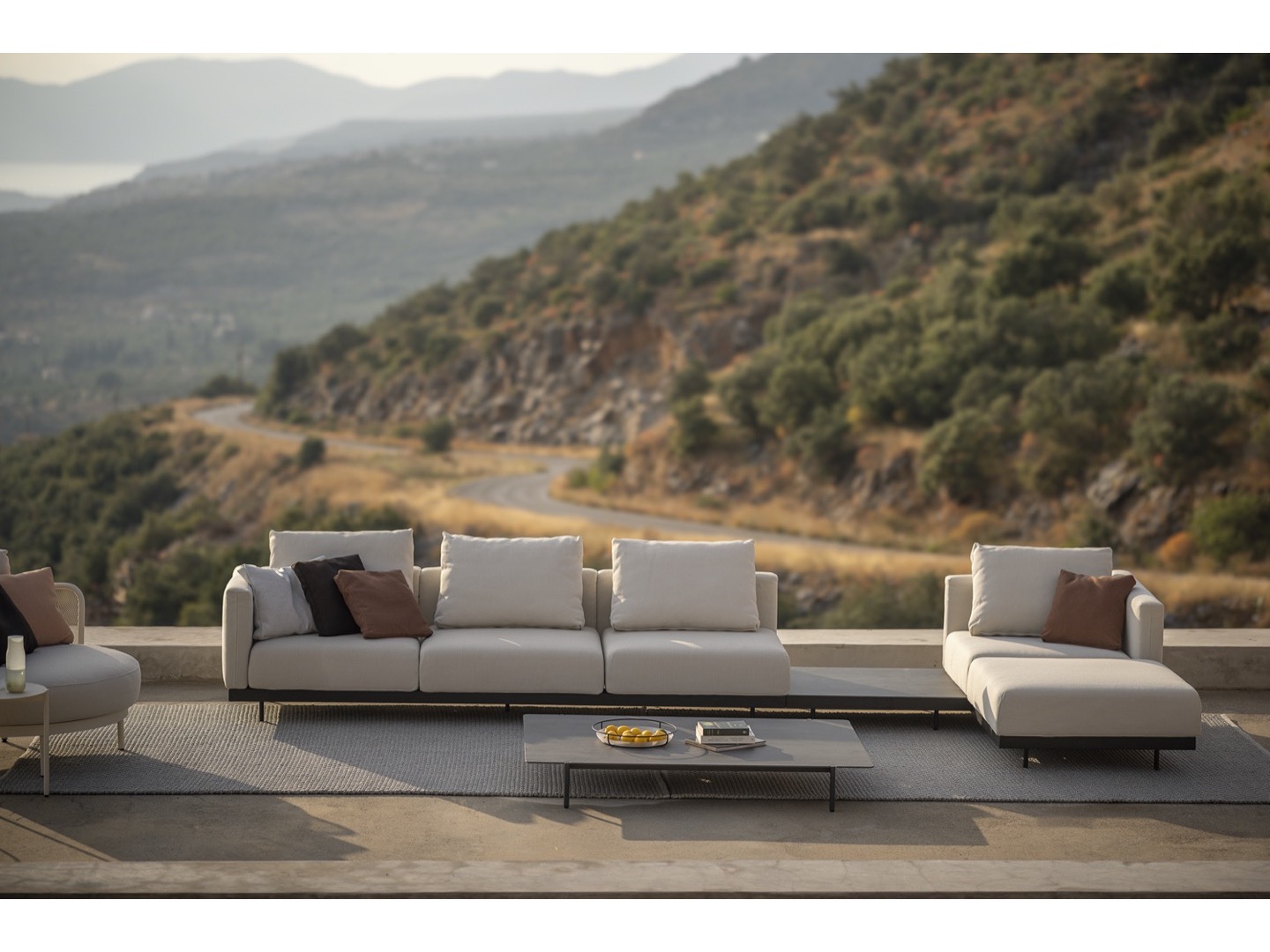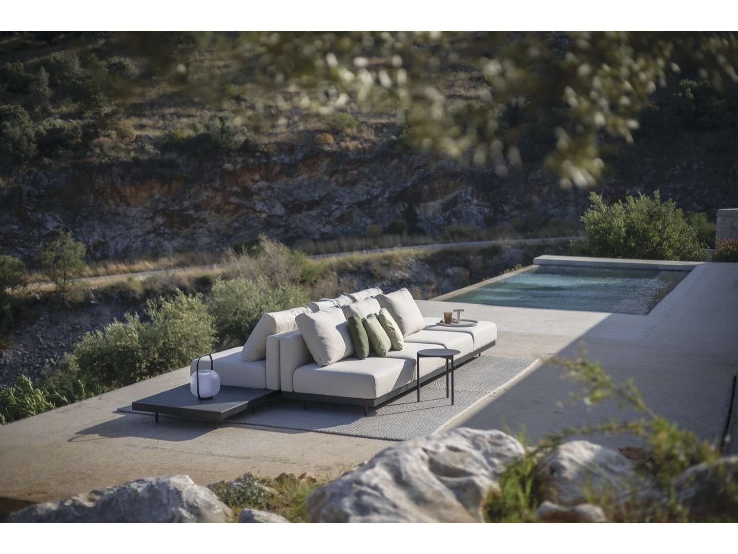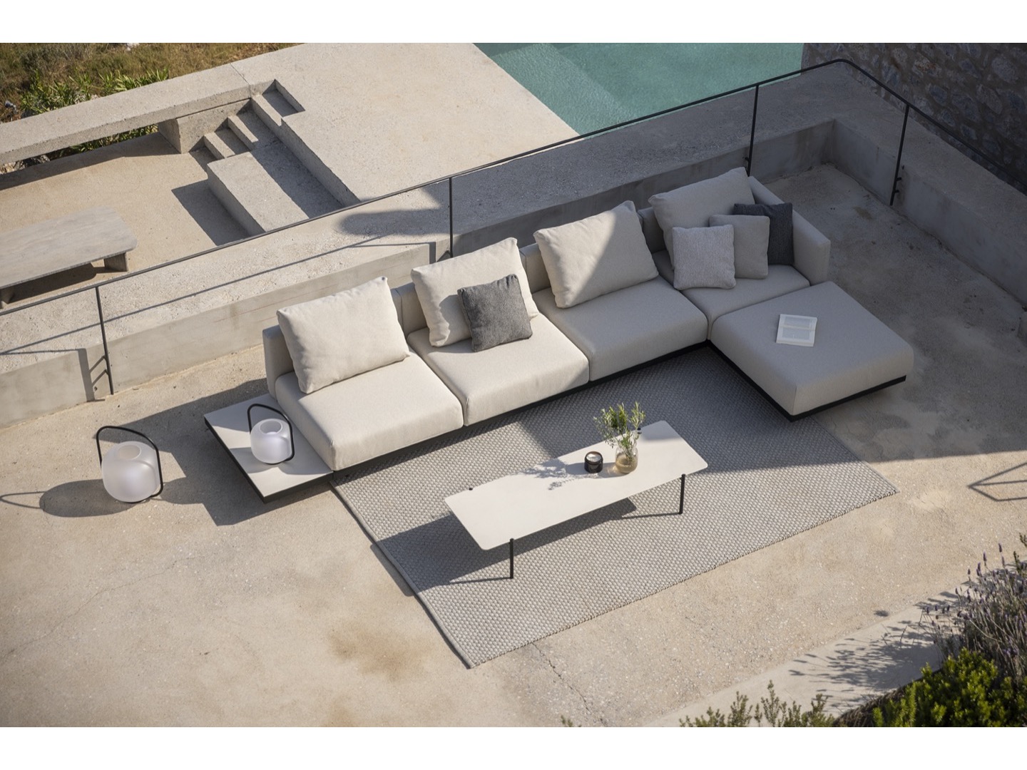 Sofa wykonana jest z wysokiej jakości materiałów odpornych na warunki atmosferyczne. Dzięki eleganckiej ramie ze stali nierdzewnej i wygodnym wyściełanym poduszkom oferuje idealne połączenie komfortu, wzornictwa i trwałości. Do sofy dołączono szereg dodatkowych stolików, które można zintegrować, dzięki czemu Dongo jest wszechstronnym rozwiązaniem dla każdego, kto szuka pięknej i funkcjonalnej przestrzeni na zewnątrz.