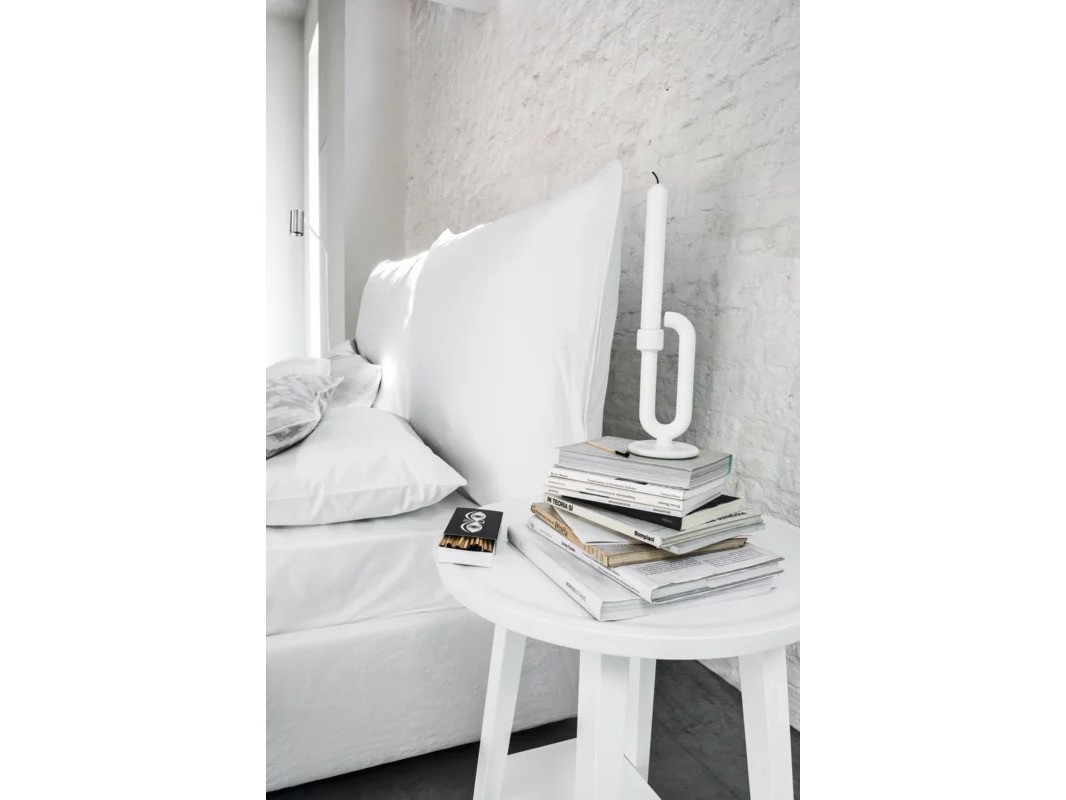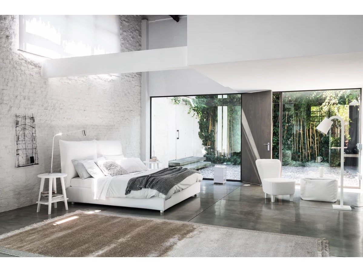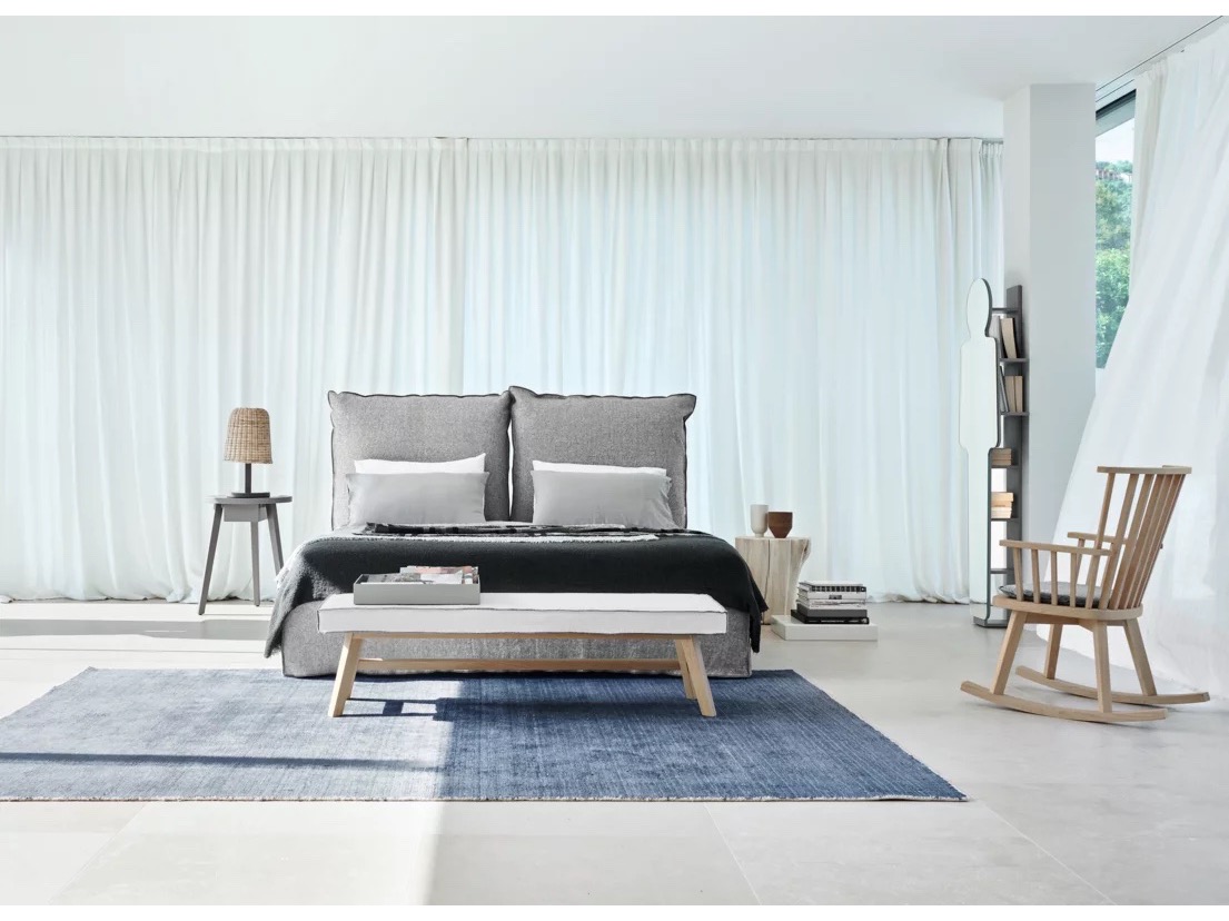 Miękkie kształty zachęcające do relaksu to cechy charakterystyczne łóżka Double. Tapicerowane łóżkowyposażone jest w duży zagłówek i dwie poduszki. Dostępne z widocznymi nóżkami z litego drewna w kolorze naturalnym orzechowym, czarnym, białym, szarym, oceanicznym lub gołębim szarym.
