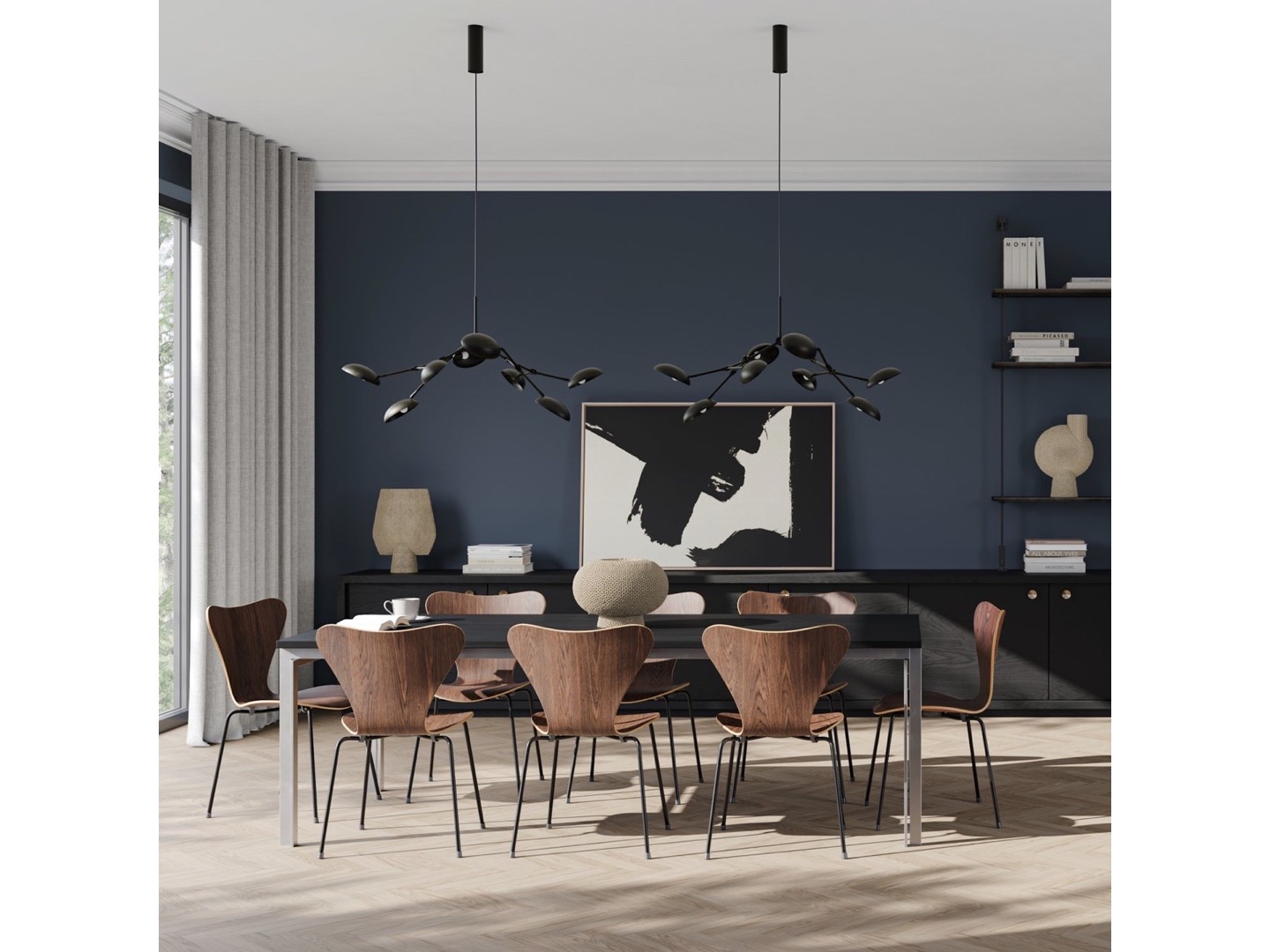 Lampy z wieloma ramionami tworzą niezliczone wariacje, które można dostosować do każdego pomieszczenia, od jadalni po hol.