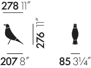 Figura czarnego, drewnianego ptaka stała w pokoju Eamesów przez ponad 50 lat. Opierając się na oryginalnym artefakcie i we współpracy z rodziną Eamesów, Vitra wyprodukowała pierwszą serię tej figurki. Teraz w pojawił się ptak wykonany z orzechowego drewna.