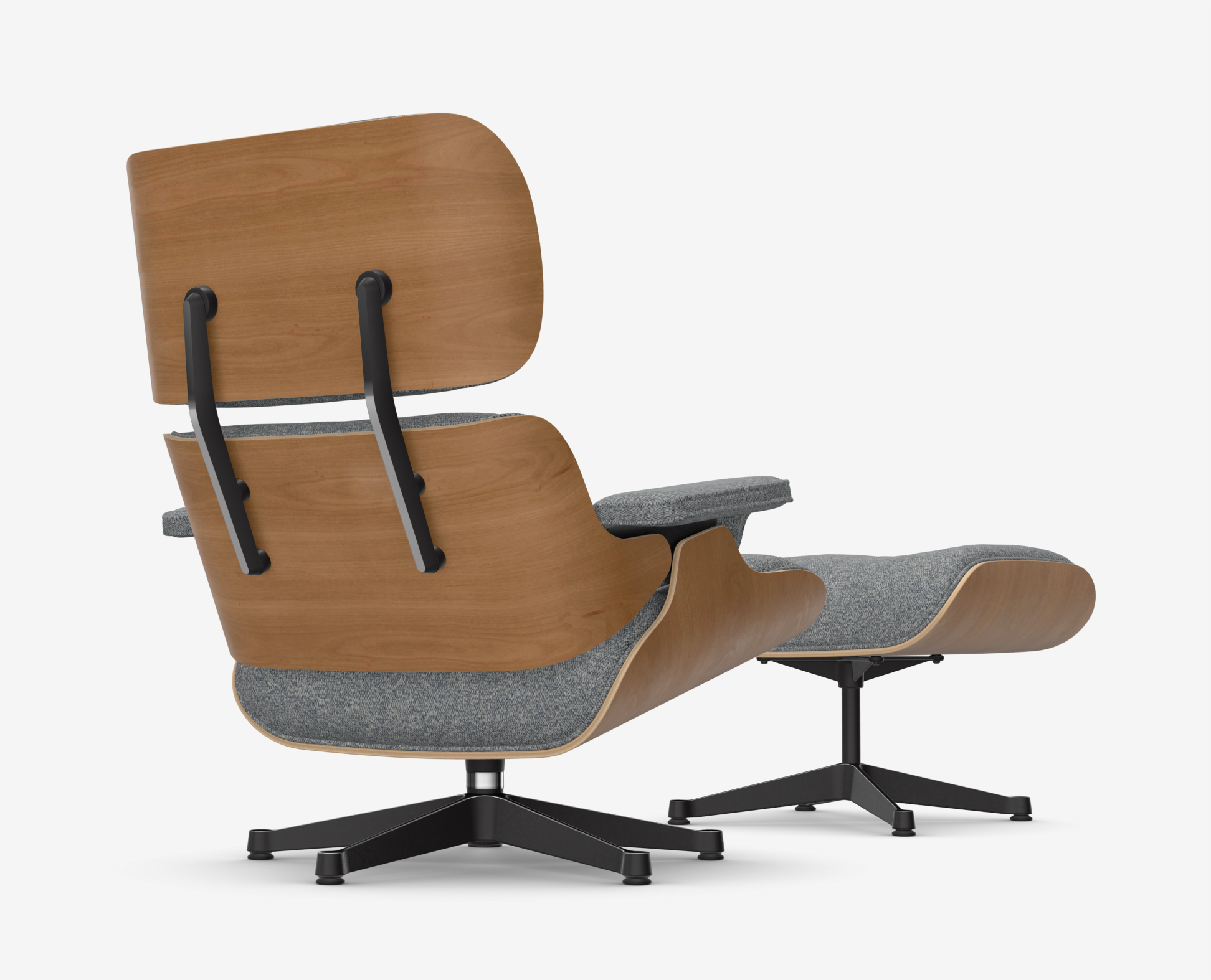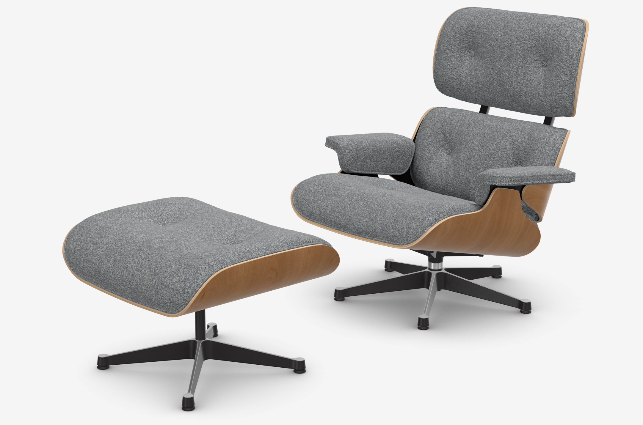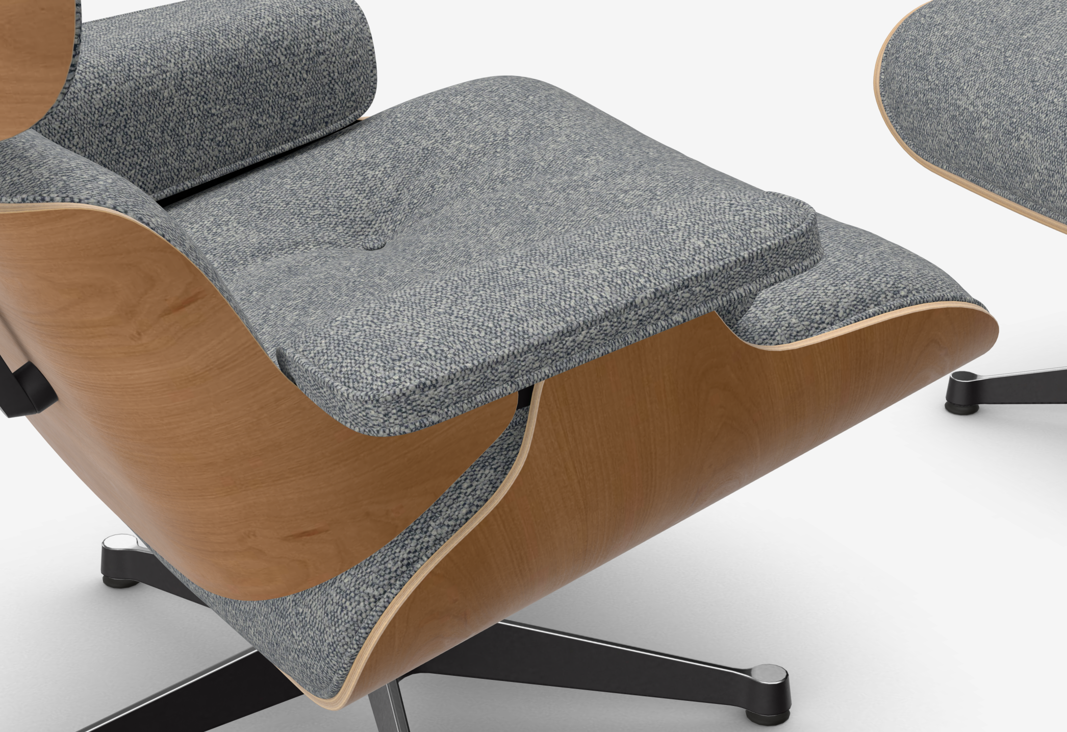 Eames Lounge Chair & Ottoman (cherry natural - tkanina nubia ivory/dark blue) - nowy rozmiar - fotel obrotowy z podnóżkiem