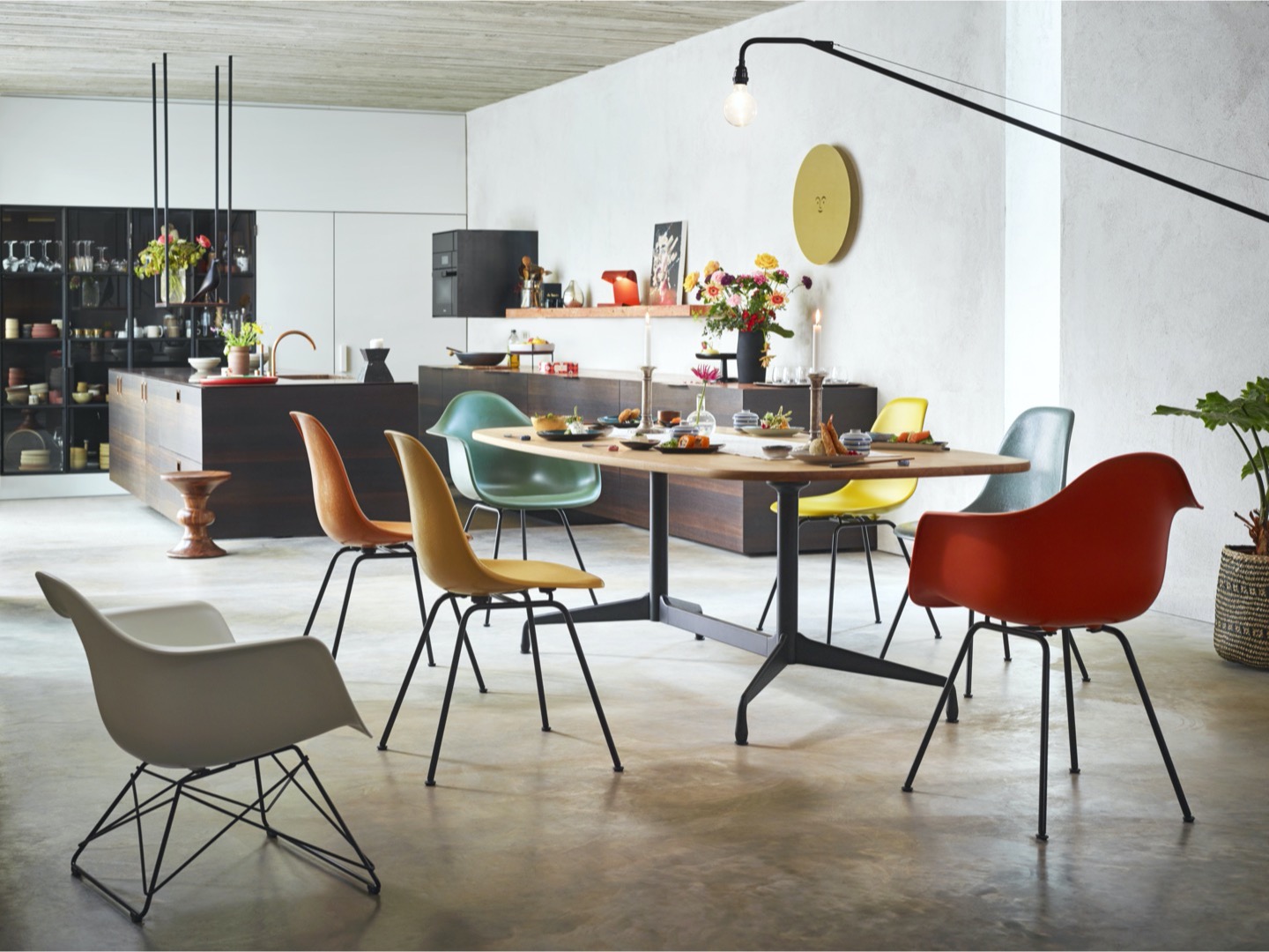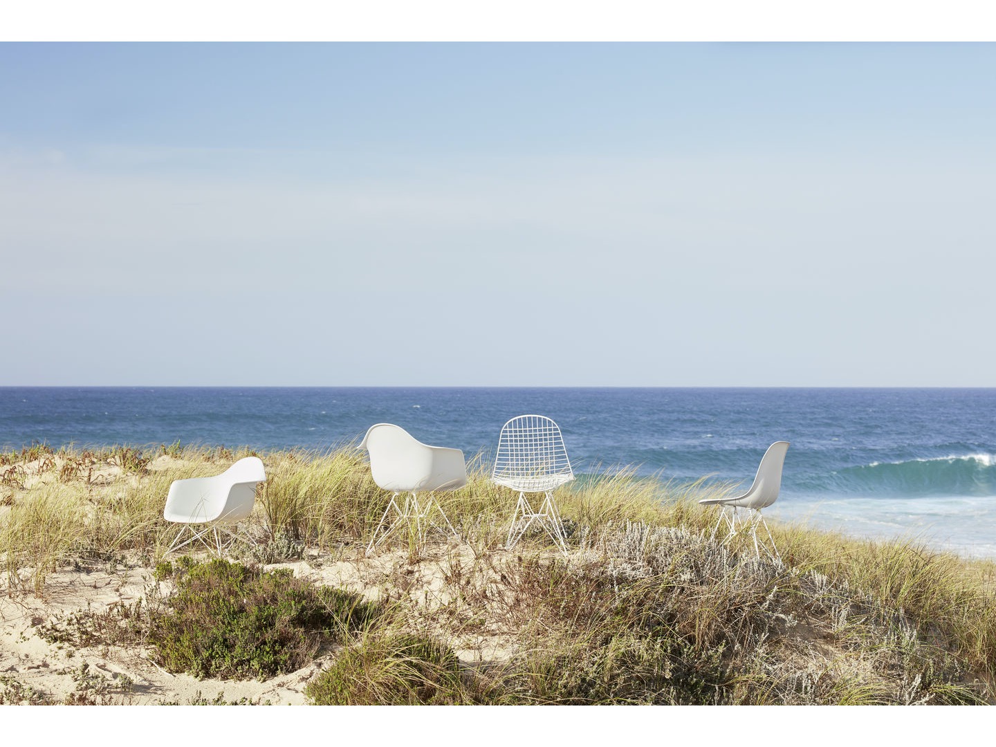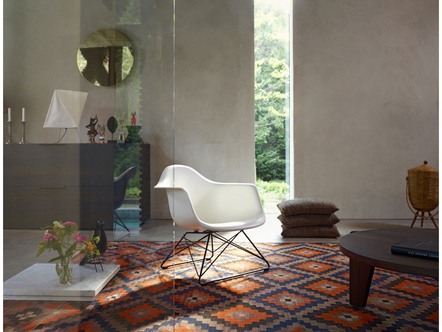 Eames Plastic Chair RE LAR - można często zobaczyć na starych fotografiach przedstawiających wnętrza domu Eamsów stąd można założyć, że był to jeden z ich ulubionych projektów. Idealnie pasuje jako uzupełnienie całej rodziny plastikowych krzeseł zaprojektowanych przez tę parę.