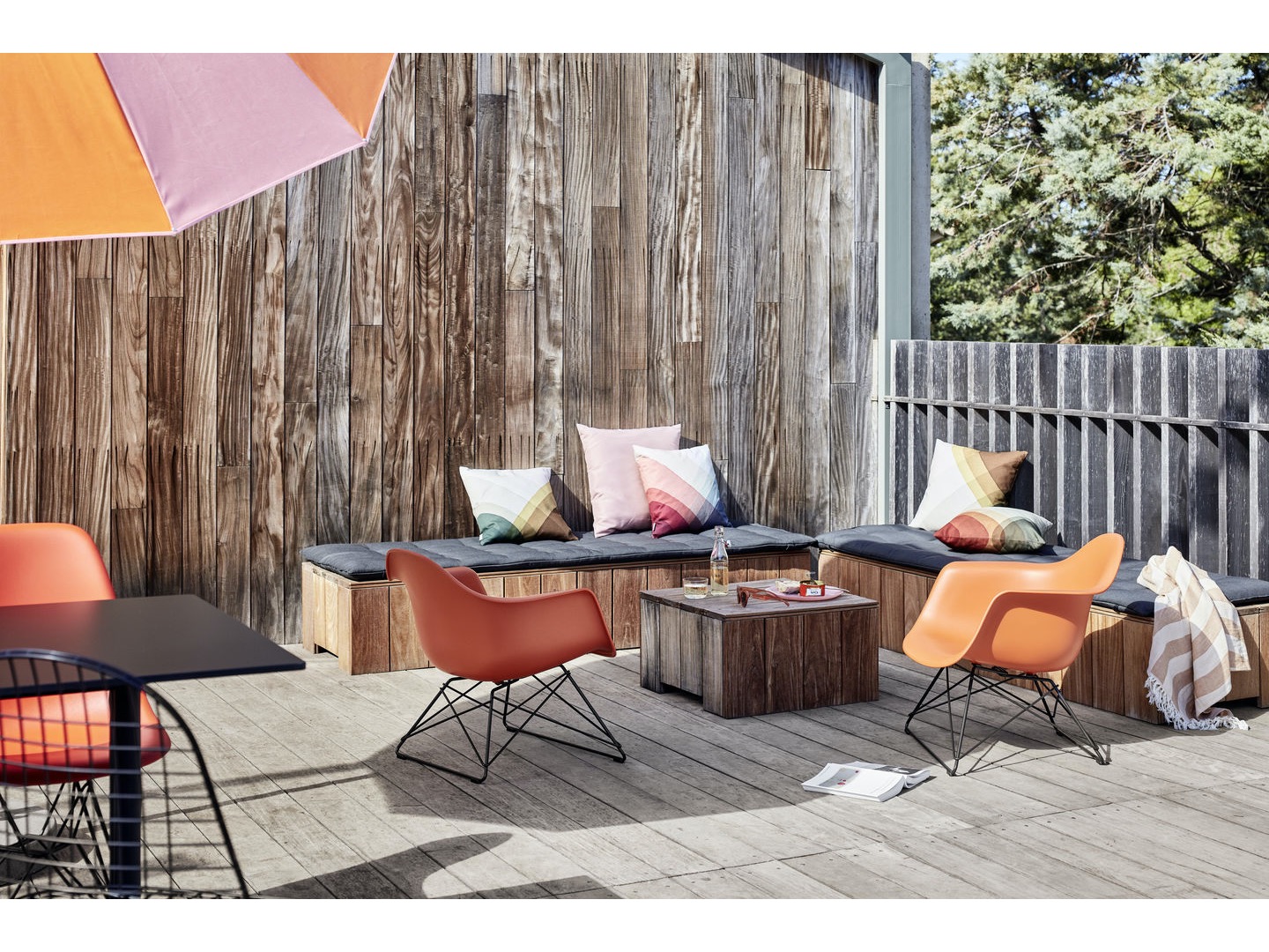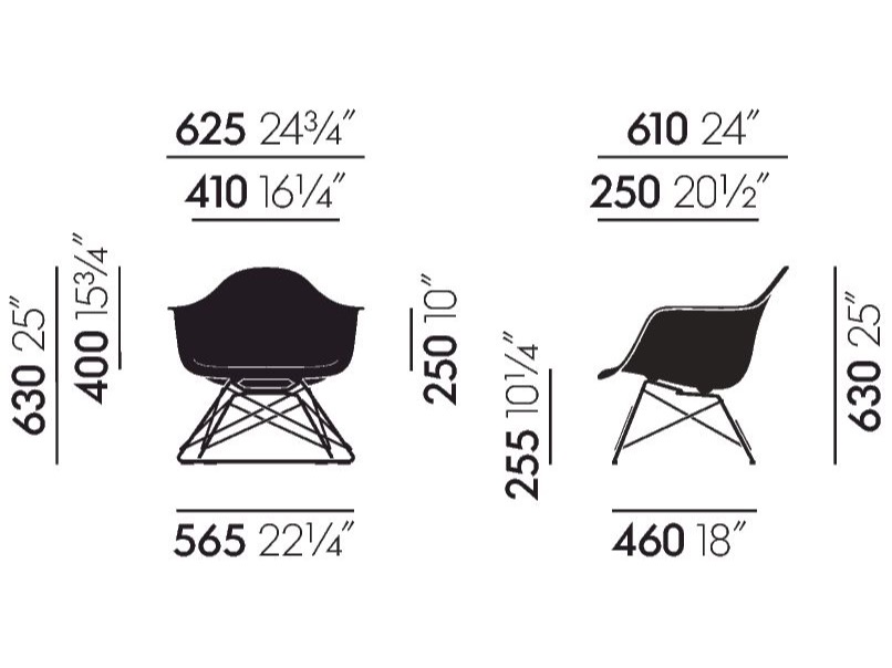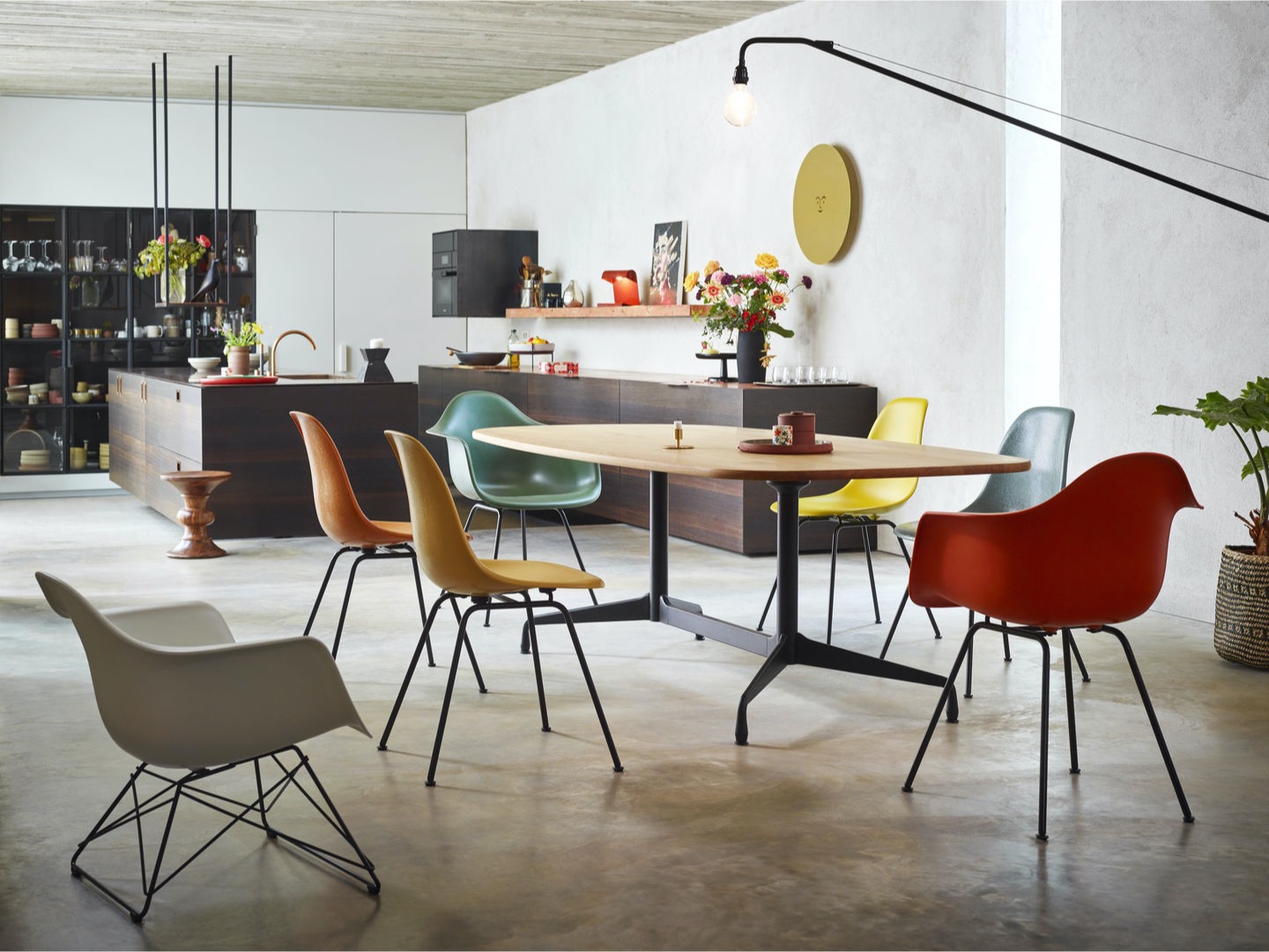 Eames Plastic Chair RE LAR - można często zobaczyć na starych fotografiach przedstawiających wnętrza domu Eamsów stąd można założyć, że był to jeden z ich ulubionych projektów. Idealnie pasuje jako uzupełnienie całej rodziny plastikowych krzeseł zaprojektowanych przez tę parę.
