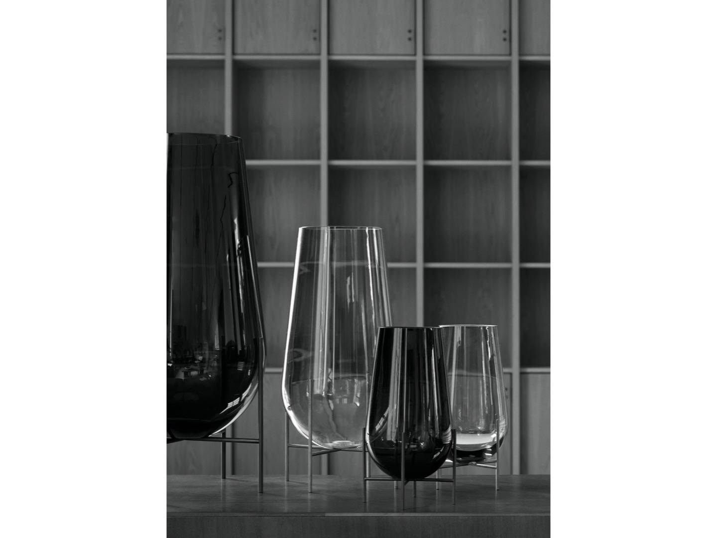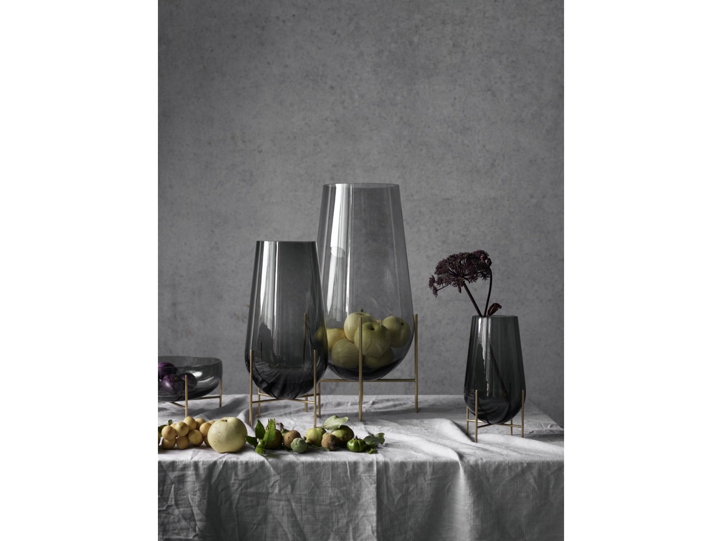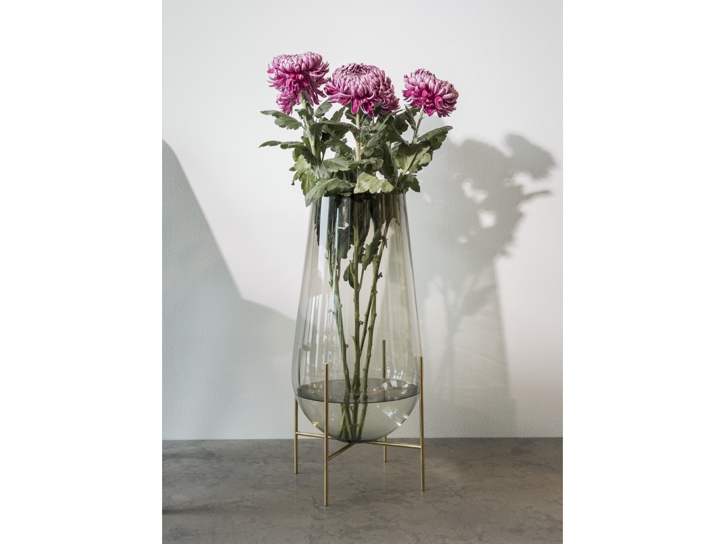 Wazon Échasse — pierwszy egzemplarz kultowej już kolekcji został zainspirowany laboratoryjnymi probówkami. Forma wazonu jest równie elegancka, gdy kwiaty stoją na biurku, podłodze w salonie lub szafce nocnej, jak i wtedy, gdy nie jest wypełniony. Wersja z dymionego szkła z nóżkami ze szczotkowanego mosiądzu dostępna jest w trzech rozmiarach. Unikalne przejścia kolorów szkła nadają projektowi głębię i kontrast z prostymi liniami nóg.
