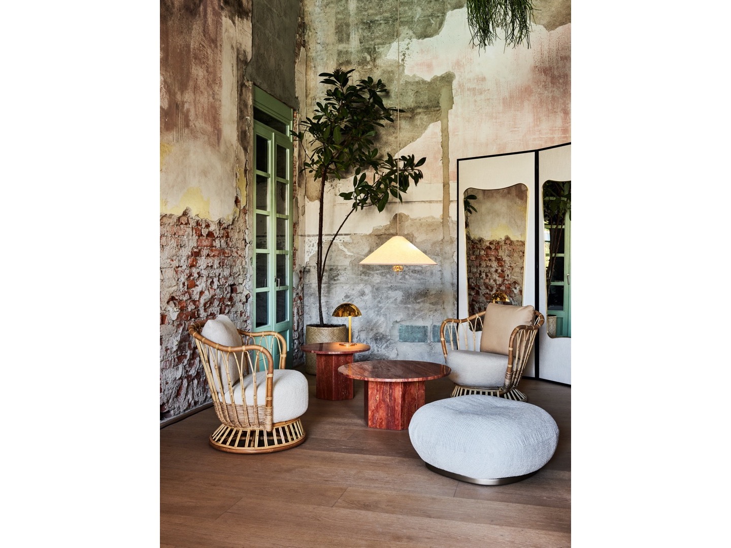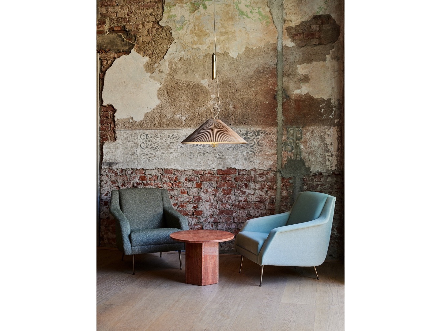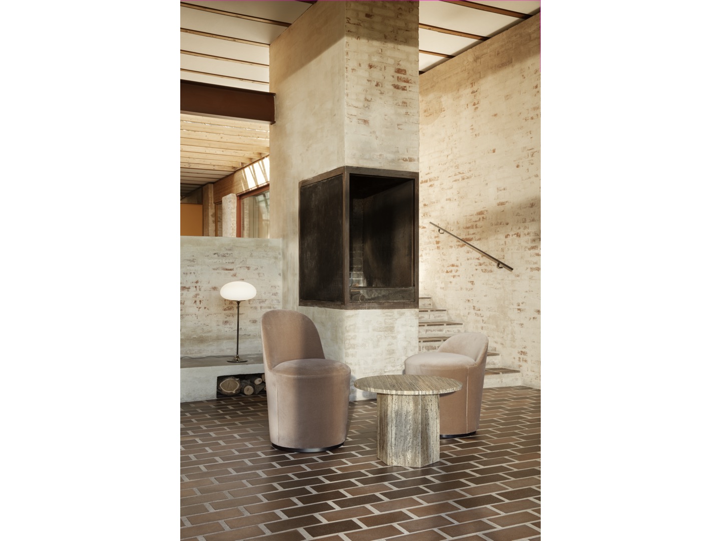 Nazwany na cześć epickich poematów z czasów starożytnych, Epic Table firmy GamFratesi to rzeźbiarski mebel inspirowany greckimi kolumnami i architekturą rzymską. Pierwotnie wykonany we Włoszech z trawertynu, nowy wariant stołu to pierwszy przypadek, w którym GamFratesi pracowała z płytami stalowymi, które są ocynkowane, lakierowane, a następnie poddawane szeregowi ręcznych procesów wykańczania, aby stworzyć niepowtarzalny wyraz powierzchni każdego stołu. Monolityczna forma stołu pozostaje zachowana, teraz z industrialnym wyrazem, w którym przy każdym użyciu można odkryć nowy szczegół. Kolekcja wnosi osobowość do wnętrz prywatnych oraz intrygujące poczucie ciężaru w przestrzeniach publicznych i hotelowych. Różne wysokości i średnice kolekcji stołów Epic oznaczają, że pojedynczy monochromatyczny stół może stać samodzielnie lub być połączony w dynamiczne grupy z różnych materiałów, wysokości i kolorów.