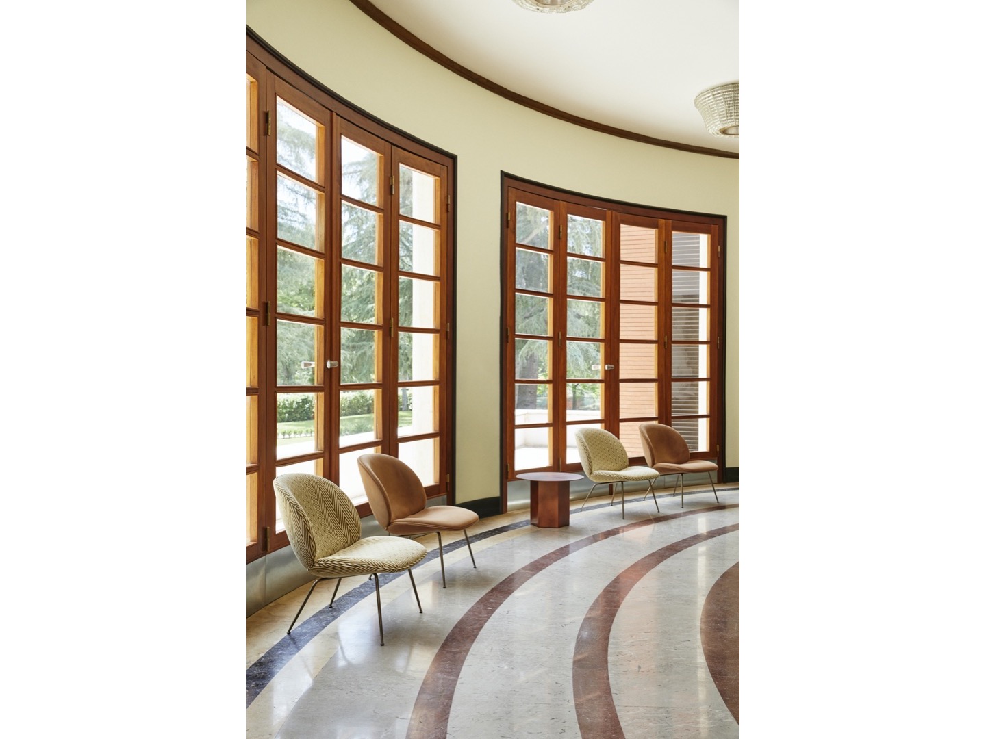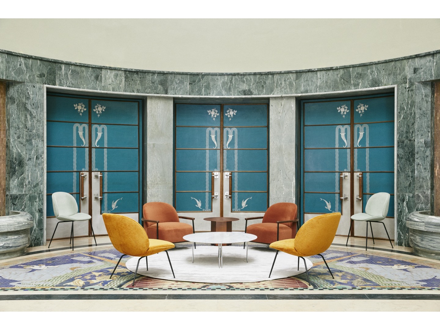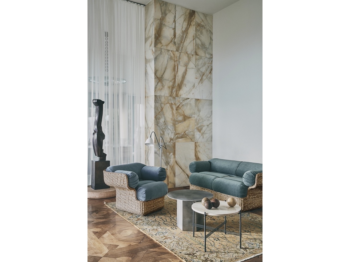 Nazwany na cześć epickich poematów z czasów starożytnych, Epic Table firmy GamFratesi to rzeźbiarski mebel inspirowany greckimi kolumnami i architekturą rzymską. Pierwotnie wykonany we Włoszech z trawertynu, nowy wariant stołu to pierwszy przypadek, w którym GamFratesi pracowała z płytami stalowymi, które są ocynkowane, lakierowane, a następnie poddawane szeregowi ręcznych procesów wykańczania, aby stworzyć niepowtarzalny wyraz powierzchni każdego stołu. Monolityczna forma stołu pozostaje zachowana, teraz z industrialnym wyrazem, w którym przy każdym użyciu można odkryć nowy szczegół. Kolekcja wnosi osobowość do wnętrz prywatnych oraz intrygujące poczucie ciężaru w przestrzeniach publicznych i hotelowych. Różne wysokości i średnice kolekcji stołów Epic oznaczają, że pojedynczy monochromatyczny stół może stać samodzielnie lub być połączony w dynamiczne grupy z różnych materiałów, wysokości i kolorów.