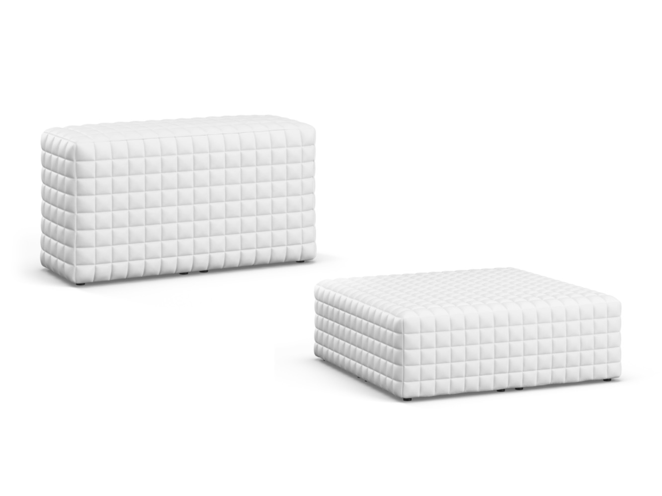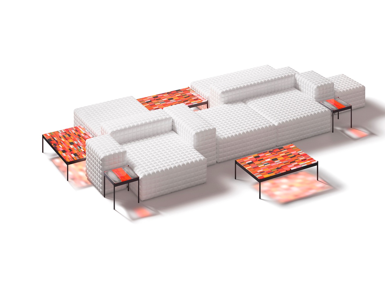 ERNO dostosowuje koncepcję sofy do wnętrz również do użytku na zewnątrz. Jest to kolekcja wszechstronnych puf tapicerowanych pikowaną tkaniną w kratę, które można łączyć ze sobą, tworząc różne aranżacje siedzeń. Serię uzupełniają inne elementy, identyczne jak pufy, ale są wyższe, więc pełnią funkcję podłokietników i oparć. Oprócz zapewnienia komfortu, zwiększają one możliwości budowania różnych środowisk.