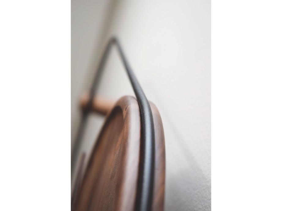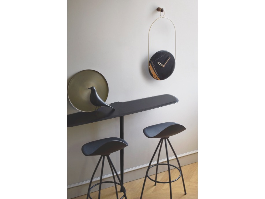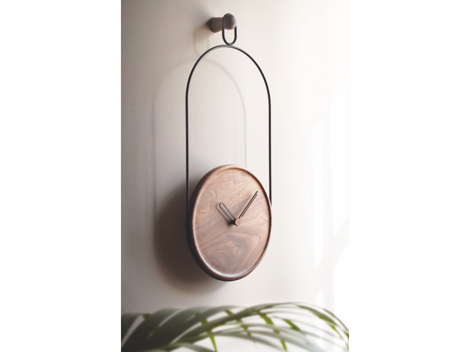 Eslabón - nowoczesny i minimalistyczny zegar ścienny o charakterystycznym sposobie montażu.