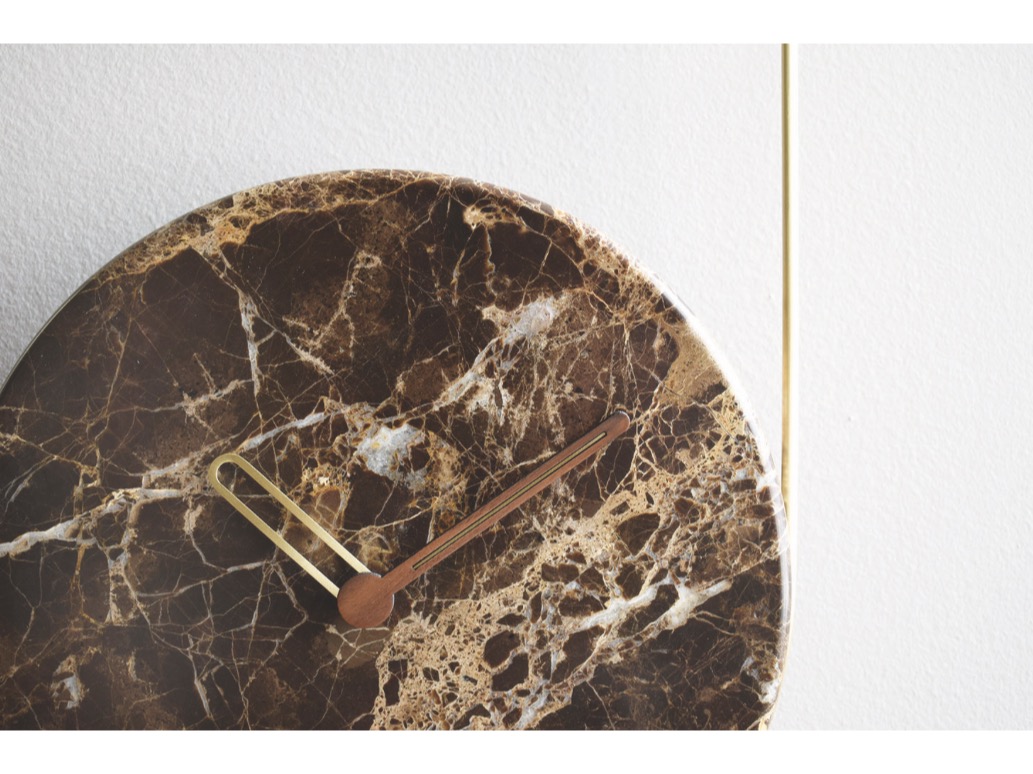 Dostępny w kilku wersjach - tarcza drewniana lub marmurowa, obręcz- mosiądz lub czarna.