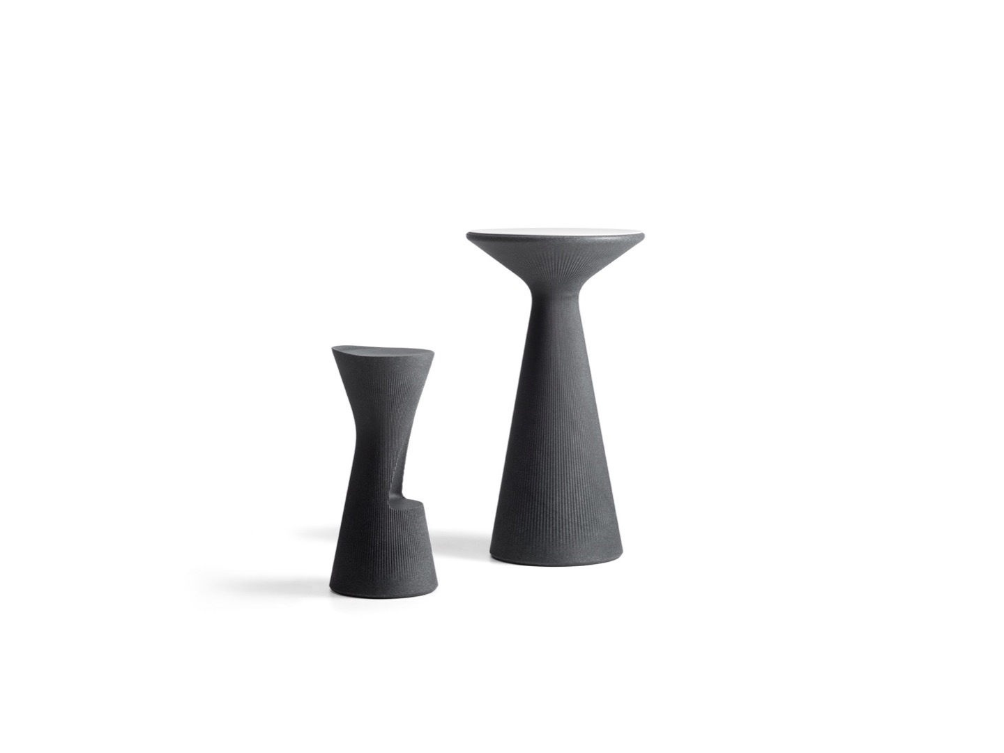Lekki, ale stabilny stołek z funkcjonalną wnęką na podnóżek i specjalnymi wykończeniami, które przypominają naturalne materiały. Występuje w wielu wariantach kolorystycznych. Można skompletować go z wysokim stolikiem.