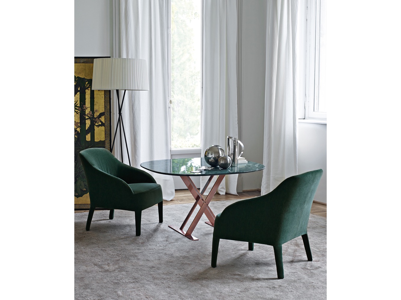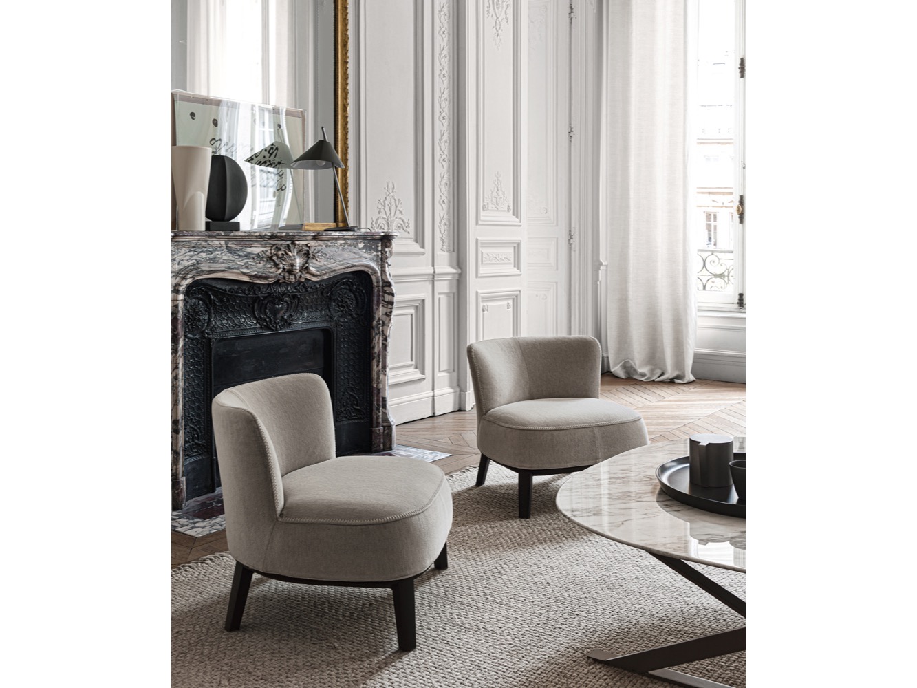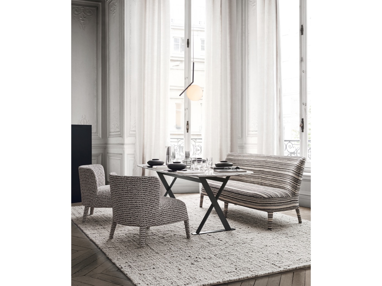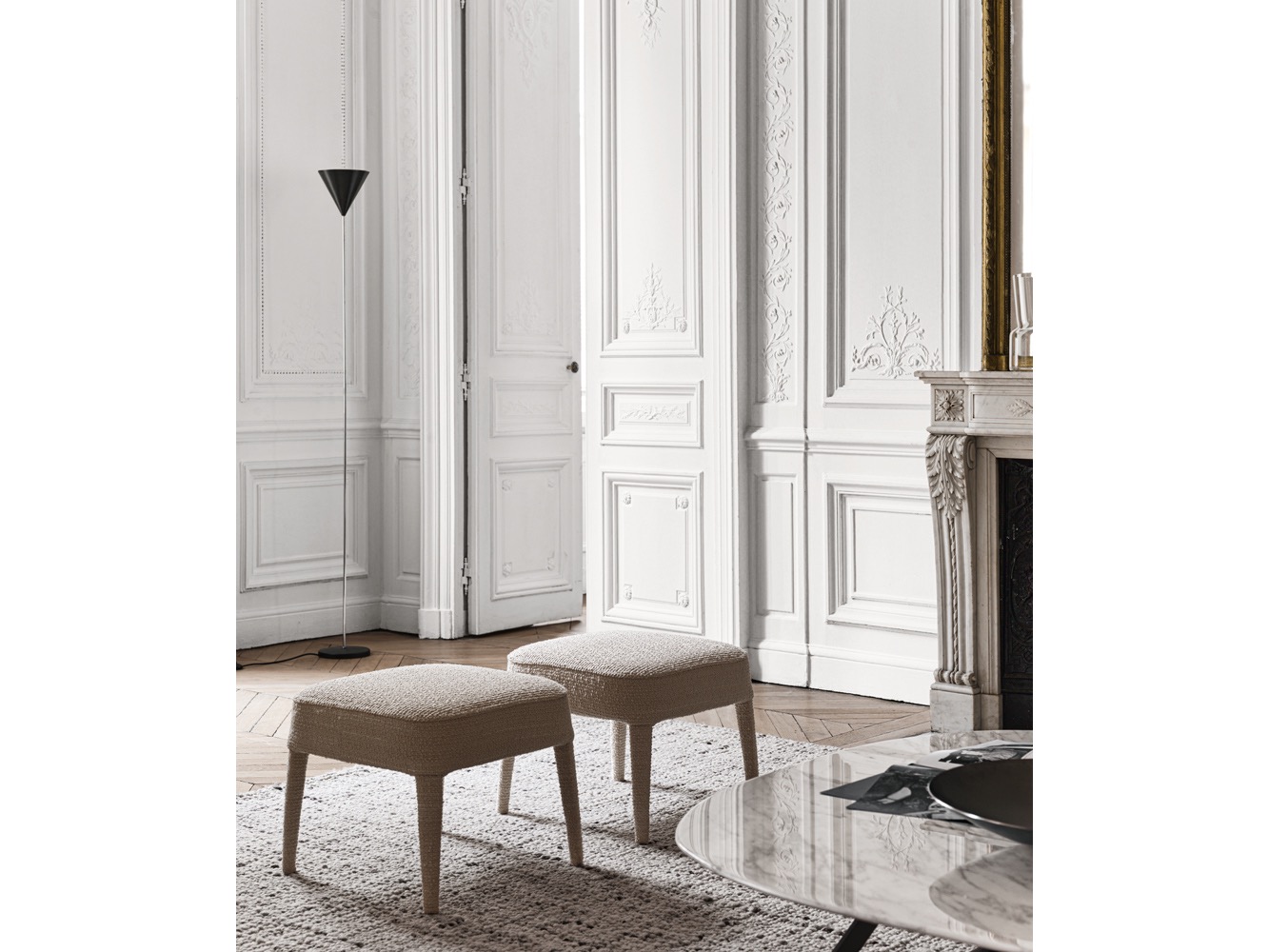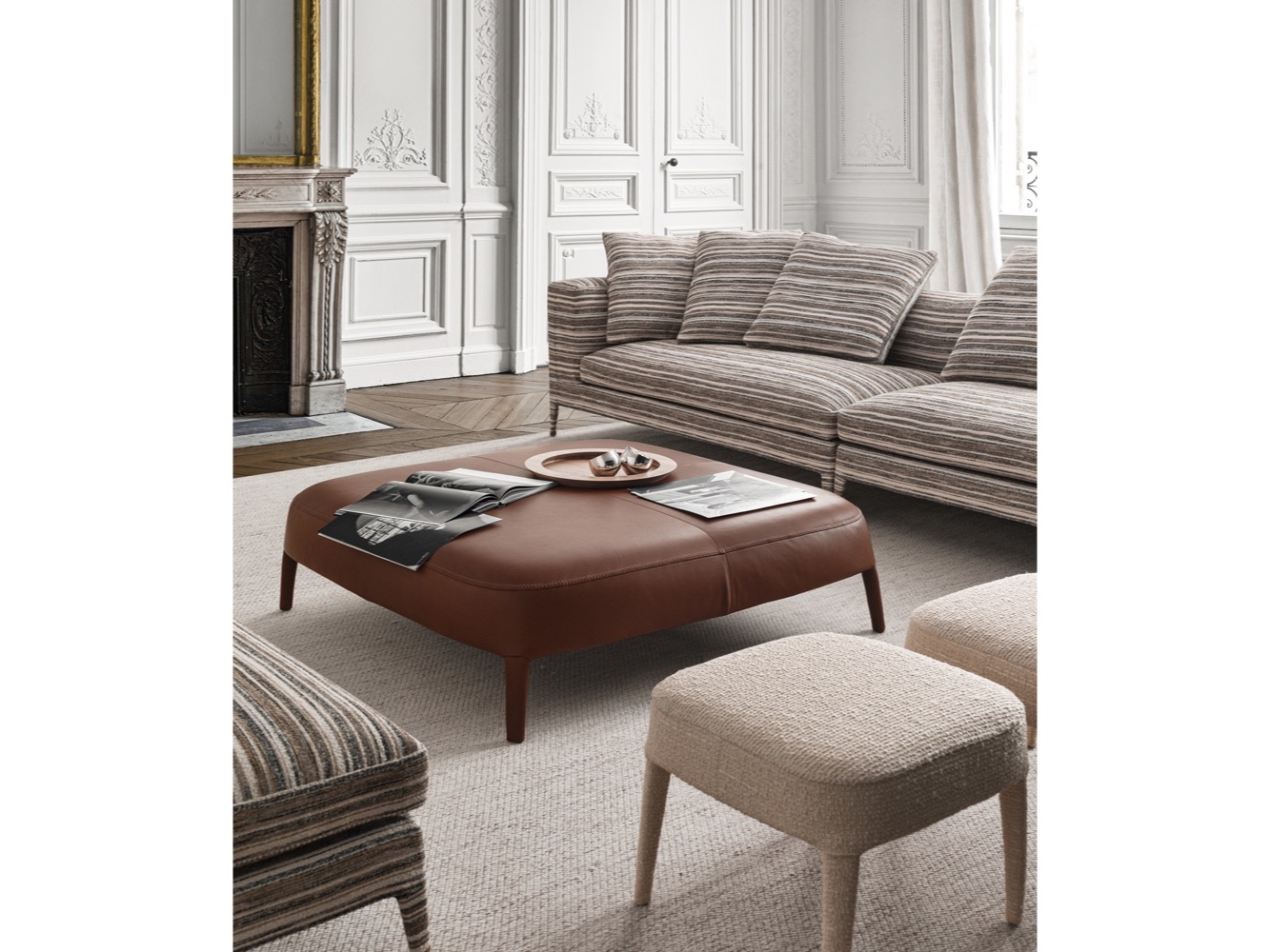 Febo to rodzina sof i foteli, która niesie ze sobą pamięć o tradycyjnym designie wyróżniającym się dużym oparciem bez podłokietników. Sofy występują w dwóch rozmiarach: mniejsza z niskim lub wysokim siedziskiem oraz większa. Rodzinę uzupełniają eleganckie fotele, które wyróżniają się oparciem, które może być niskie lub wysokie lub mniej lub bardziej otulające. Są one dostępne w jednym materiale, w tkaninie lub skórze, z widocznym ściegiem kocowym.