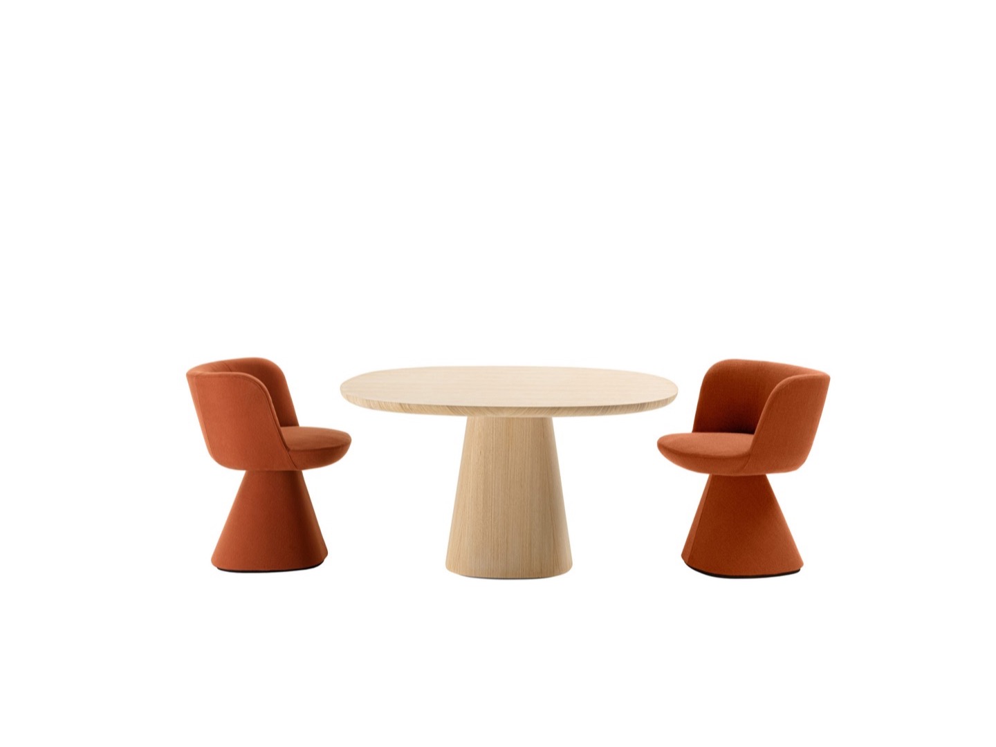 Flair O’ to mały domowy tron, krzesło idealnie pasujące do stołu Allure O’. Oba projekty nawiązują dialog wychodząc od swoich podstaw. Oba elementy znajdują się na szczycie ściętej piramidy z zaokrąglonymi krawędziami. Podstawa rozszerza się delikatnie z tyłu, gdy zbliża się do podłogi. Wyściełane siedzisko zapewnia niezbędny komfort. Co więcej, zaakcentowane nachylenie oparcia i jego otulający kształt pomagają zrelaksować się bez uszczerbku dla idealnej postawy. Ponadto krzesło wyposażone jest w mechanizm obrotowy z automatycznym powrotem.