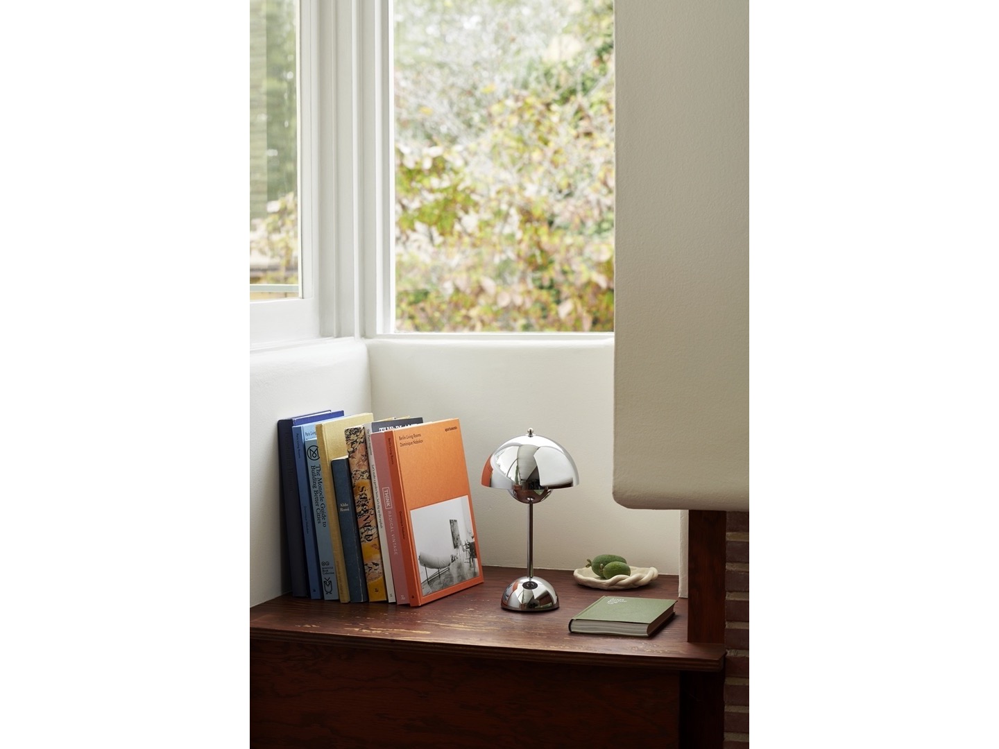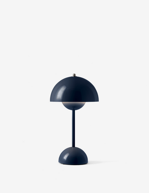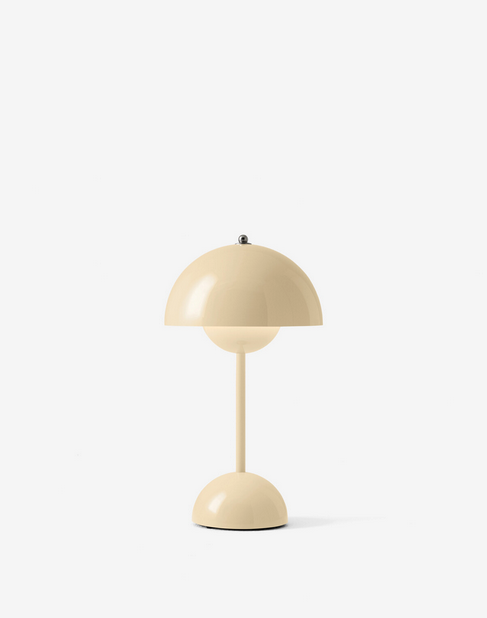 Model VP9 to mała, przenośna lampa stołowa, której klosz składa się z dwóch połówek sfer. Mniejsza umieszczona jest w większej, obie stanowią reflektor dla światła emitowanego przez źródło. Dzięki temu, że całe emitowane przez lampę światło jest odbite od klosza, lampa daje lekko rozproszone i łagodne światło. Klosz umieszczony jest na prostej podstawie, która zdaje się być lustrzanym odbiciem mniejszej ze sfer. Całość sprawia wrażenie niezwykle czystej i prostej formy geometrycznej. Lampa wyposażona w akumulator, który po pełnym naładowaniu (8h) pozwala na pracę nawet przez 11 godzin przy najwyższym poziomie jasności. Ściemniacz ma trzy ustawienia jasności.