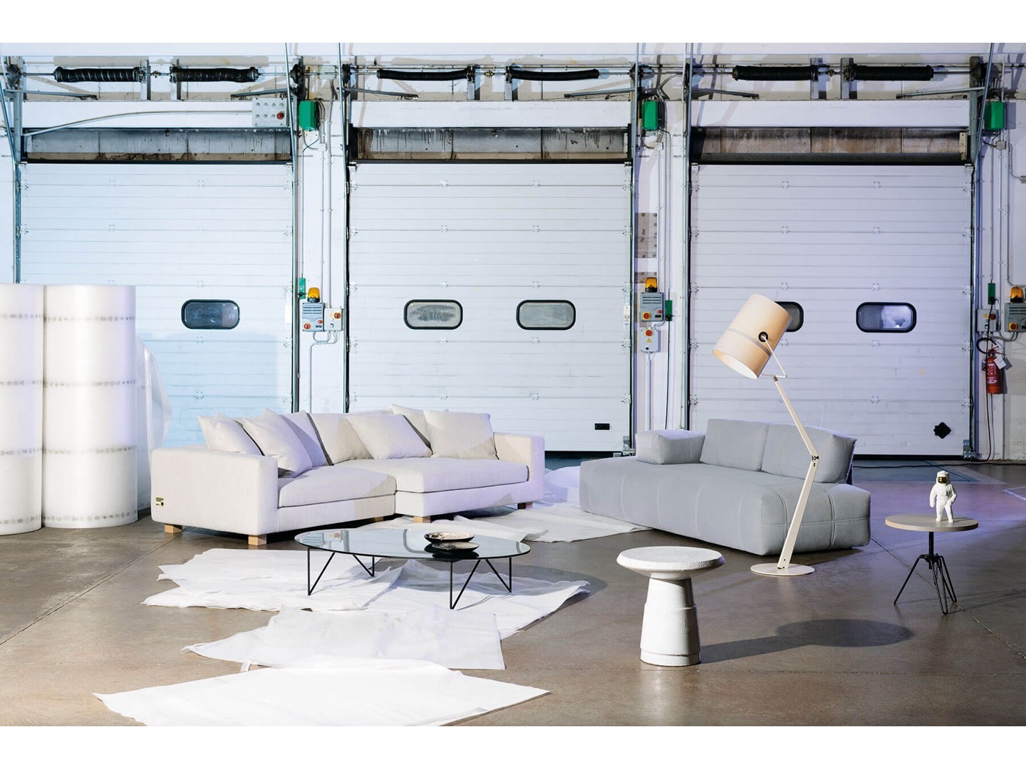 Dyfuzor z lnianej bawełny, dostępny w kolorze kości słoniowej i szarości, tworzy ciepły i miękki efekt świetlny. Regulacja w zakresie 360° dzięki mosiężnym elementom w kolorze brązu, wykonanym z mocnego materiału kontrastującego z miękkością tkaniny, dyfuzor umożliwia dowolne skierowanie wiązki światła.