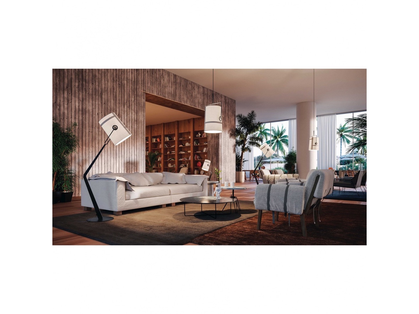 Dyfuzor z lnianej bawełny, dostępny w kolorze kości słoniowej i szarości, tworzy ciepły i miękki efekt świetlny.