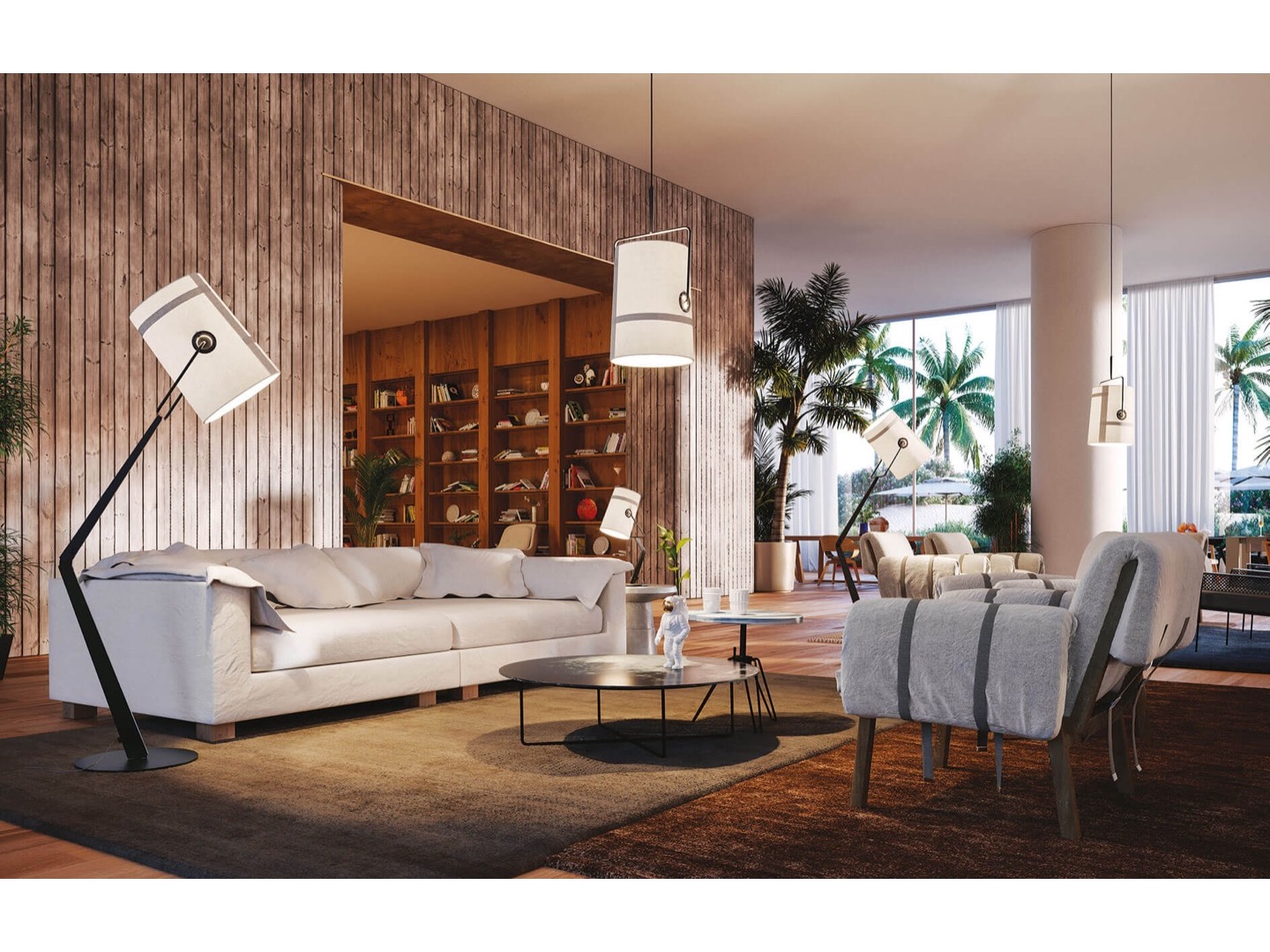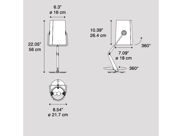 Dyfuzor z lnianej bawełny, dostępny w kolorze kości słoniowej i szarości, tworzy ciepły i miękki efekt świetlny. Regulacja w zakresie 360° dzięki mosiężnym elementom w kolorze brązu, wykonanym z mocnego materiału kontrastującego z miękkością tkaniny, dyfuzor umożliwia dowolne skierowanie wiązki światła.