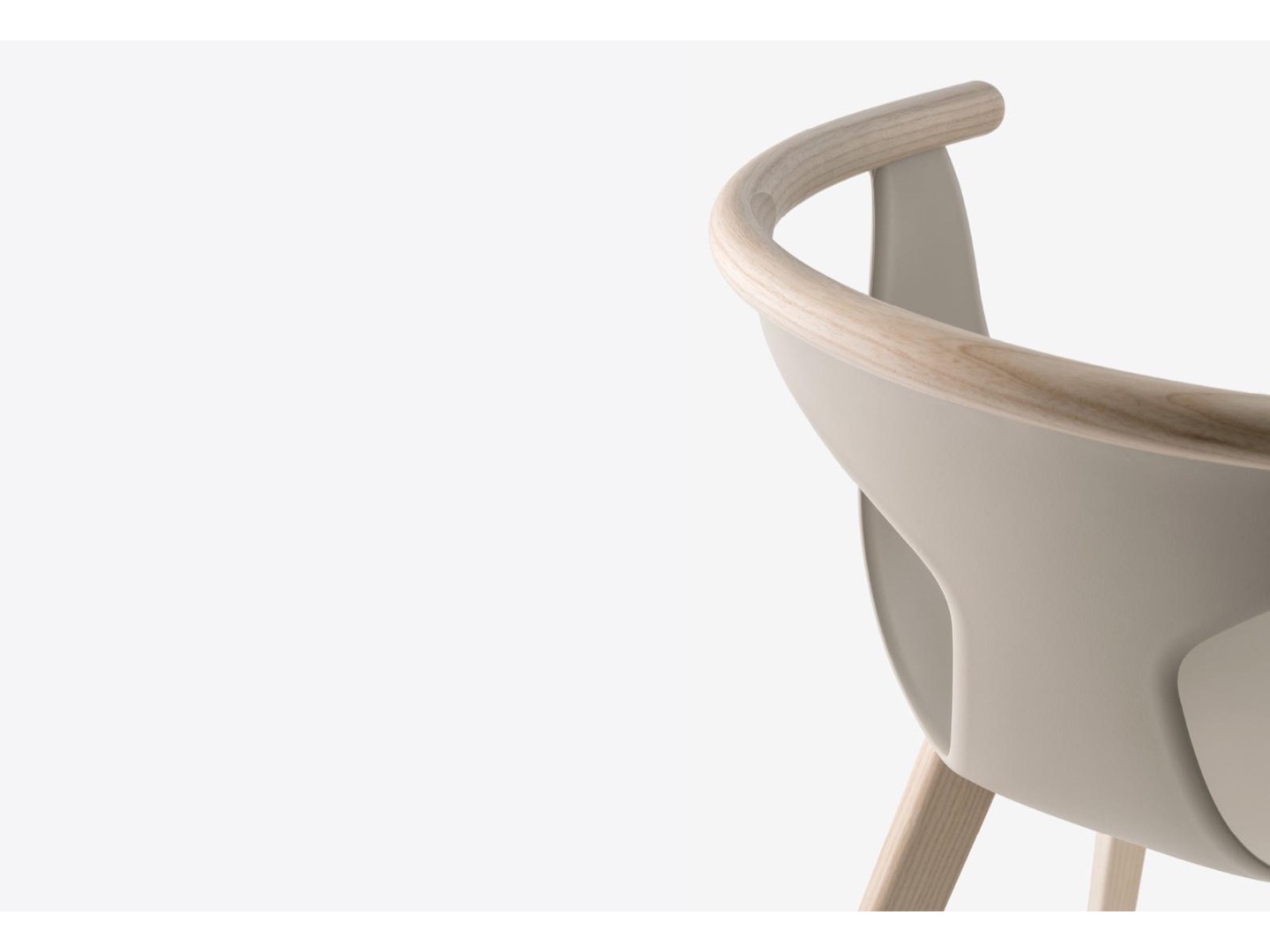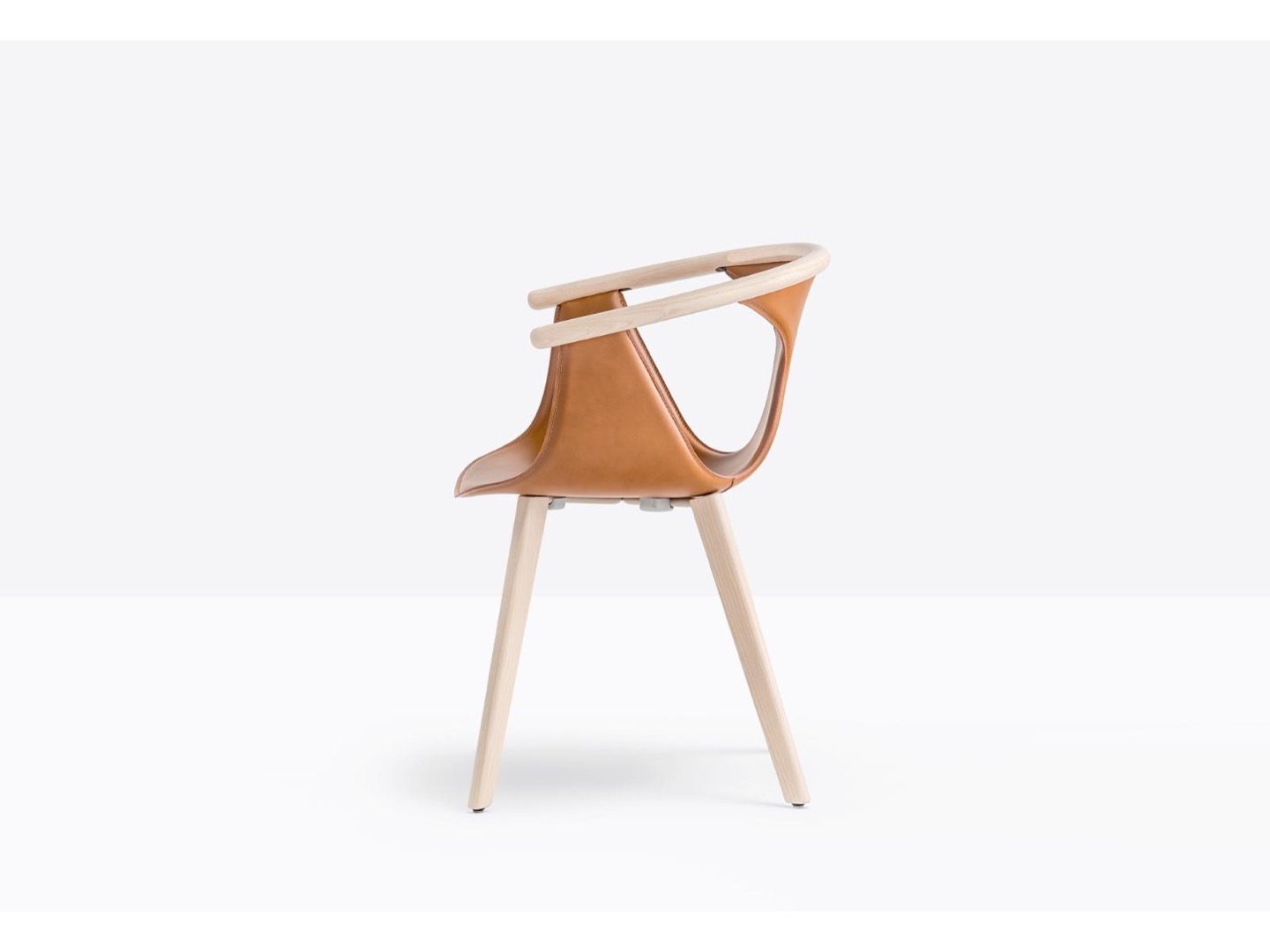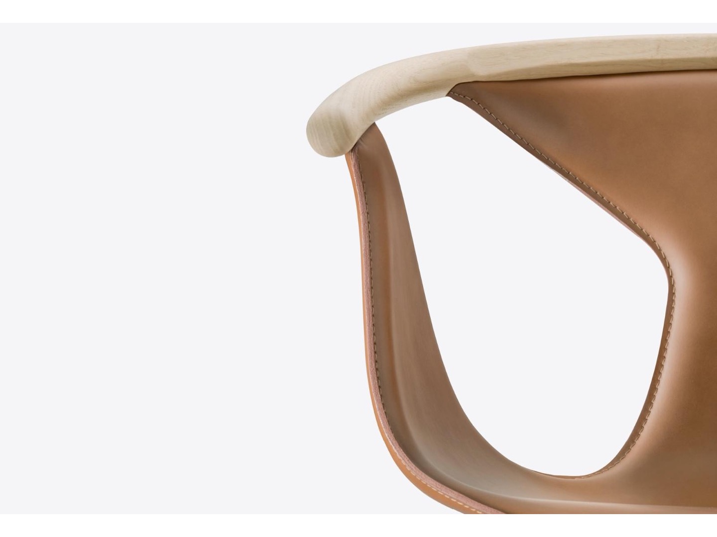 Fox Soft to elegancka kolekcja foteli o wyrazistym charakterze i niewielkich wymiarach, zdefiniowanych przez harmonijną mieszankę materiałów i kontrast geometrycznych linii. Fotel z polipropylenową skorupą pokrytą naturalną skórą, oparcie i nogi z zakrzywionego litego jesionu.